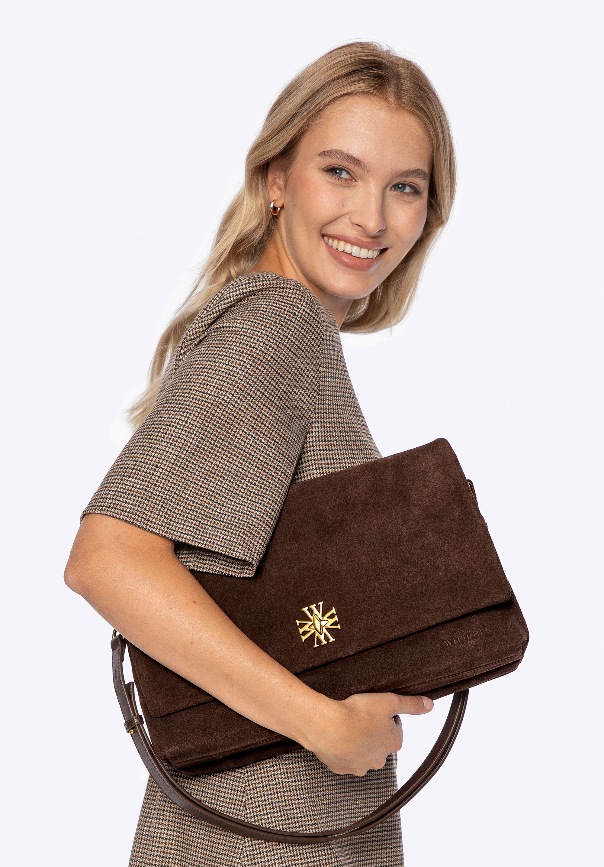 Duża zamszowa listonoszka – elegancja w większym wydaniu