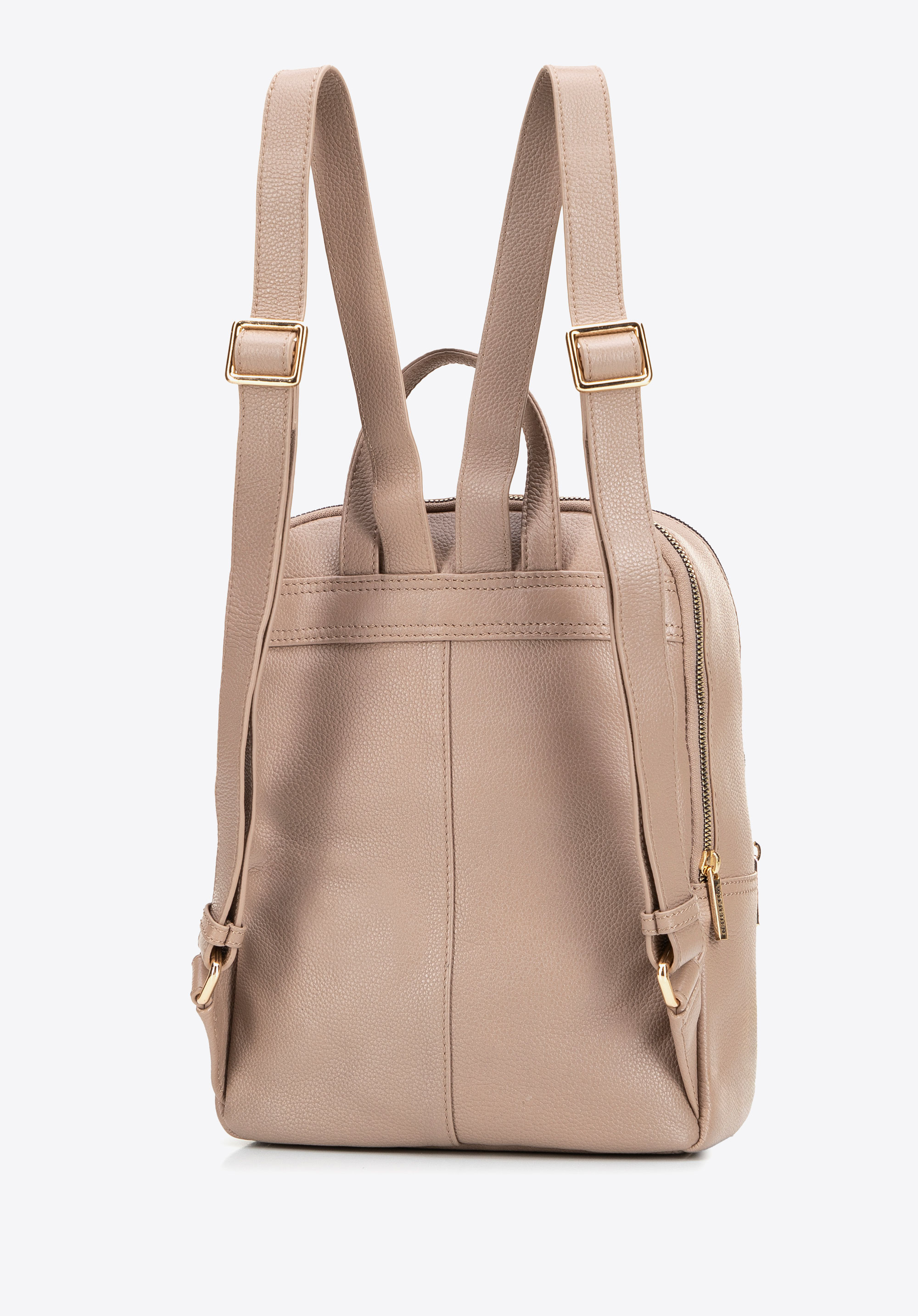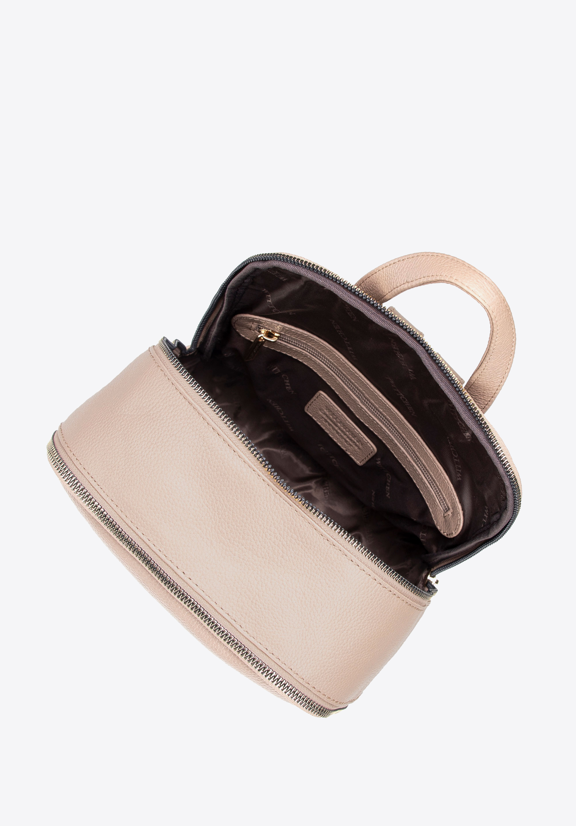 Dwukomorowy plecak damski ze skóry naturalnej będzie idealny, jeśli potrzebujesz wolnych rąk i świetnej organizacji w dni pełne spotkań, dojazdów i zakupów. Dwie komory na suwak porządkują zawartość, a skóra naturalna i dopracowane detale podkreślają elegancję w praktycznym wydaniu.