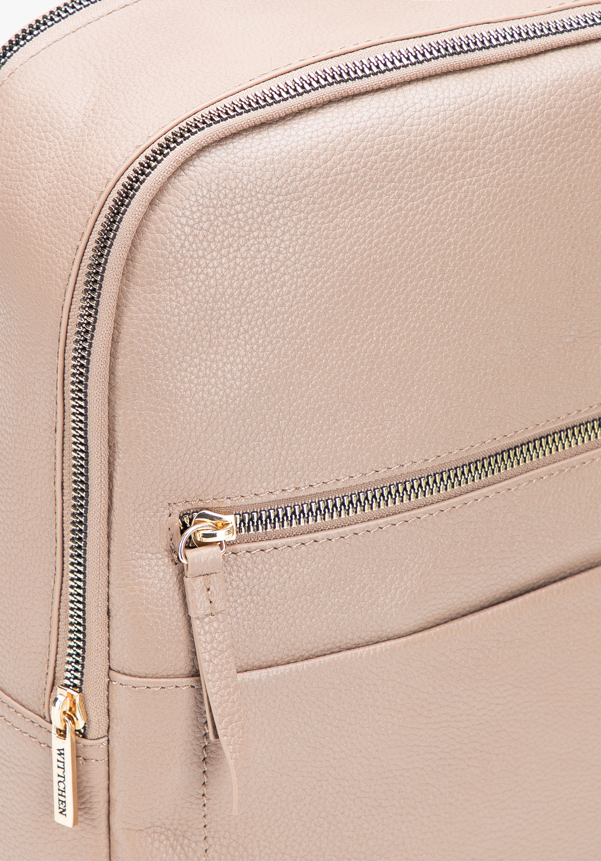 Elegancki plecak ze skóry naturalnej łączy trwałość, miękkie wykończenie i nowoczesny design, dodając codziennym stylizacjom szyku i klasy. Dwie komory na zamek pozwalają wygodnie rozdzielić rzeczy, a regulowane szelki i rączka zapewniają komfort noszenia. Z przodu znajdują się dwie praktyczne kieszenie – jedna na zamek, druga na magnes – idealne do szybkiego dostępu. Ten plecak łączy elegancję z funkcjonalnością, stając się nie tylko praktycznym dodatkiem, ale i stylowym uzupełnieniem każdej codziennej lub wyjściowej stylizacji.