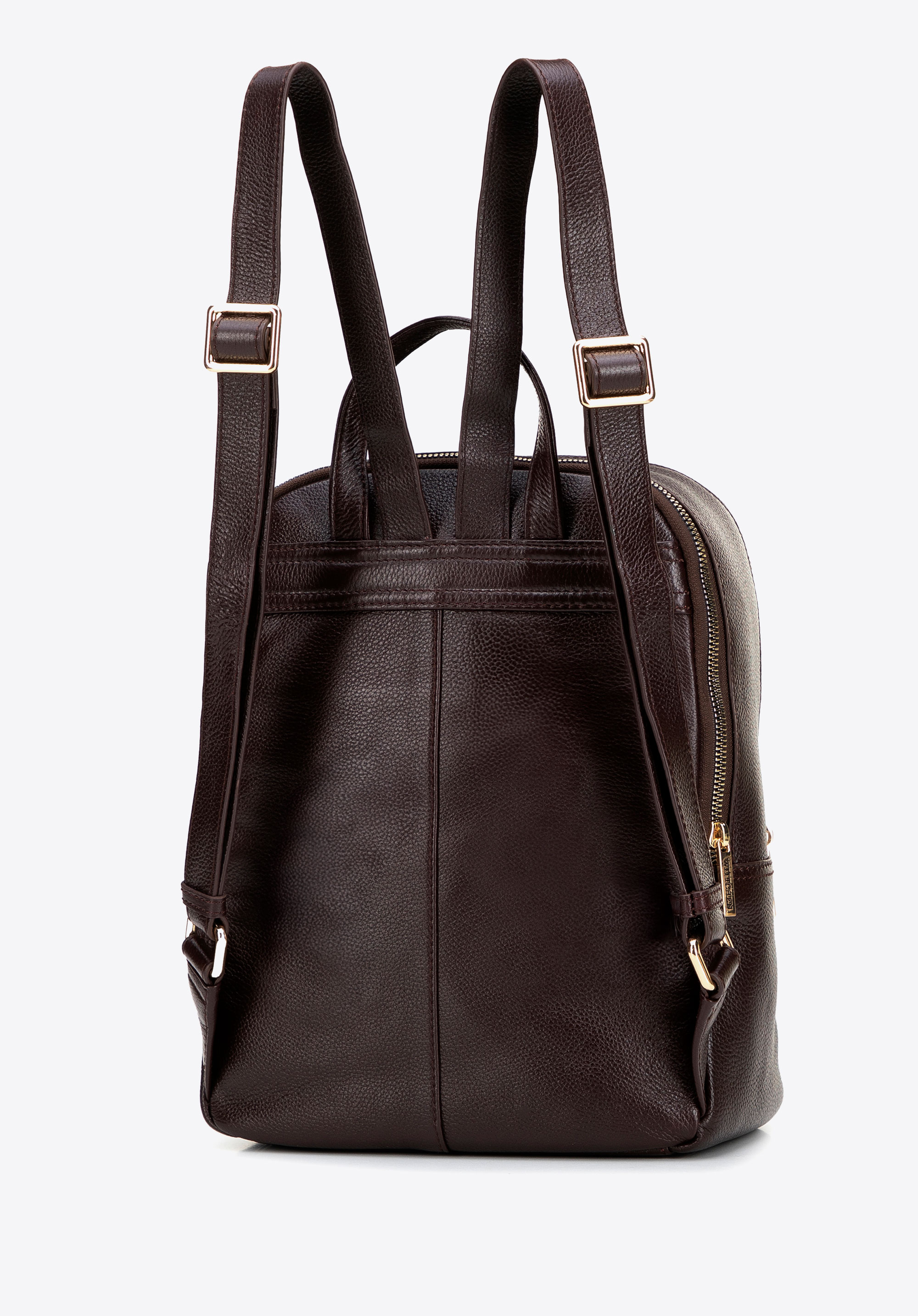 Ten skórzany plecak to modny, praktyczny i ponadczasowy dodatek, który stanie się niezawodnym uzupełnieniem Twojej garderoby.