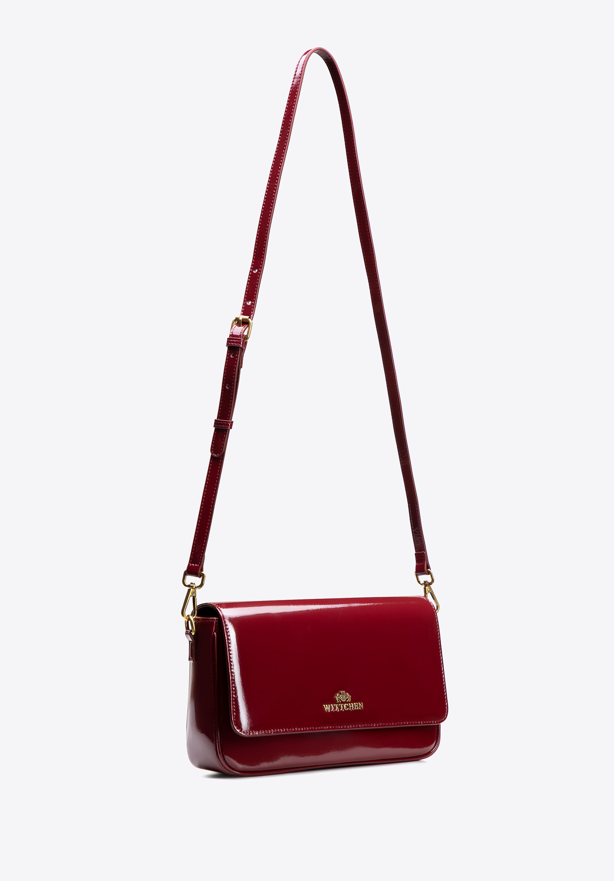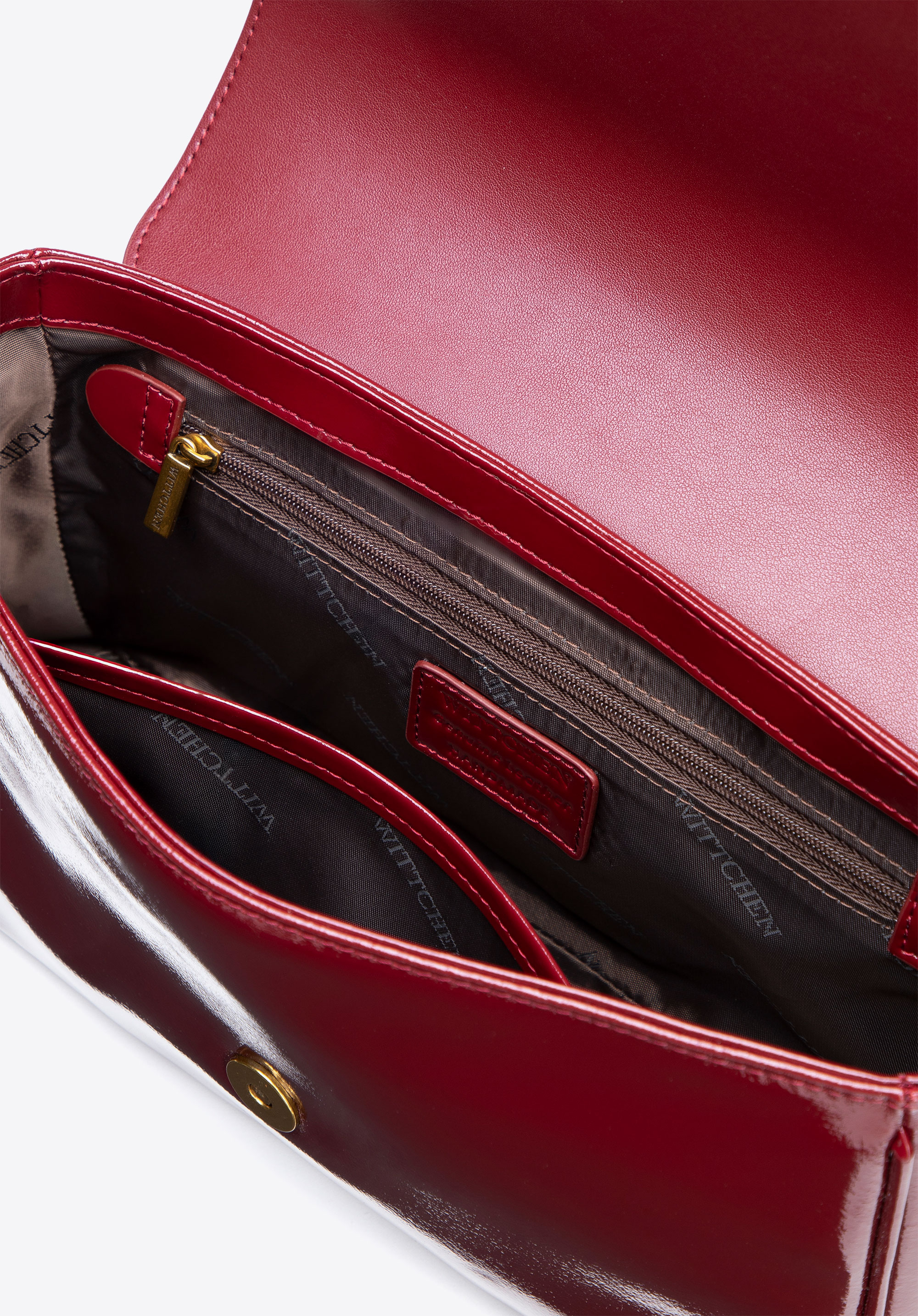 Elegancka damska listonoszka ze skóry lakierowanej bordowa