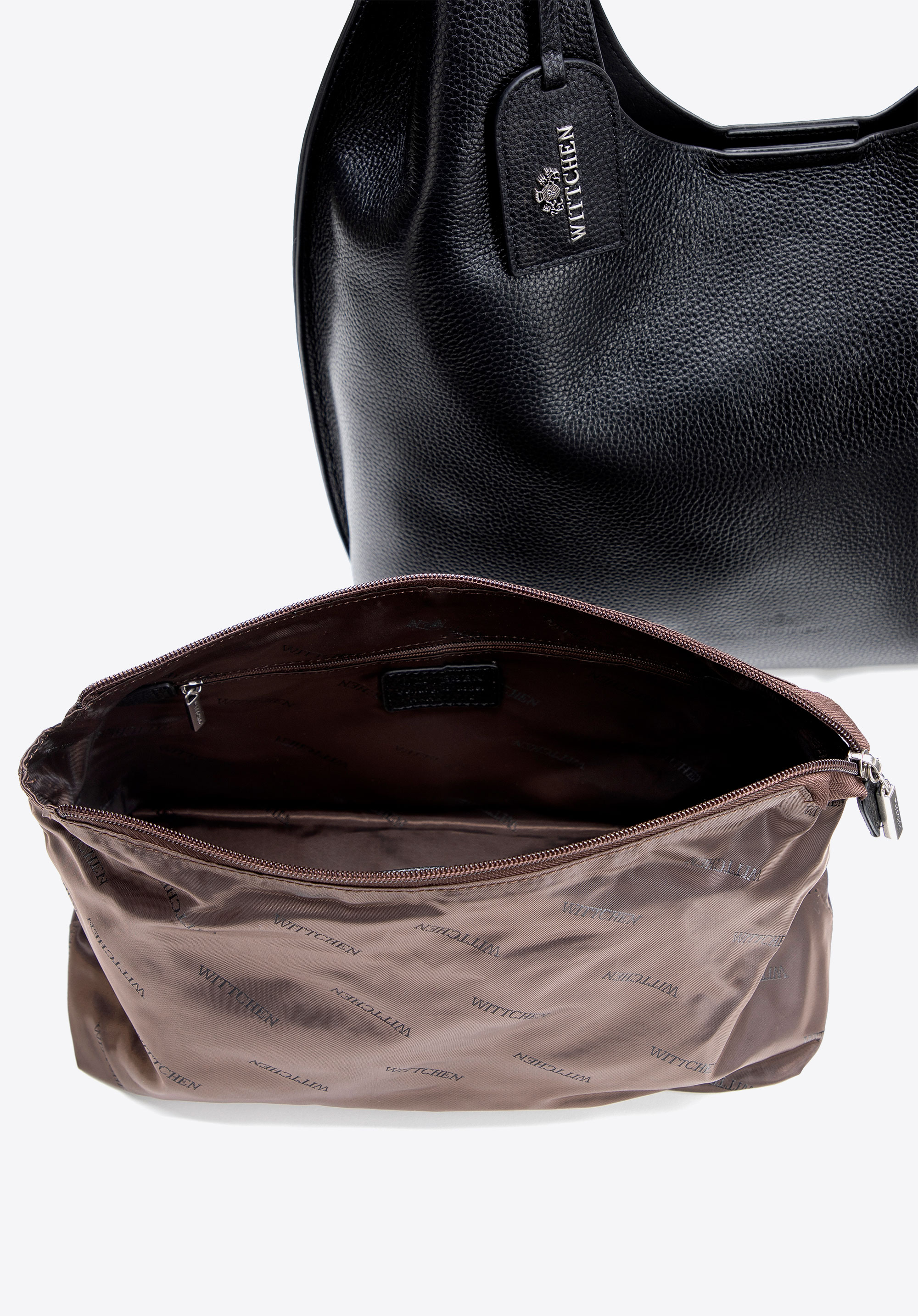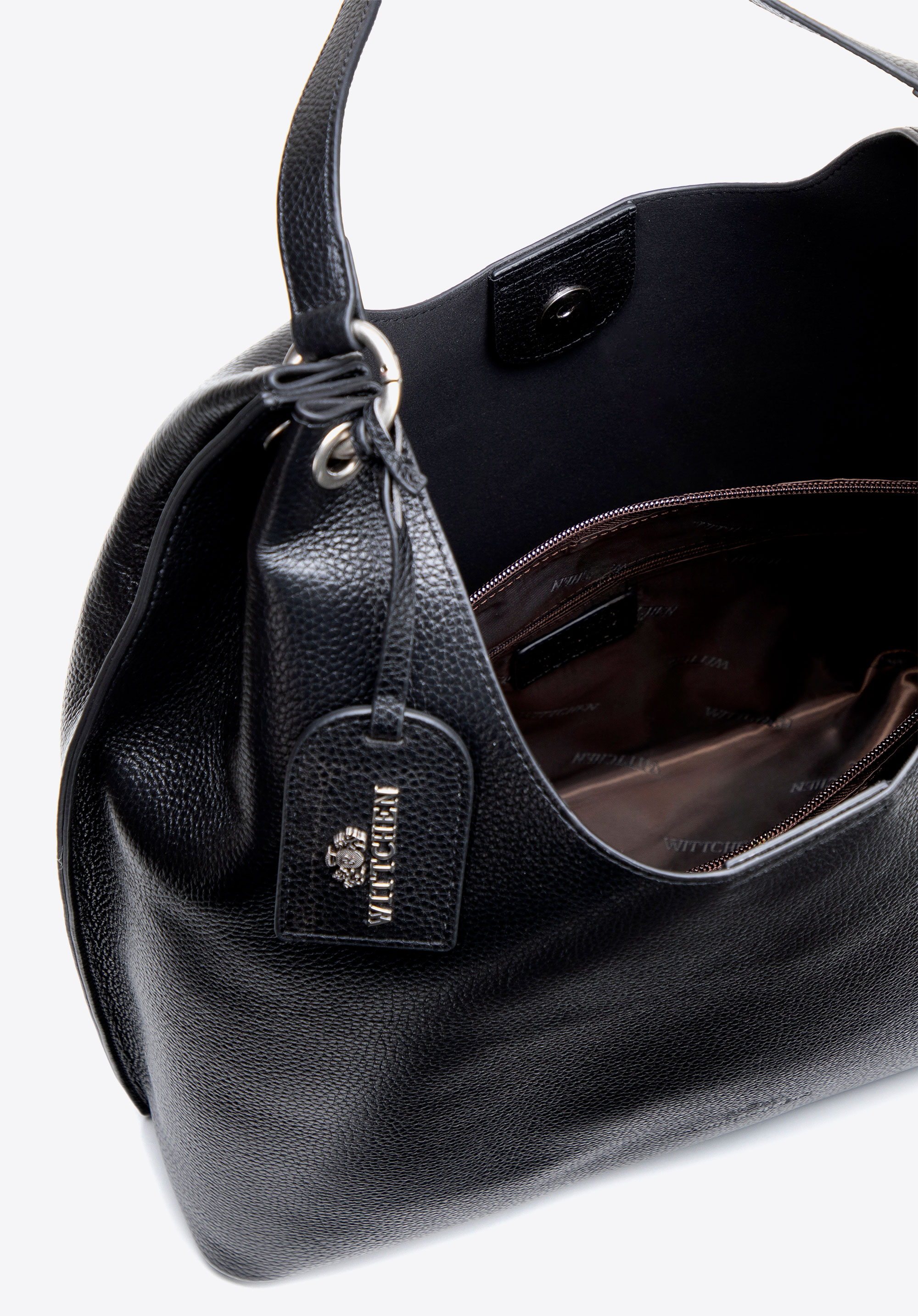 - Stylowe detale: Tłoczone logo oraz odpinany chwost z sygnaturą nadają torebce dopracowany, elegancki charakter — subtelna ozdoba, która przyciąga spojrzenia.