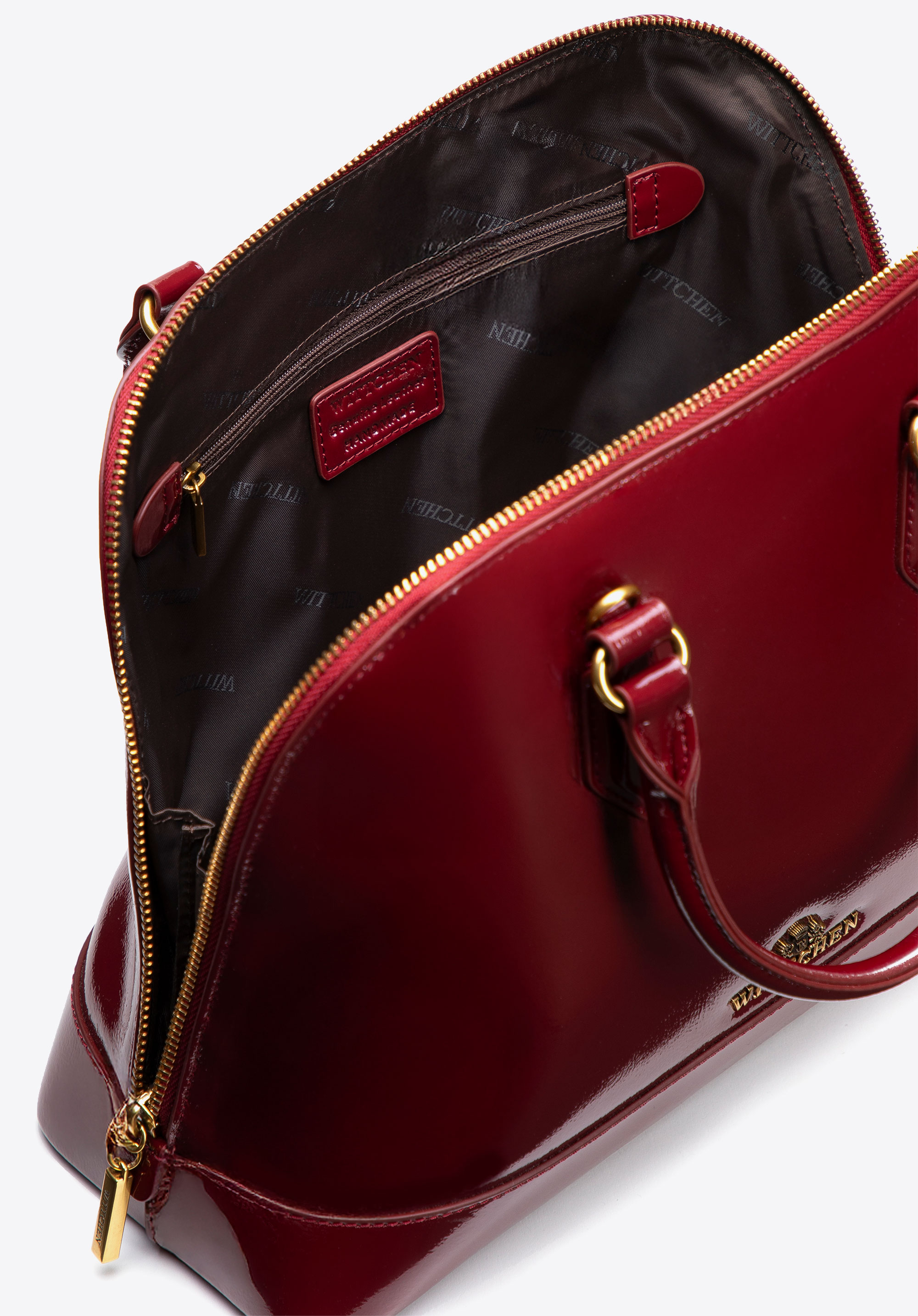 Ten kuferek łączy nowoczesną elegancję z wyrazistym stylem, tworząc ponadczasowy dodatek na każdą okazję. Korpus ze skóry lakierowanej zachwyci Cię pięknym połyskiem i szlachetną strukturą, dzięki czemu torba stanie się wyjątkowym akcentem każdej Twojej stylizacji. Rączki, pasek oraz miękkie wewnętrzne wykończenia z imitacji skóry dodają jej lekkości i zapewniają przyjemny komfort noszenia. Zapinana na zamek komora dba o bezpieczeństwo Twoich rzeczy, a dzięki dwóm rączkom i odpinanemu, regulowanemu paskowi możesz nosić ją tak, jak Ci najwygodniej — w dłoni lub na ramieniu.
