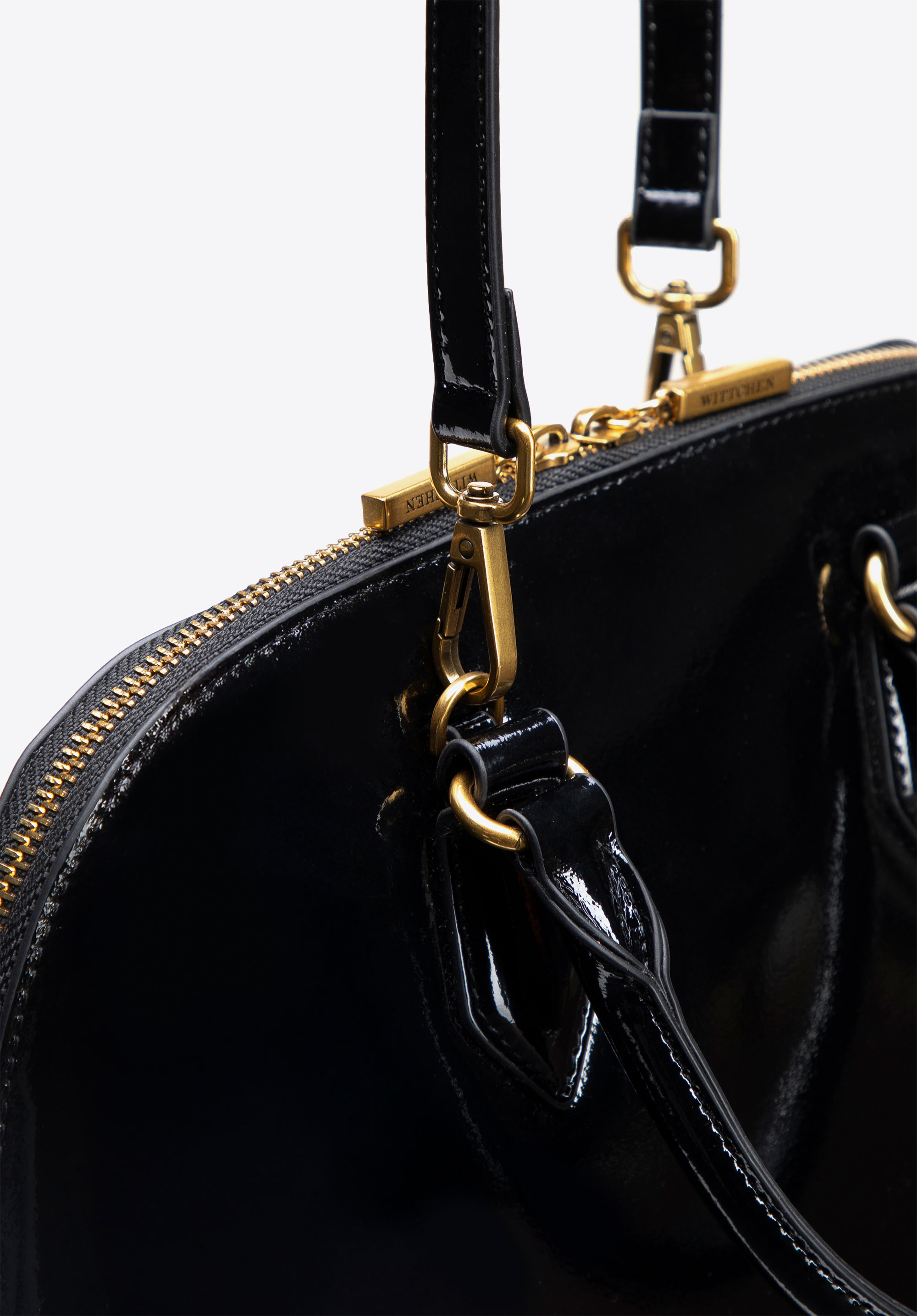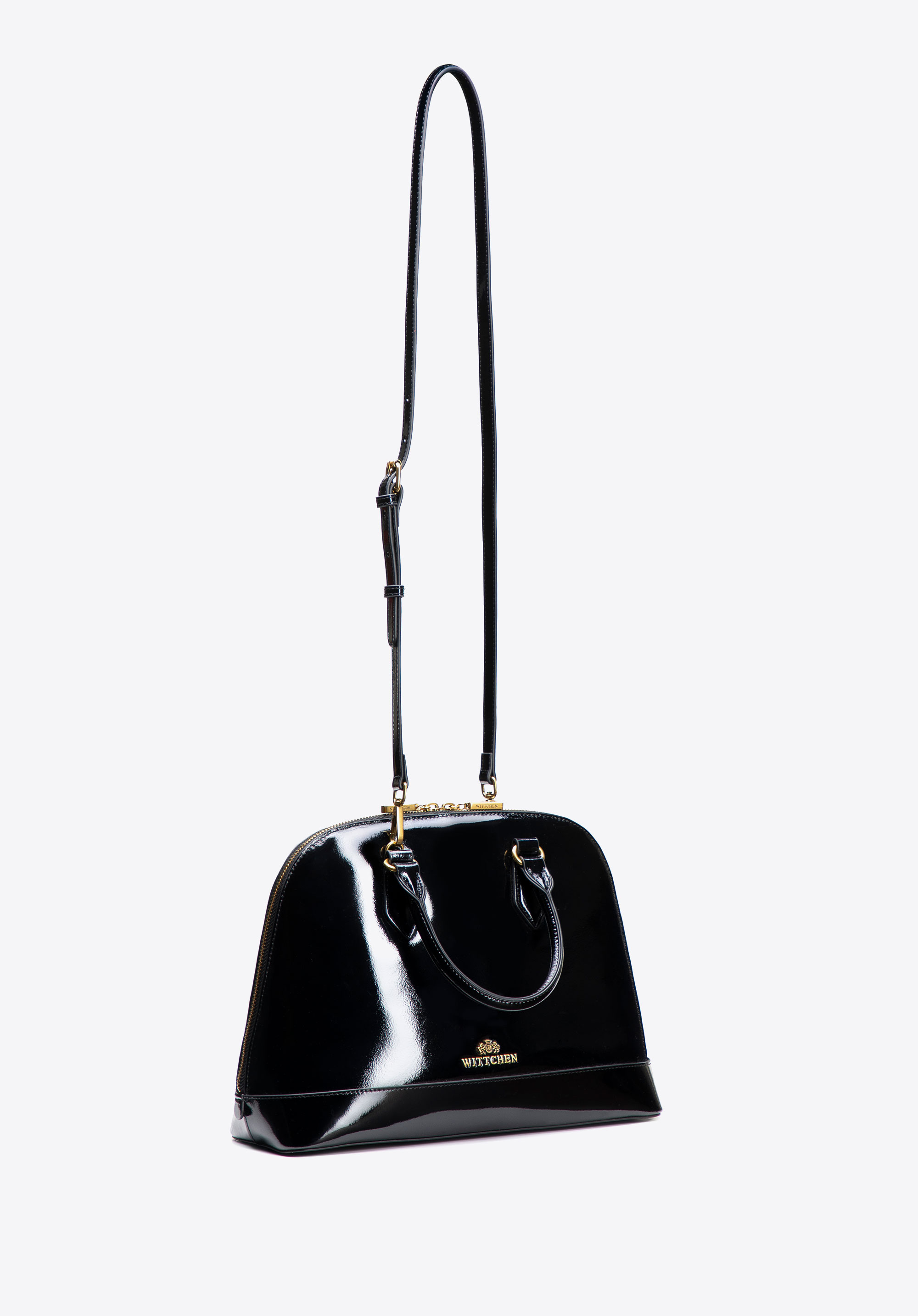 Ten kuferek łączy nowoczesną elegancję z wyrazistym stylem, tworząc ponadczasowy dodatek na każdą okazję. Korpus ze skóry lakierowanej zachwyci Cię pięknym połyskiem i szlachetną strukturą, dzięki czemu torba stanie się wyjątkowym akcentem każdej Twojej stylizacji. Rączki, pasek oraz miękkie wewnętrzne wykończenia z imitacji skóry dodają jej lekkości i zapewniają przyjemny komfort noszenia. Zapinana na zamek komora dba o bezpieczeństwo Twoich rzeczy, a dzięki dwóm rączkom i odpinanemu, regulowanemu paskowi możesz nosić ją tak, jak Ci najwygodniej — w dłoni lub na ramieniu.
