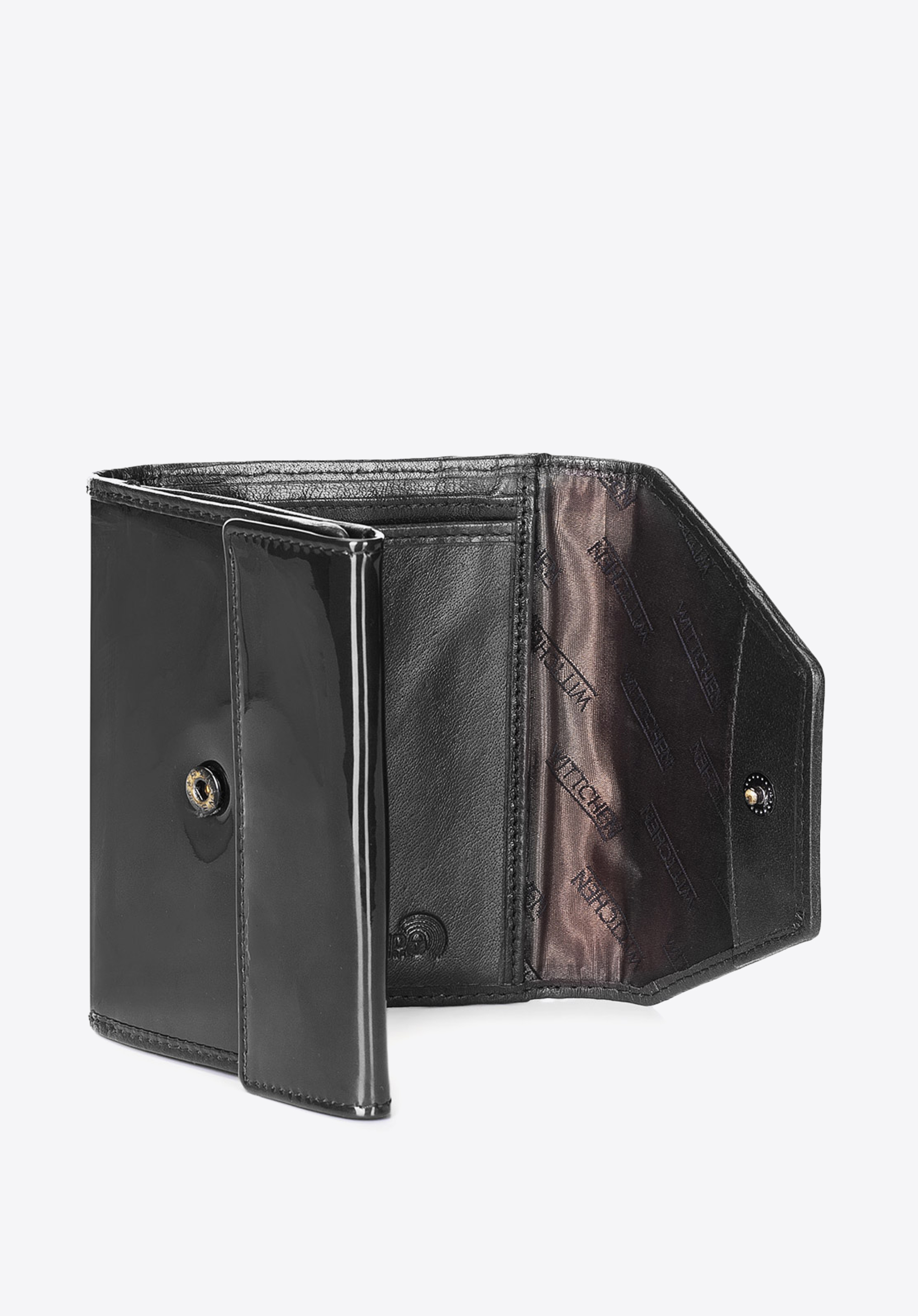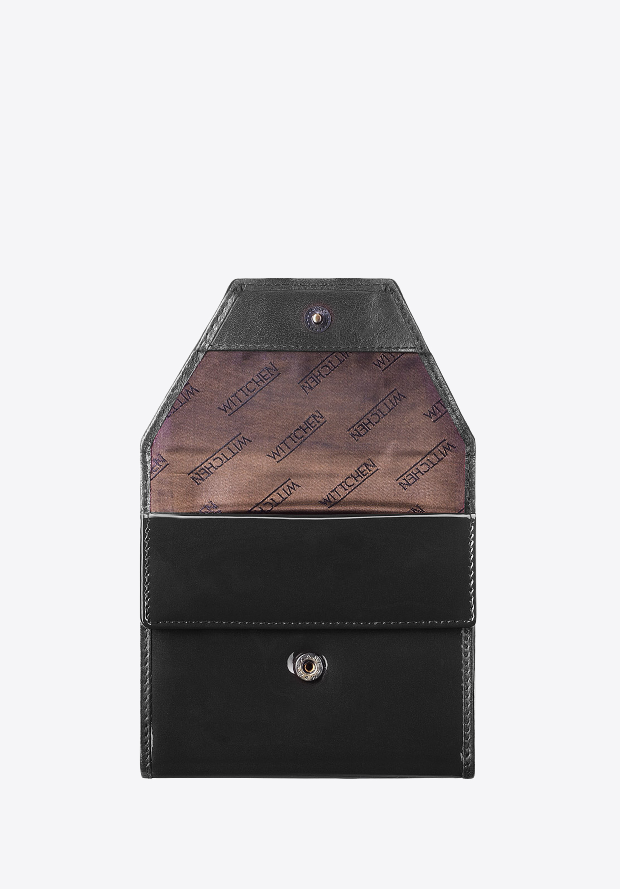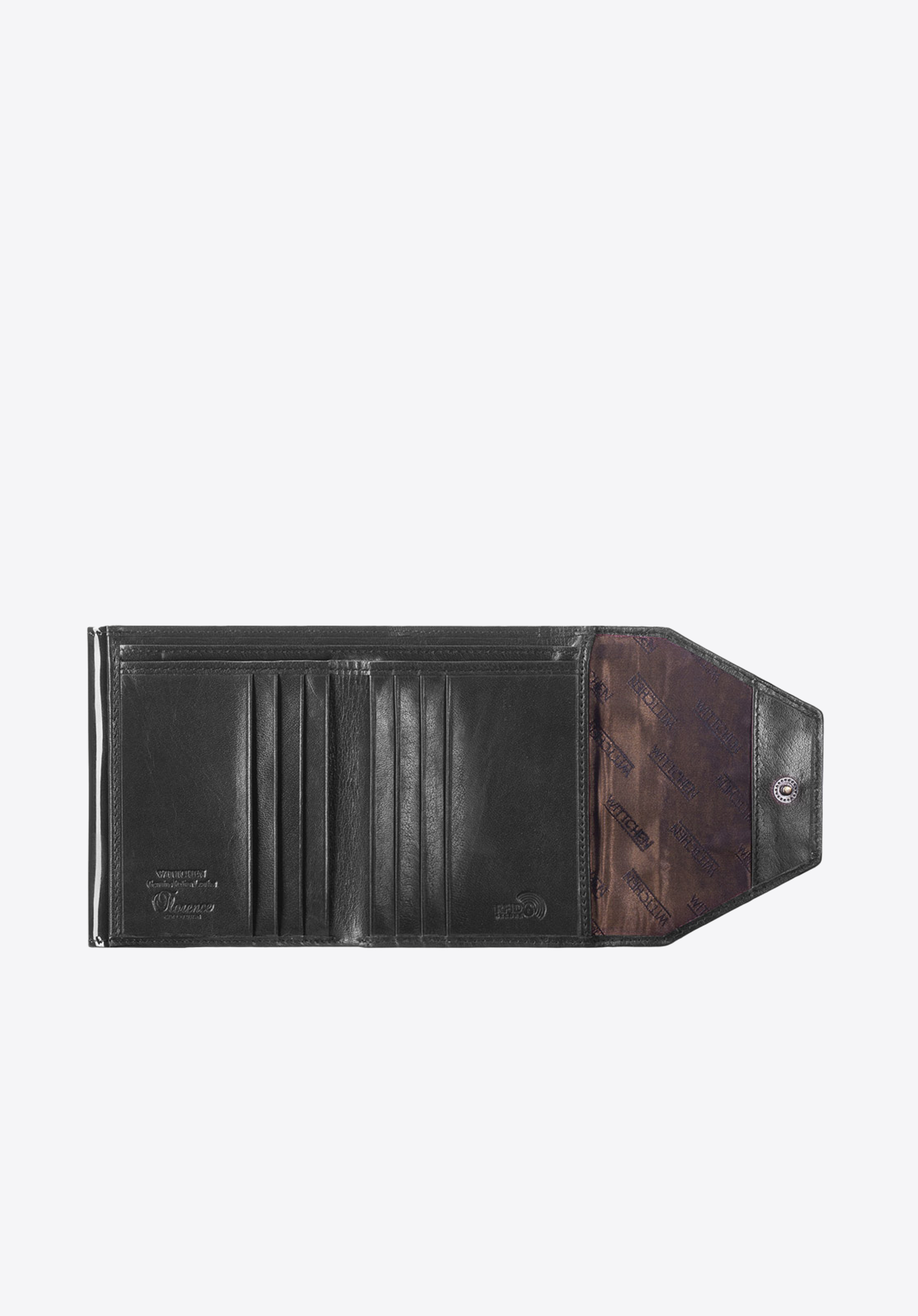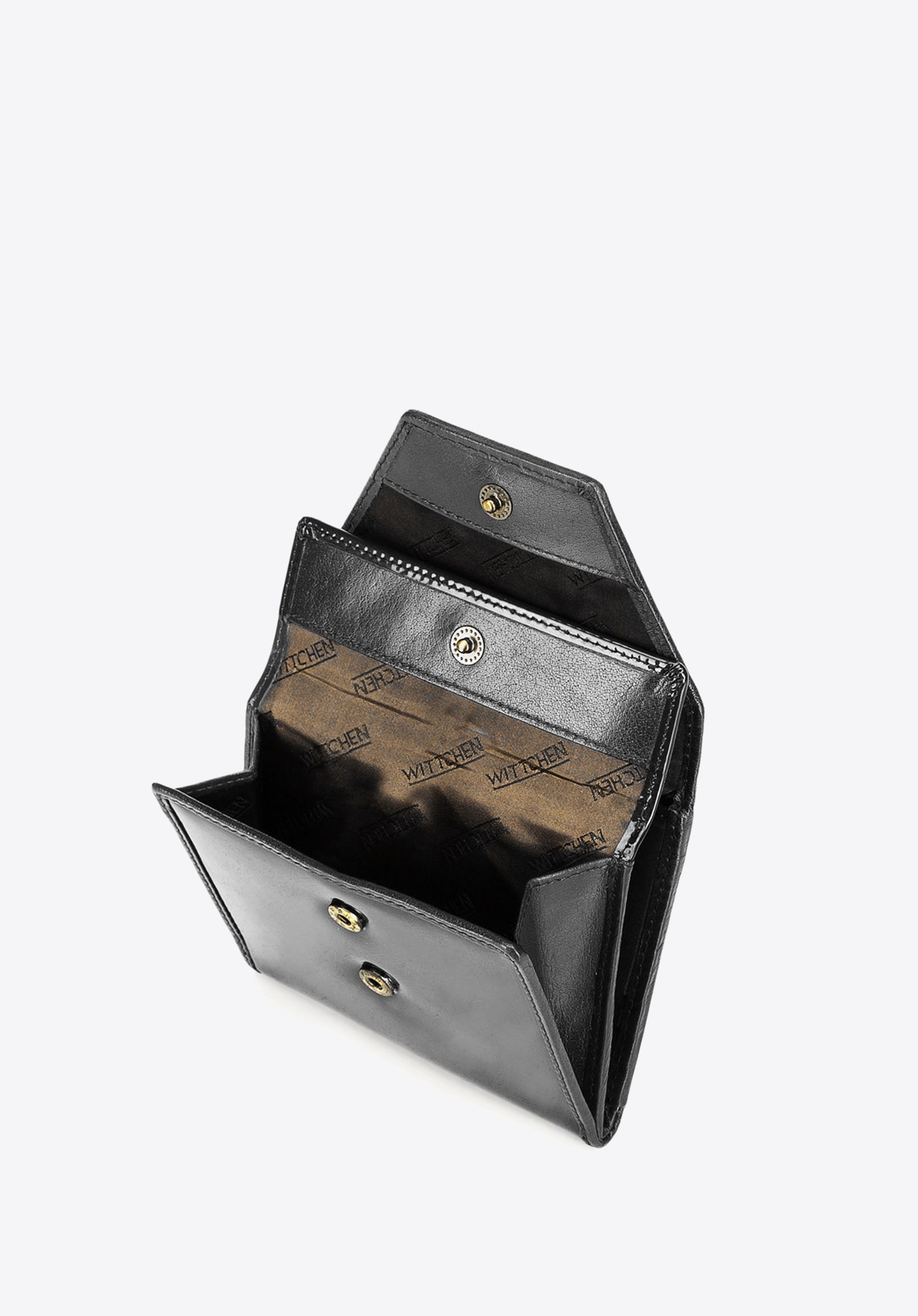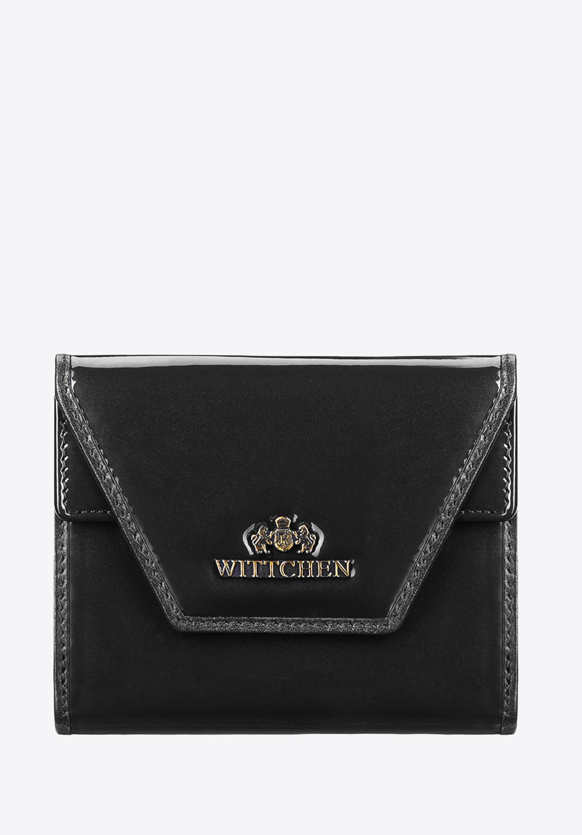 portfel posiada zdobienie w postaci blaszki z herbem WITTCHEN w kolorze starego złota;