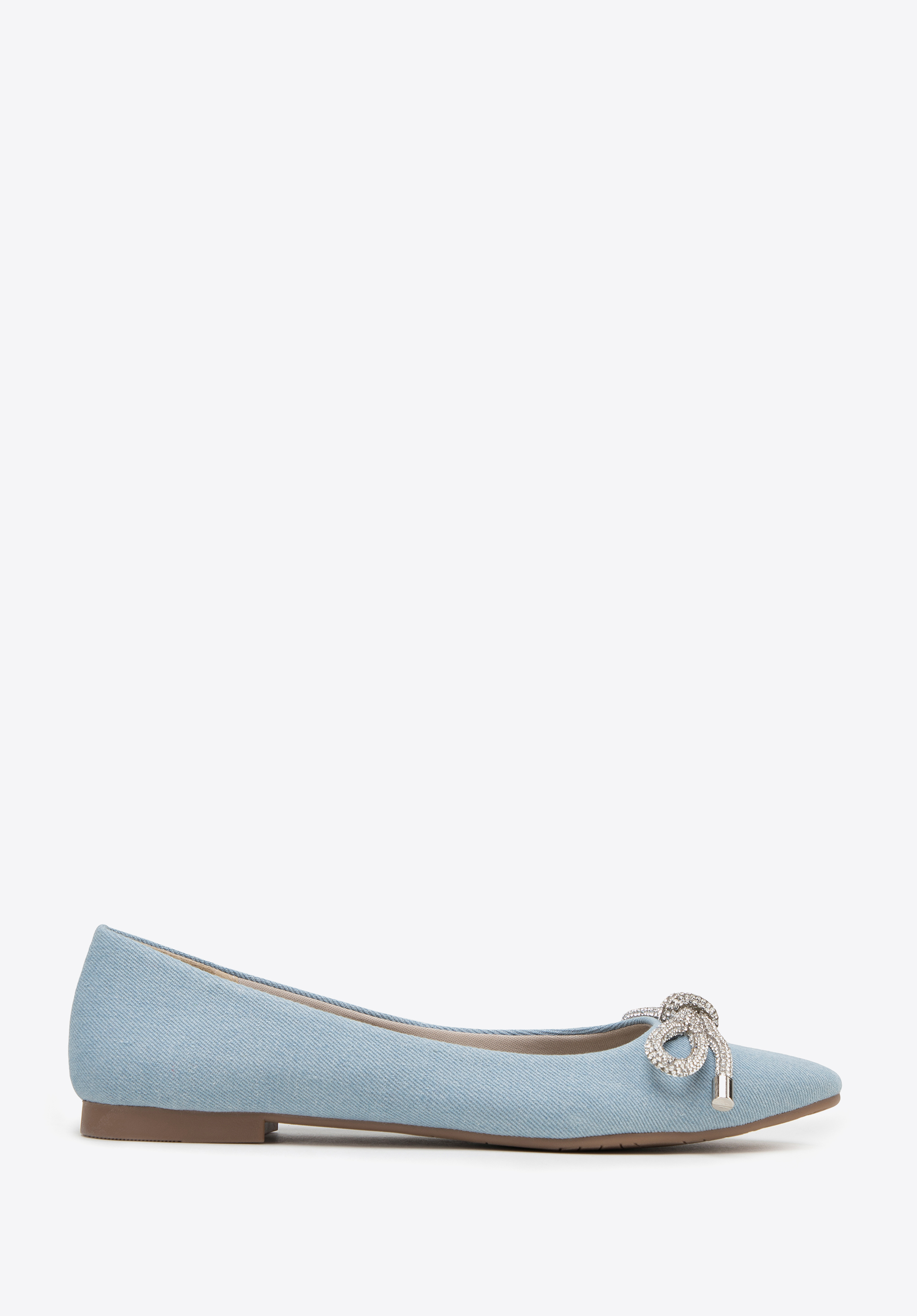 Denim ballerina flats with a shiny bow detail boast a classic style with a modern twist - perfect for many occasions.