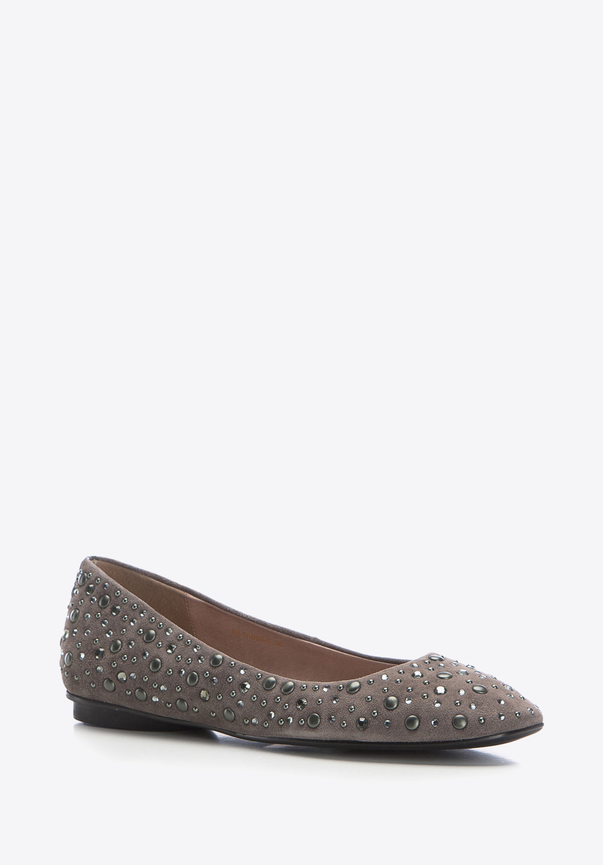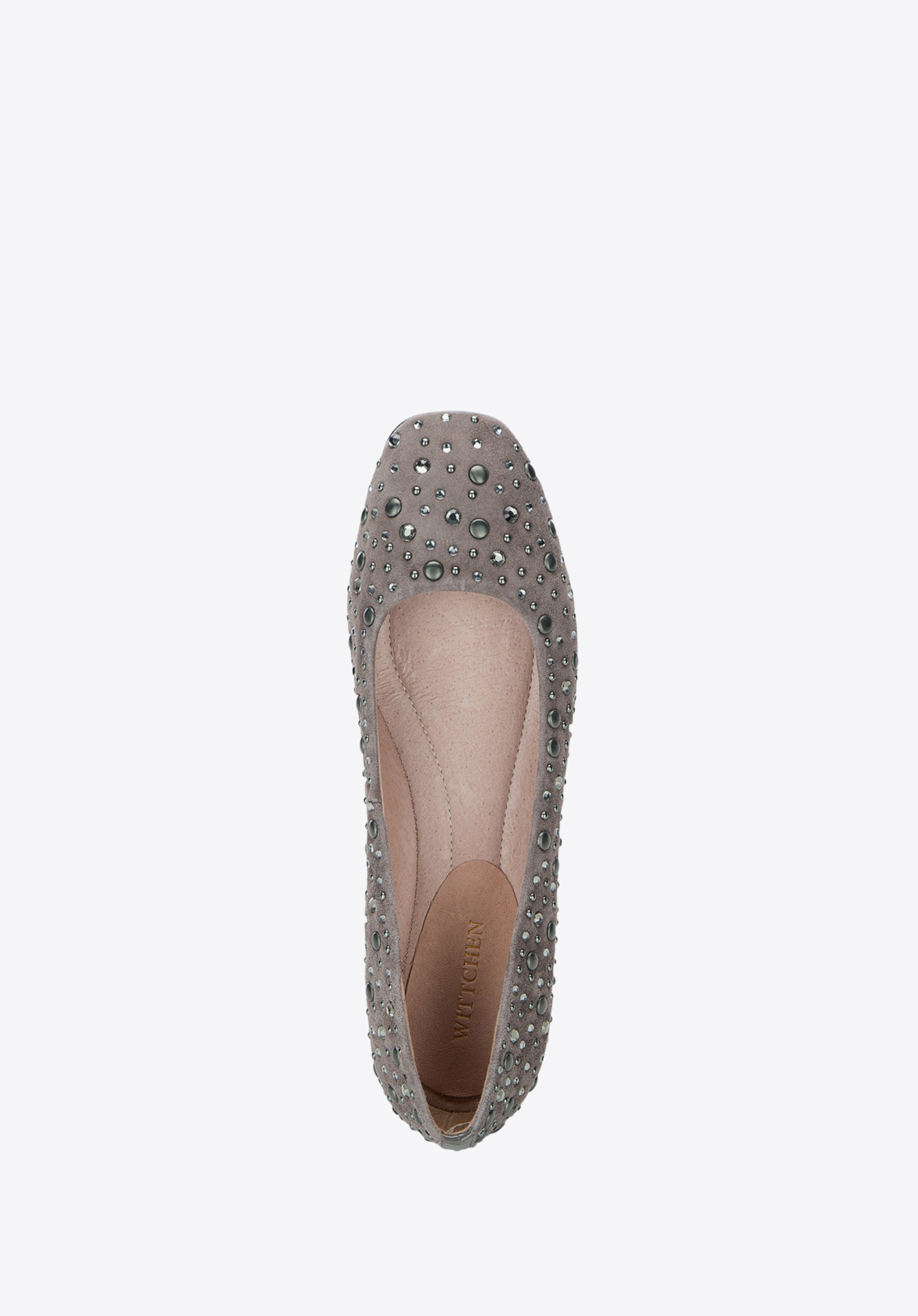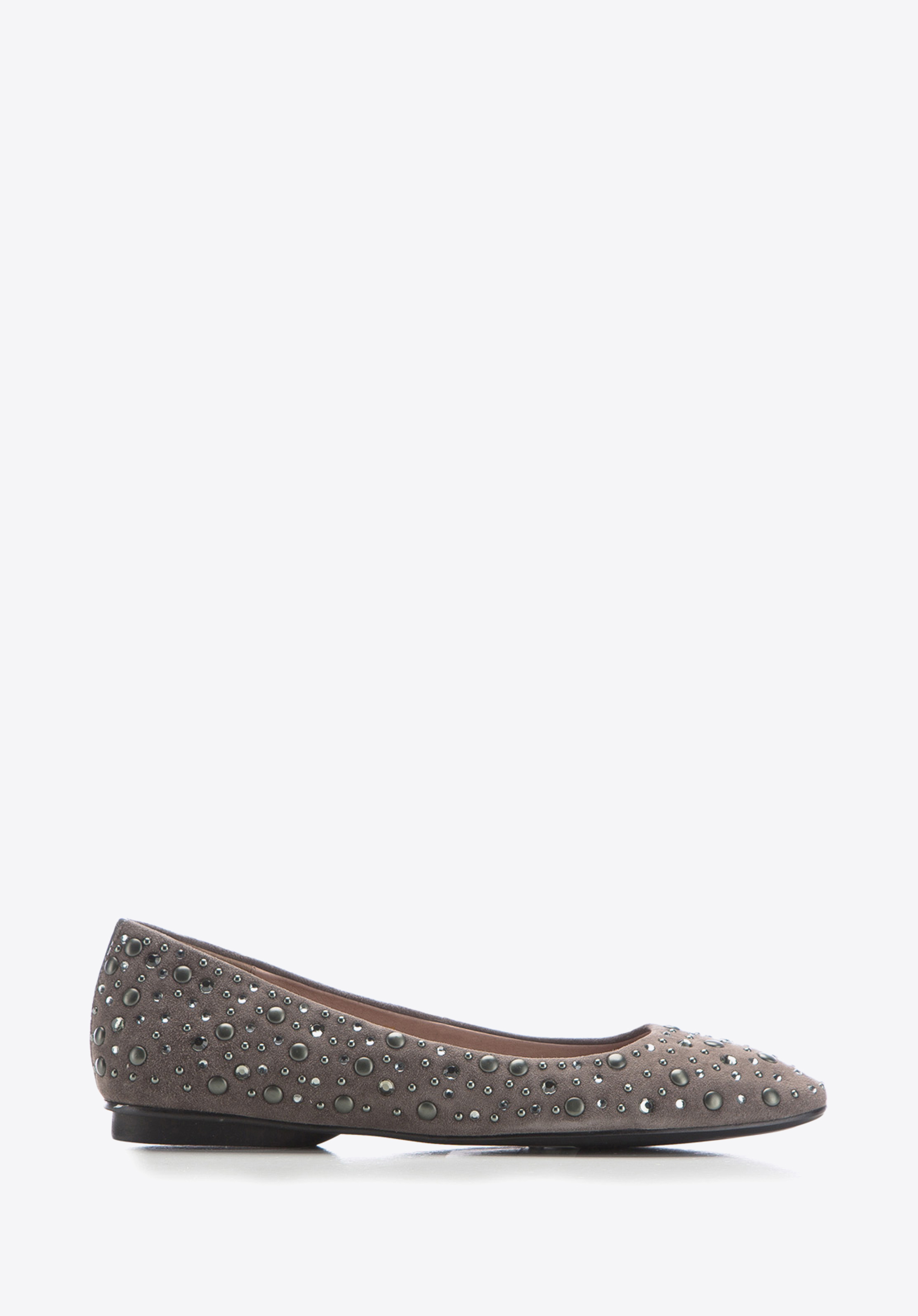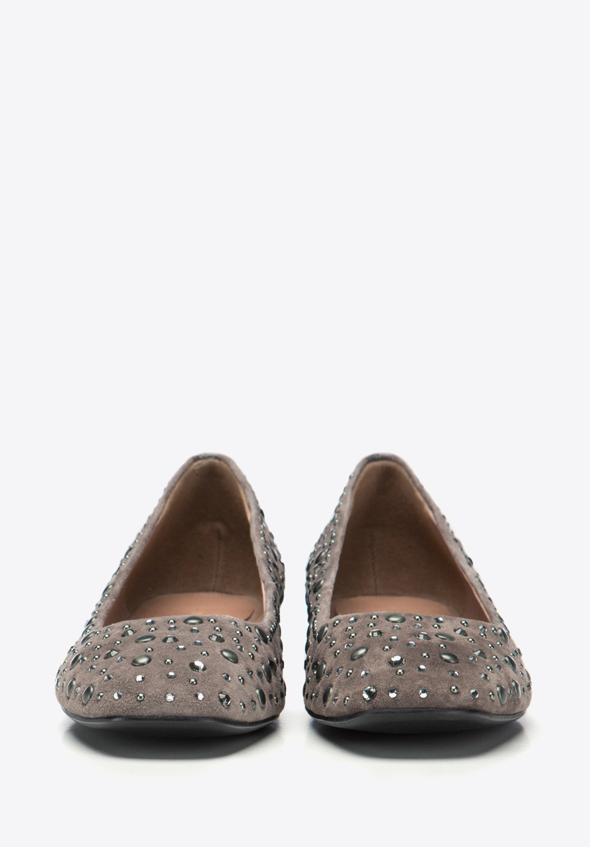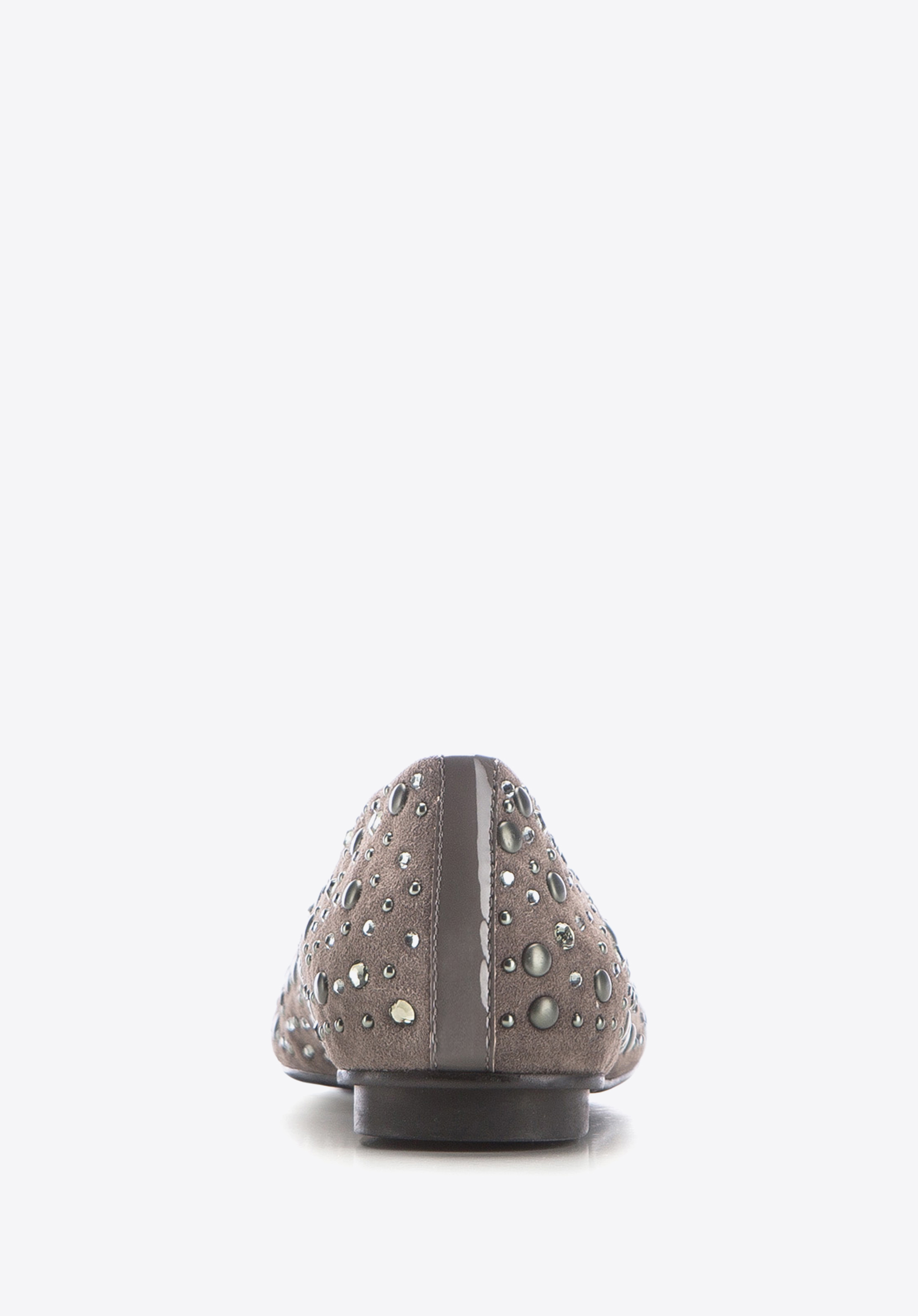 Ballerina shoes embellished with the mix of stud and diamante detailing. These decorations in combination with nubuck leather create a distinctive and elegant design.