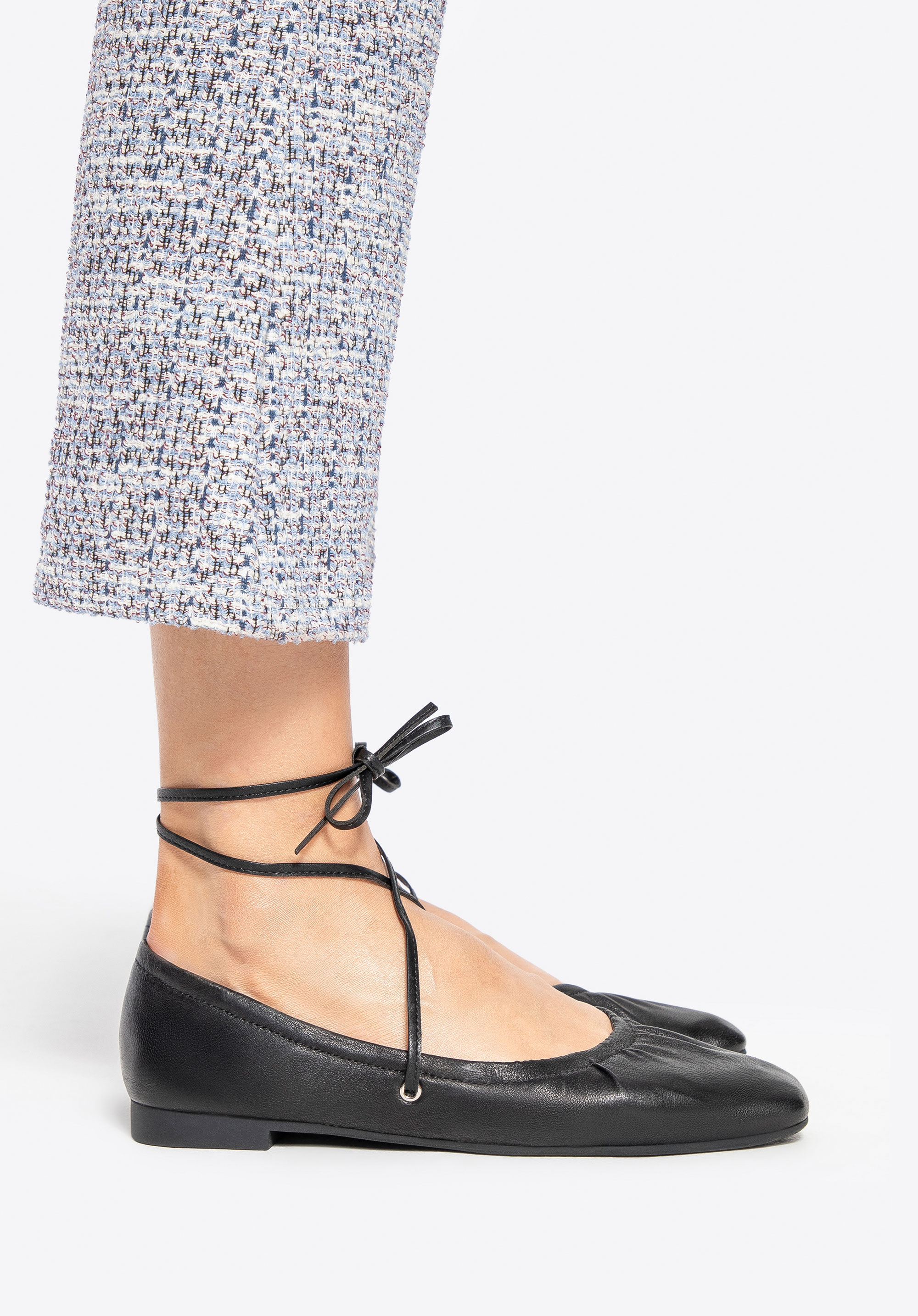 Subtle yet distinctive, these women's ballerina flats are crafted from premium natural leather and combine classic elegance with a modern edge. A square toe gives them a unique character, while the ankle tie straps add a sense of lightness and feminine charm. A leather lining ensures day-long comfort, and the rubber sole offers flexibility and stability with every step.