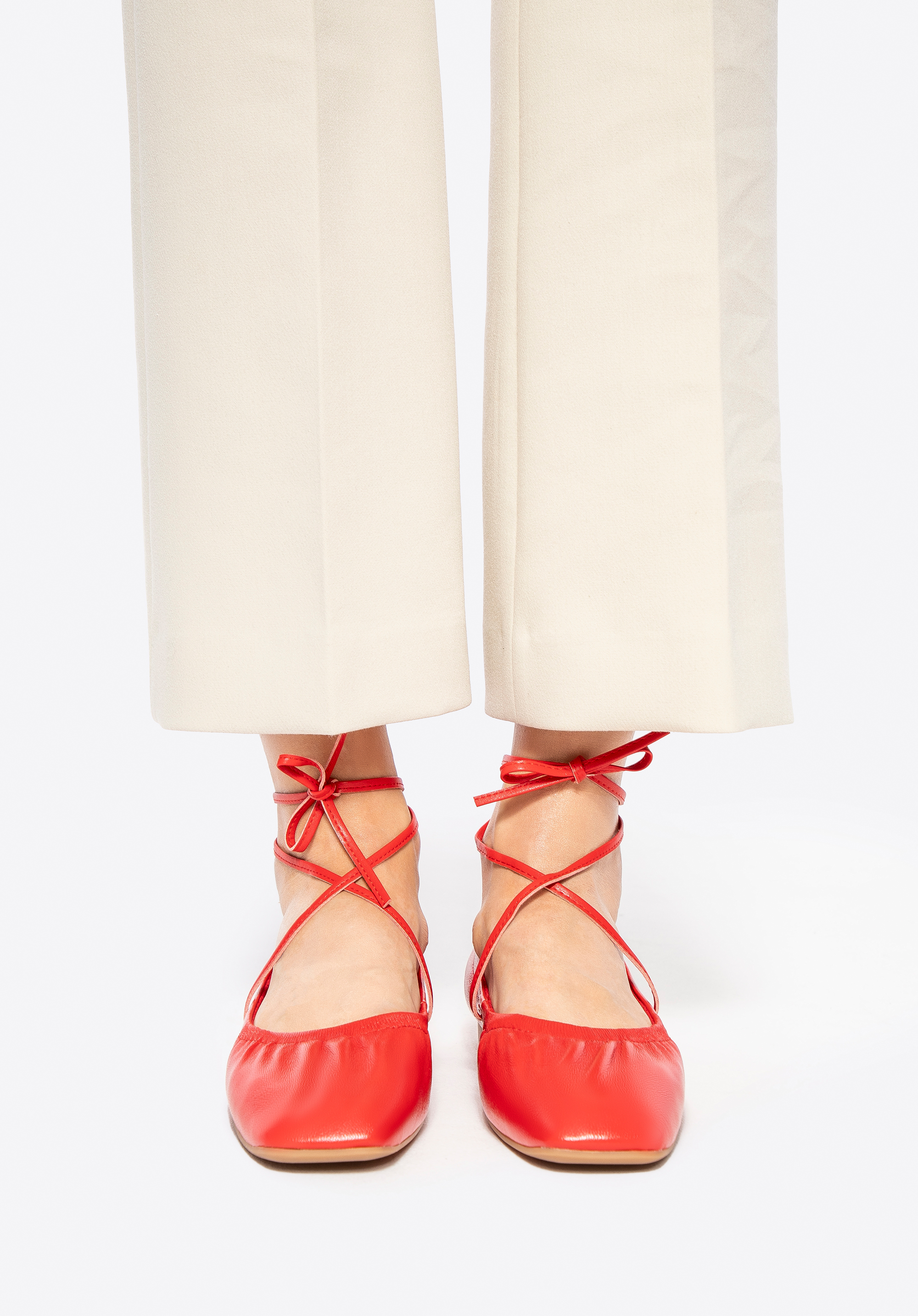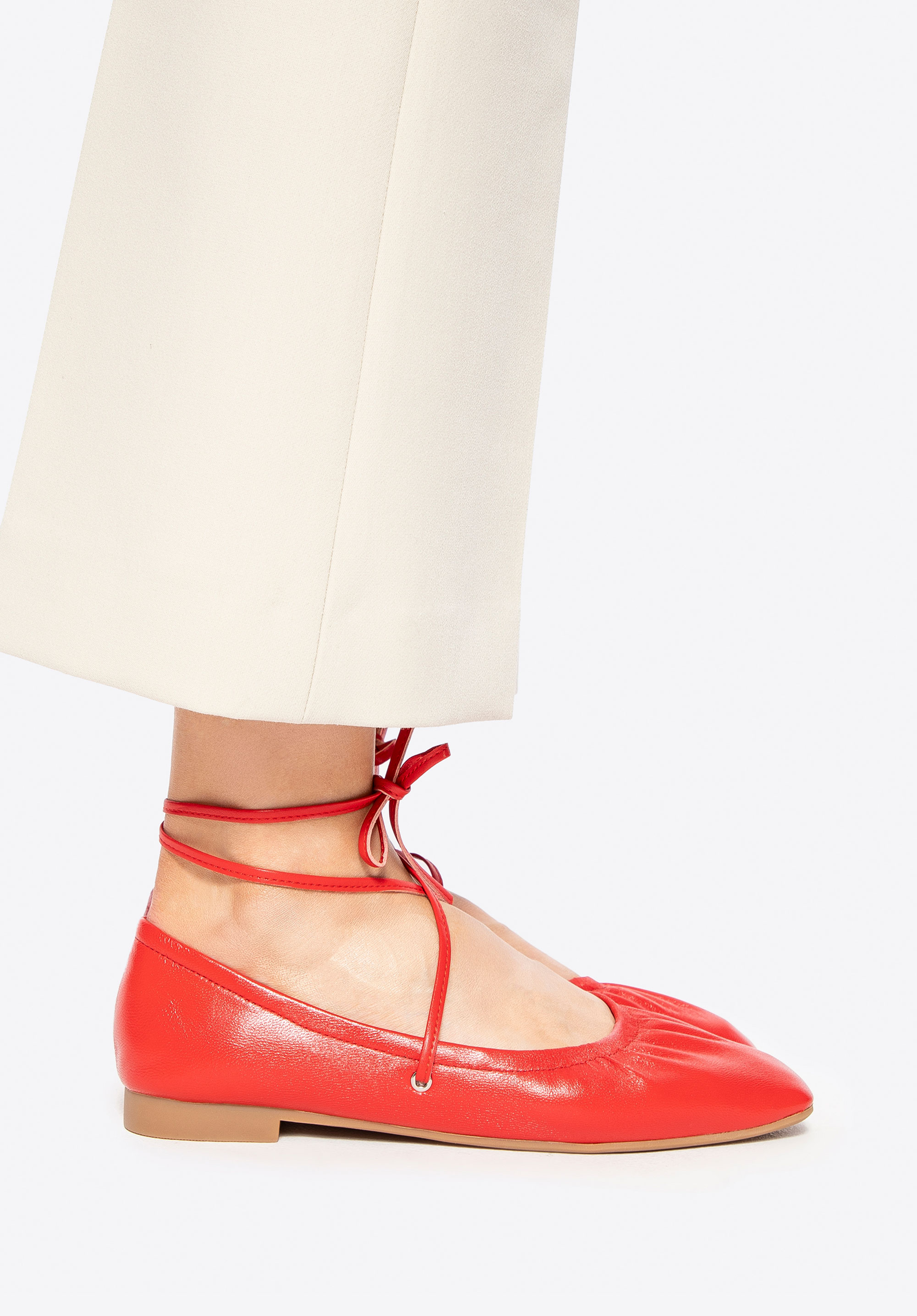 Subtle yet distinctive, these women's ballerina flats are crafted from premium natural leather and combine classic elegance with a modern edge. A square toe gives them a unique character, while the ankle tie straps add a sense of lightness and feminine charm. A leather lining ensures day-long comfort, and the rubber sole offers flexibility and stability with every step.