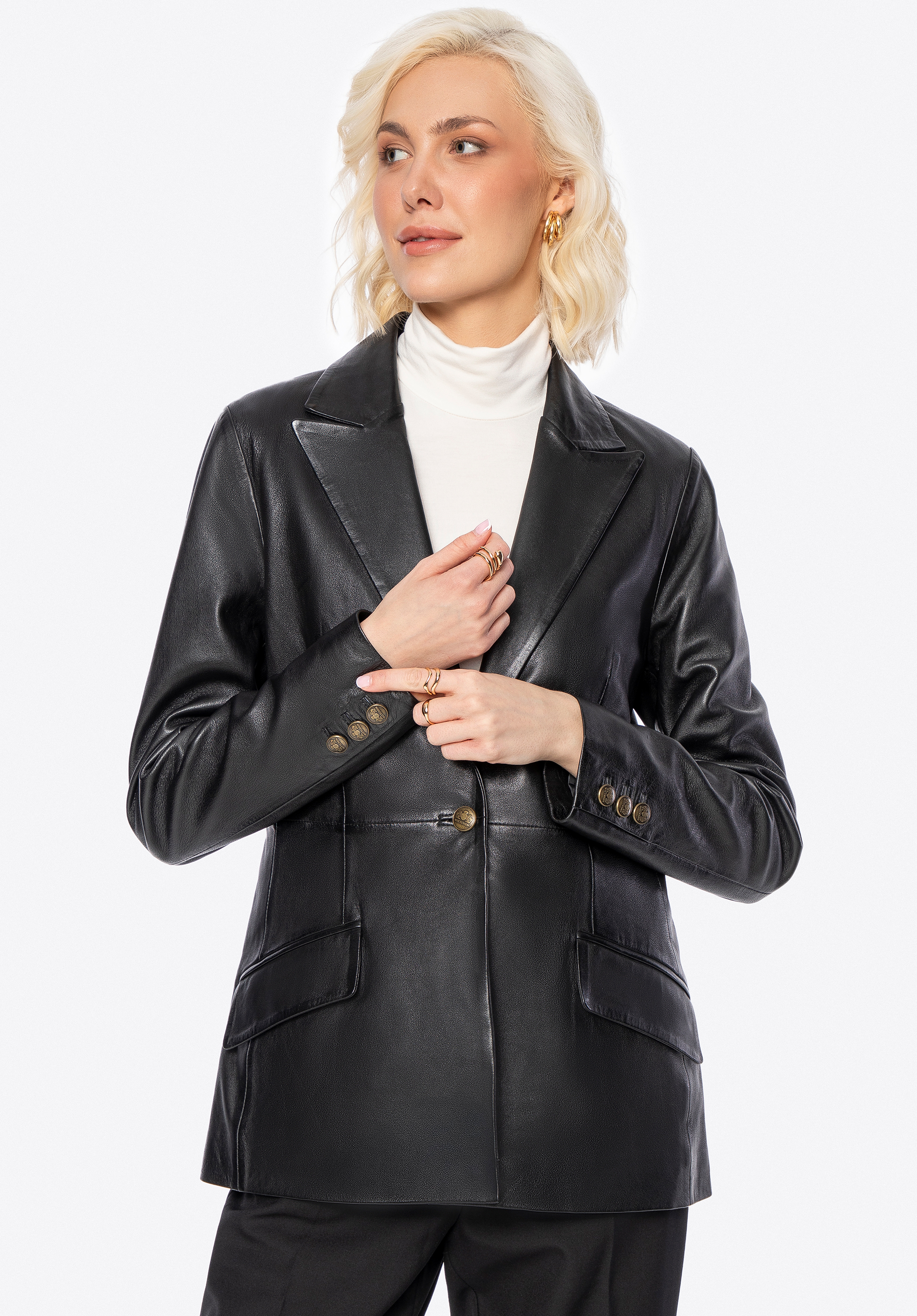 Luxury that speaks for itself. This beautiful short coat made from natural sheepskin leather is the perfect blend of timeless style and modern elegance. Every detail – from the branded metal buttons to the carefully crafted, flattering cut – is designed for women who value quality and sophisticated style. The tailored fit enhances the silhouette, while the classic collar adds a touch of refinement.