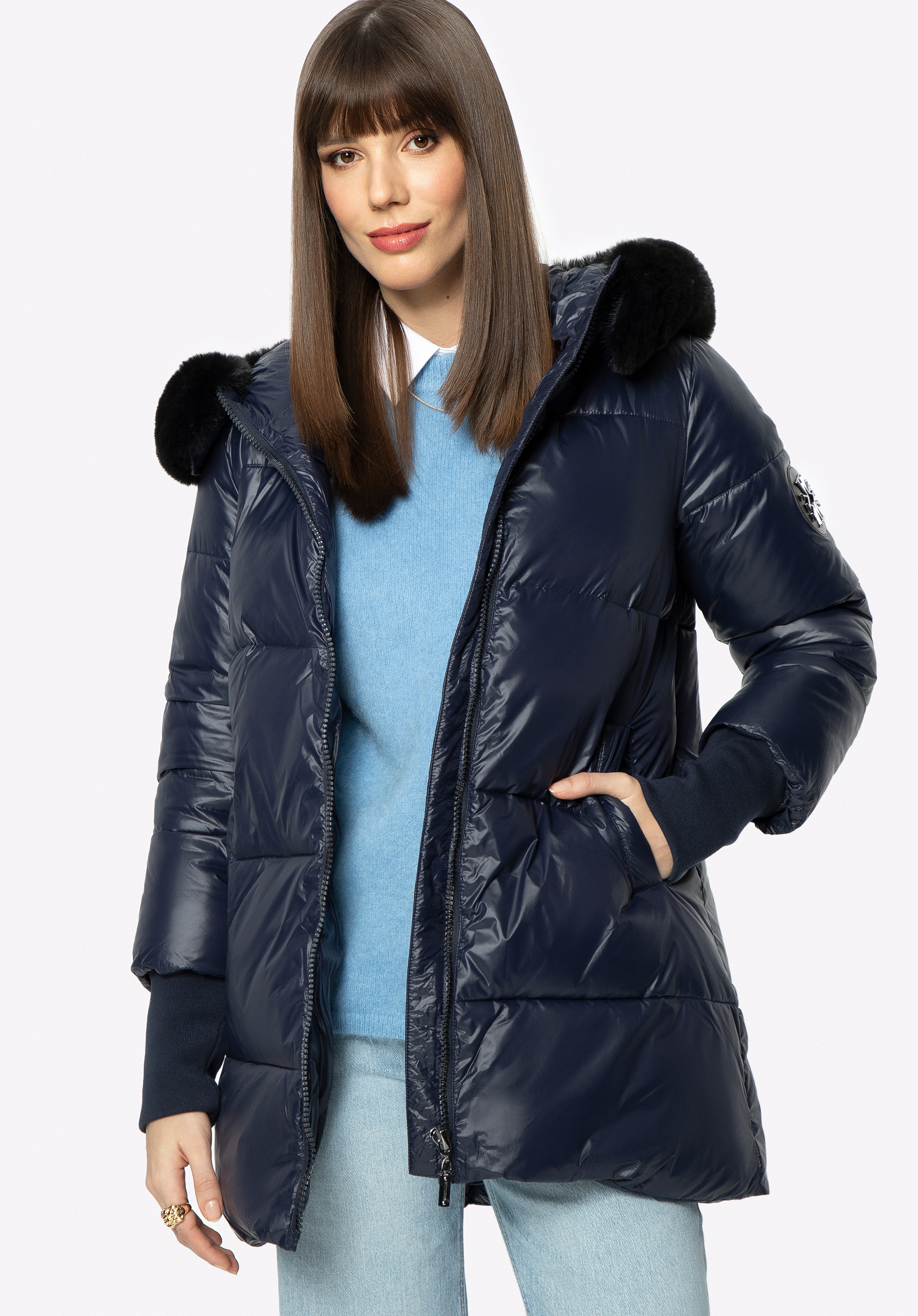- glossy zip fastening;