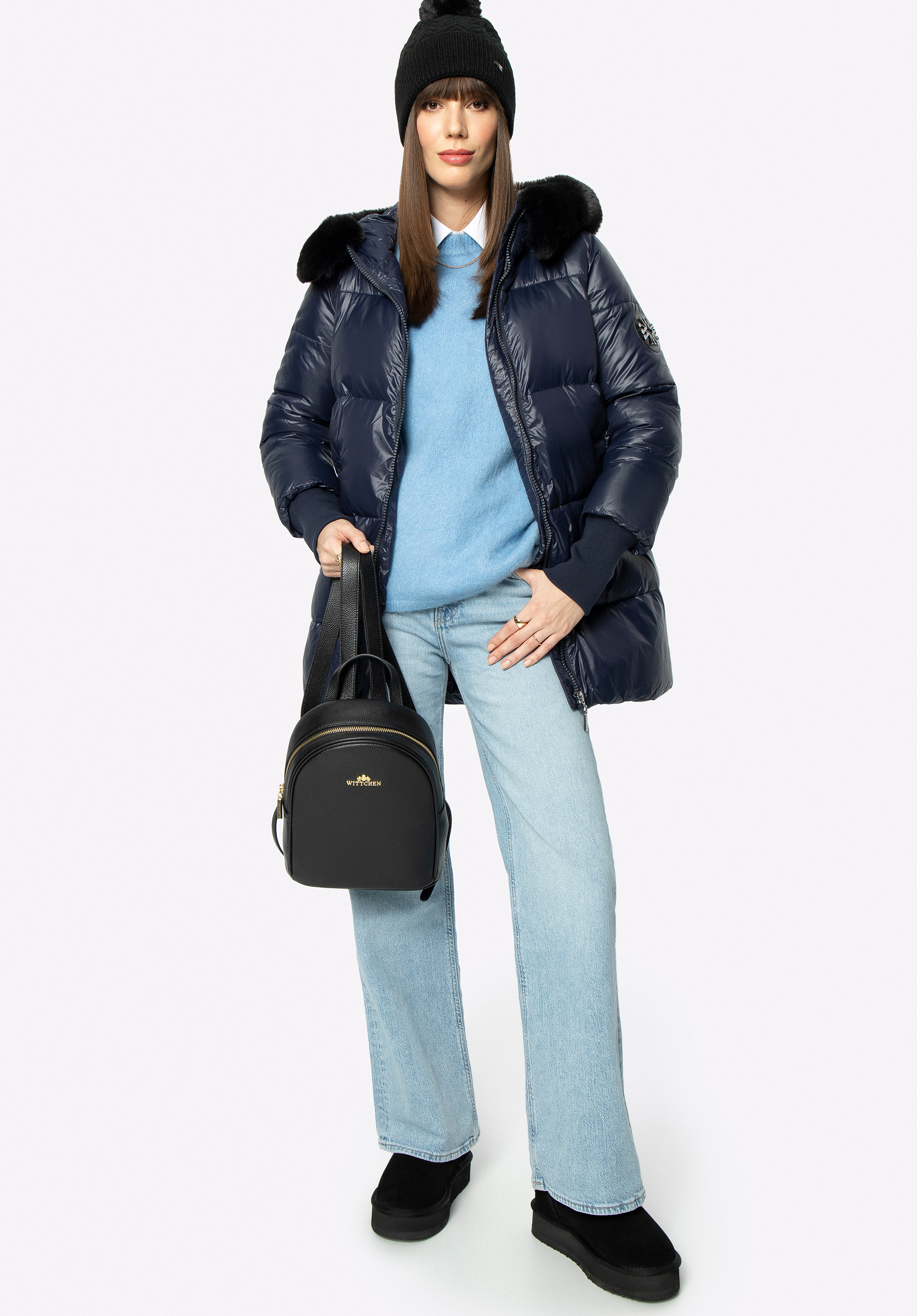 women's hooded quilted nylon jacket is a chic piece you can wear every day. It looks equally stunning with your favourite heeled ankle boots or cosy winter chunky-soled boots.
