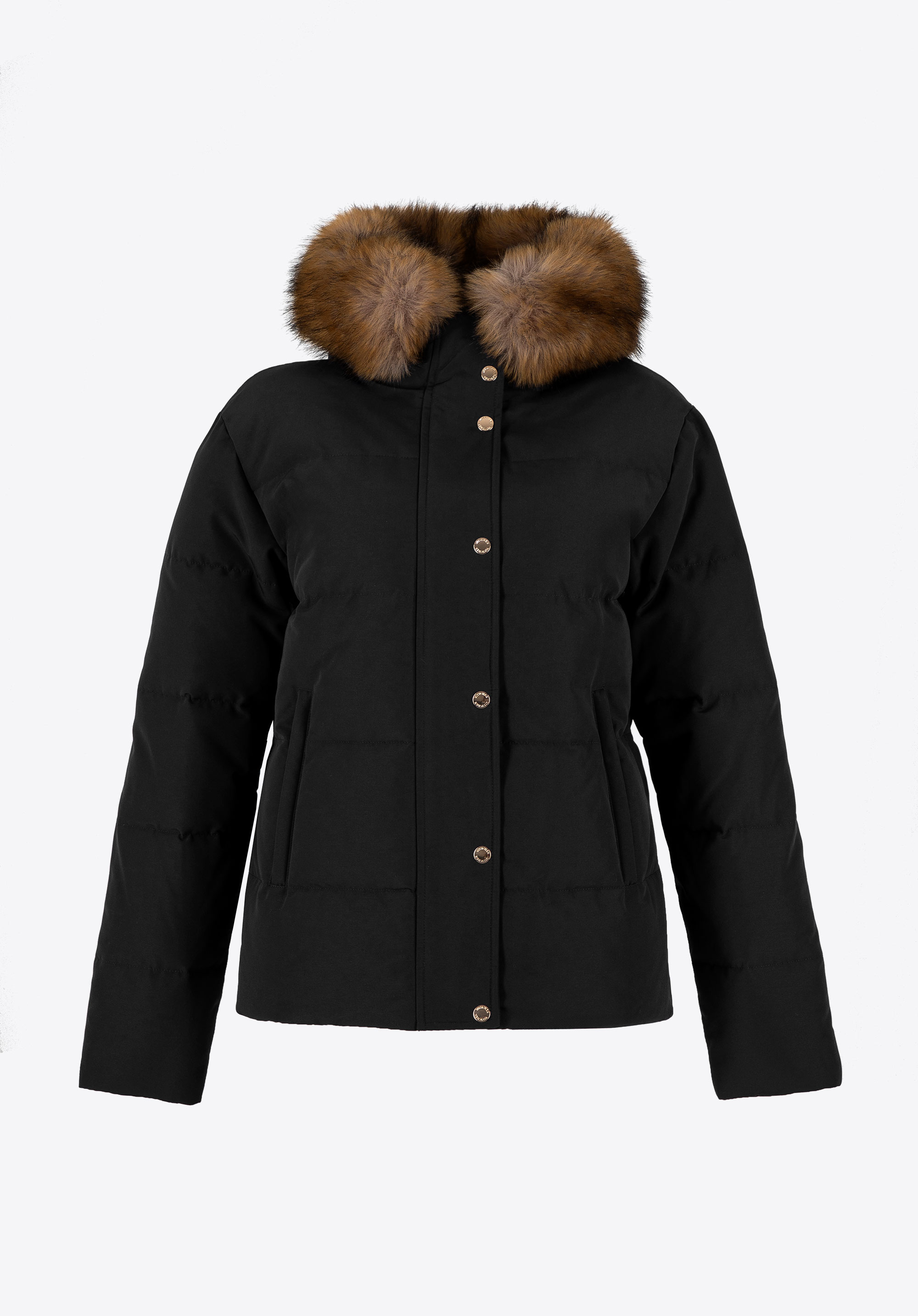 Welcome winter in style with this women's down jacket, created for women who don't compromise between style and comfort. Simple design and quilted structure give the jacket an elegant and timeless look, and the hood decorated with faux fur, which can be unzipped, adds a unique charm.