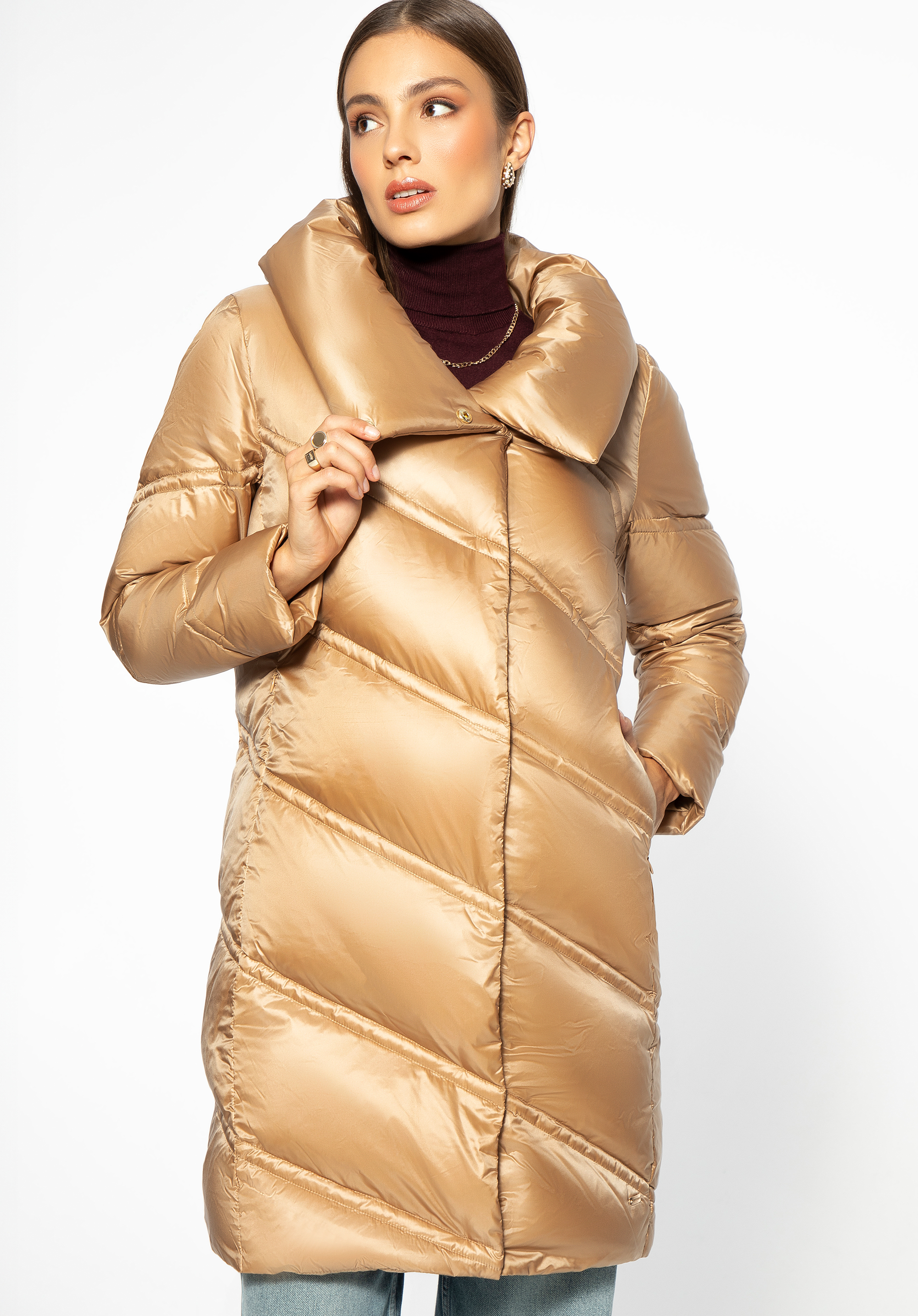When autumn and winter come, this mid-thigh-length jacket provides excellent warmth. With lightweight down and feather insulation, this cosy A-shaped jacket features high stand collar and interesting quilted design. The hood is generously-sized, adding a touch of wintry style. This longline down jacket will keep you warm and toasty on cold days. With lightweight down and feather insulation, it features elegantly-sized hood for a stylish way to beat winter chill.