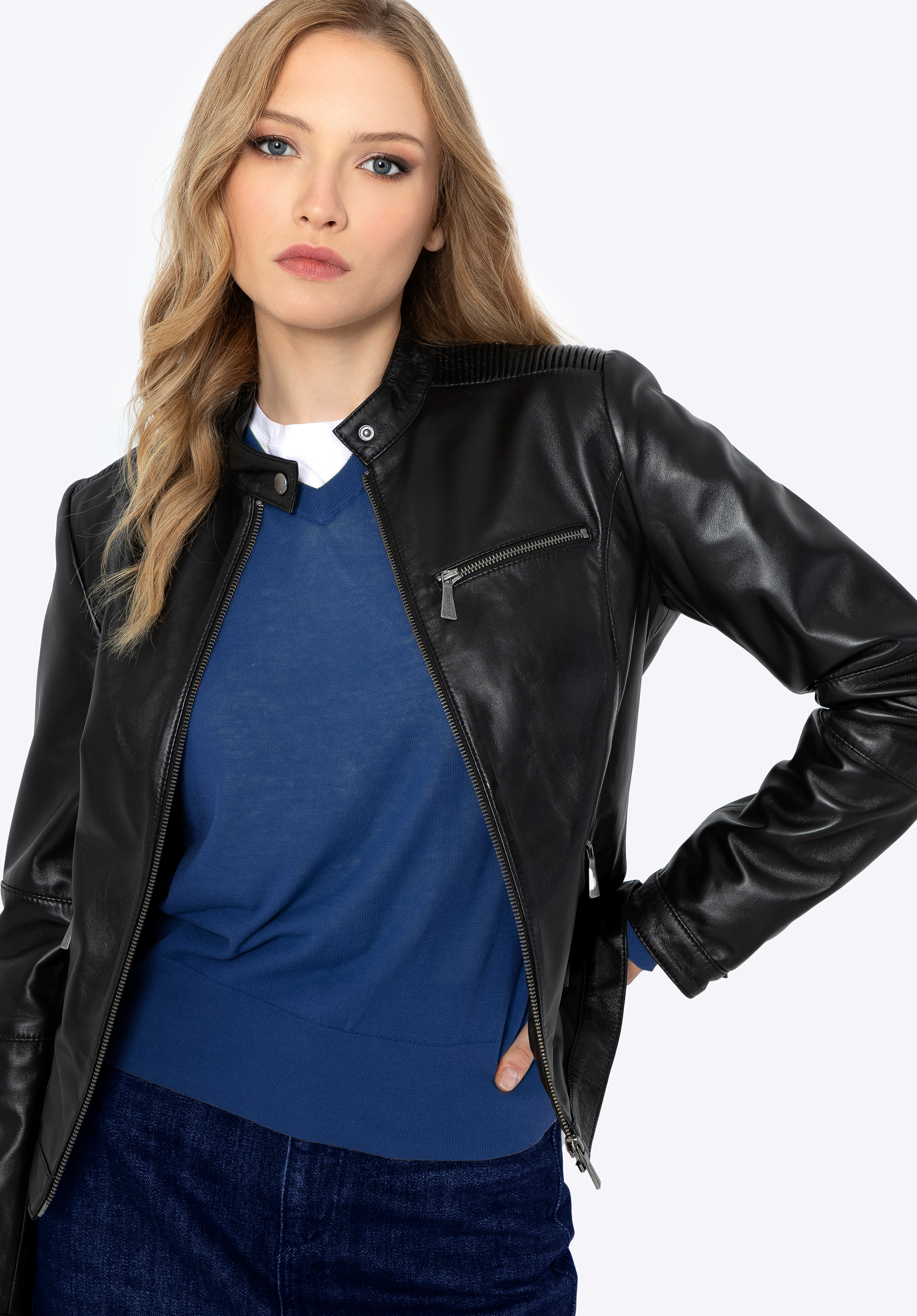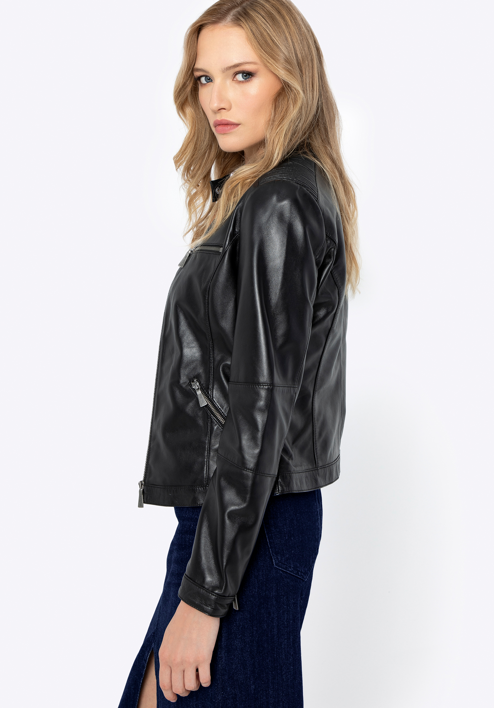 Women's leather jacket with zip