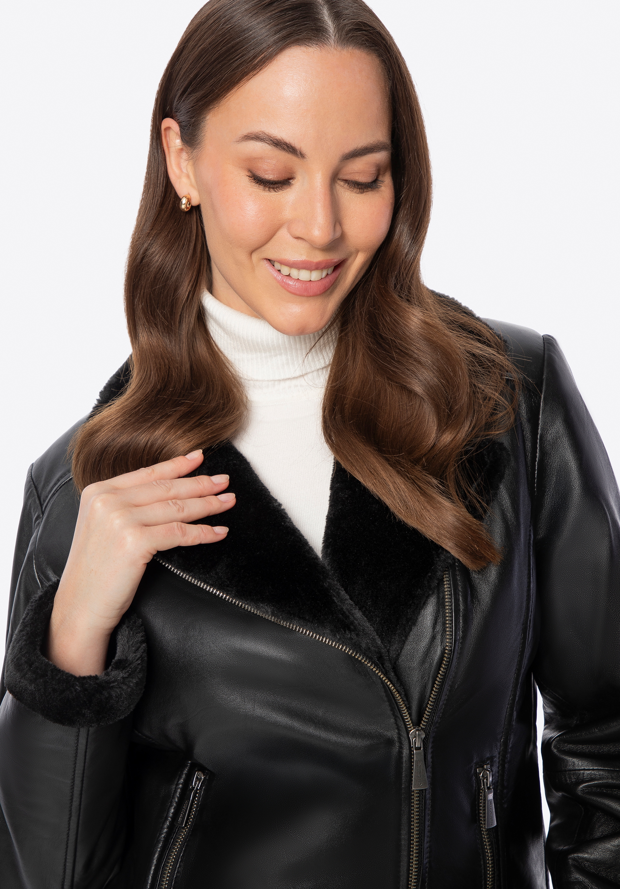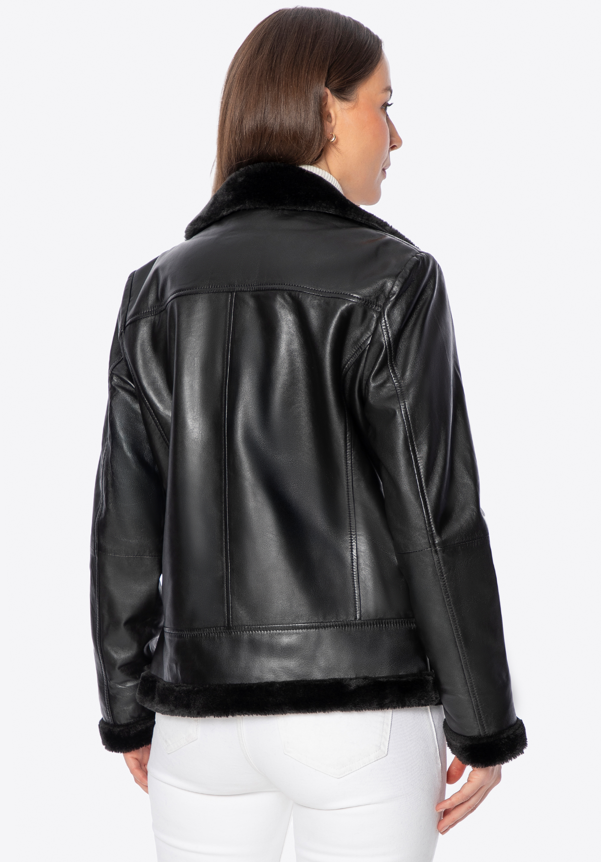 Urban chic and cosy warmth – women’s leather jacket with faux fur lining