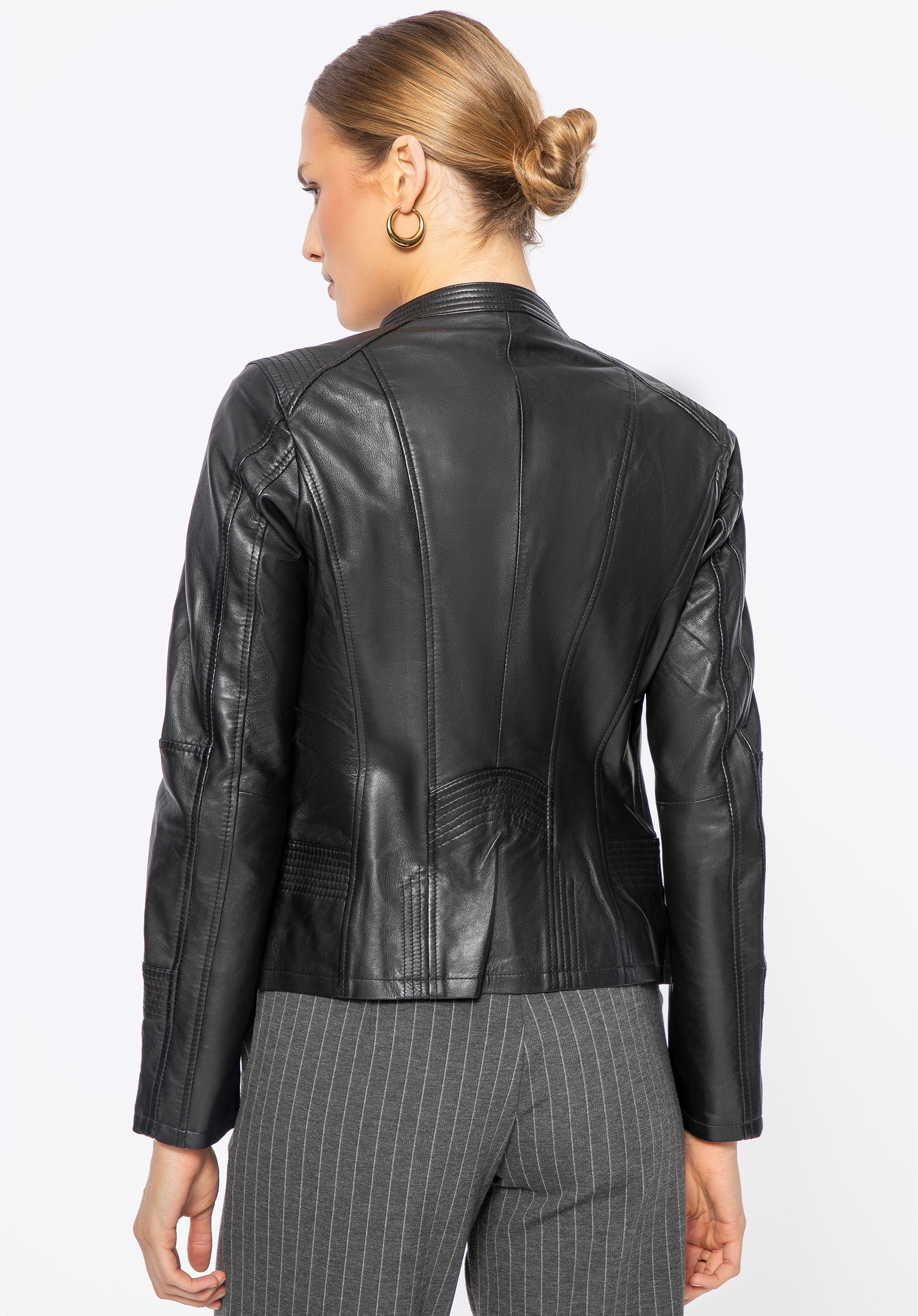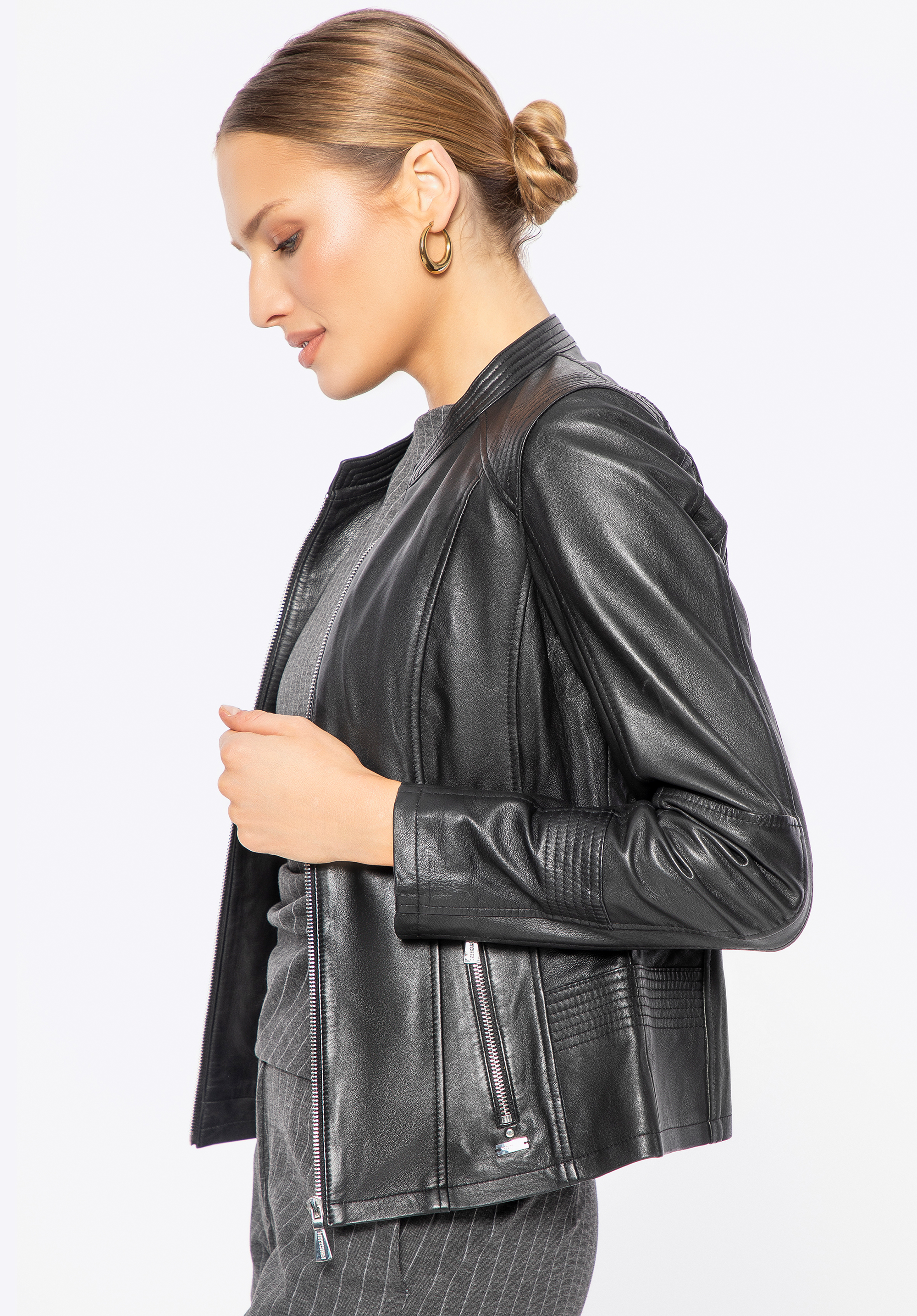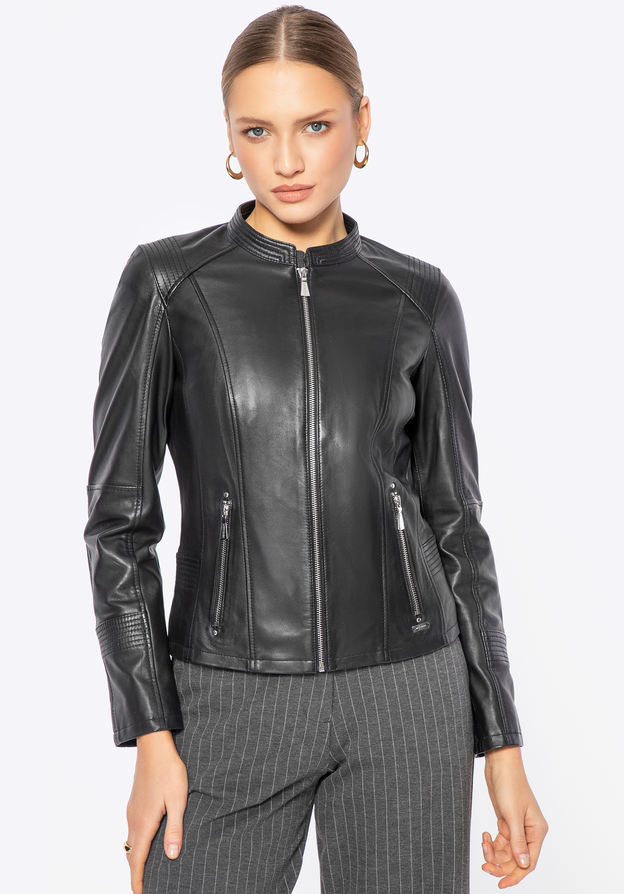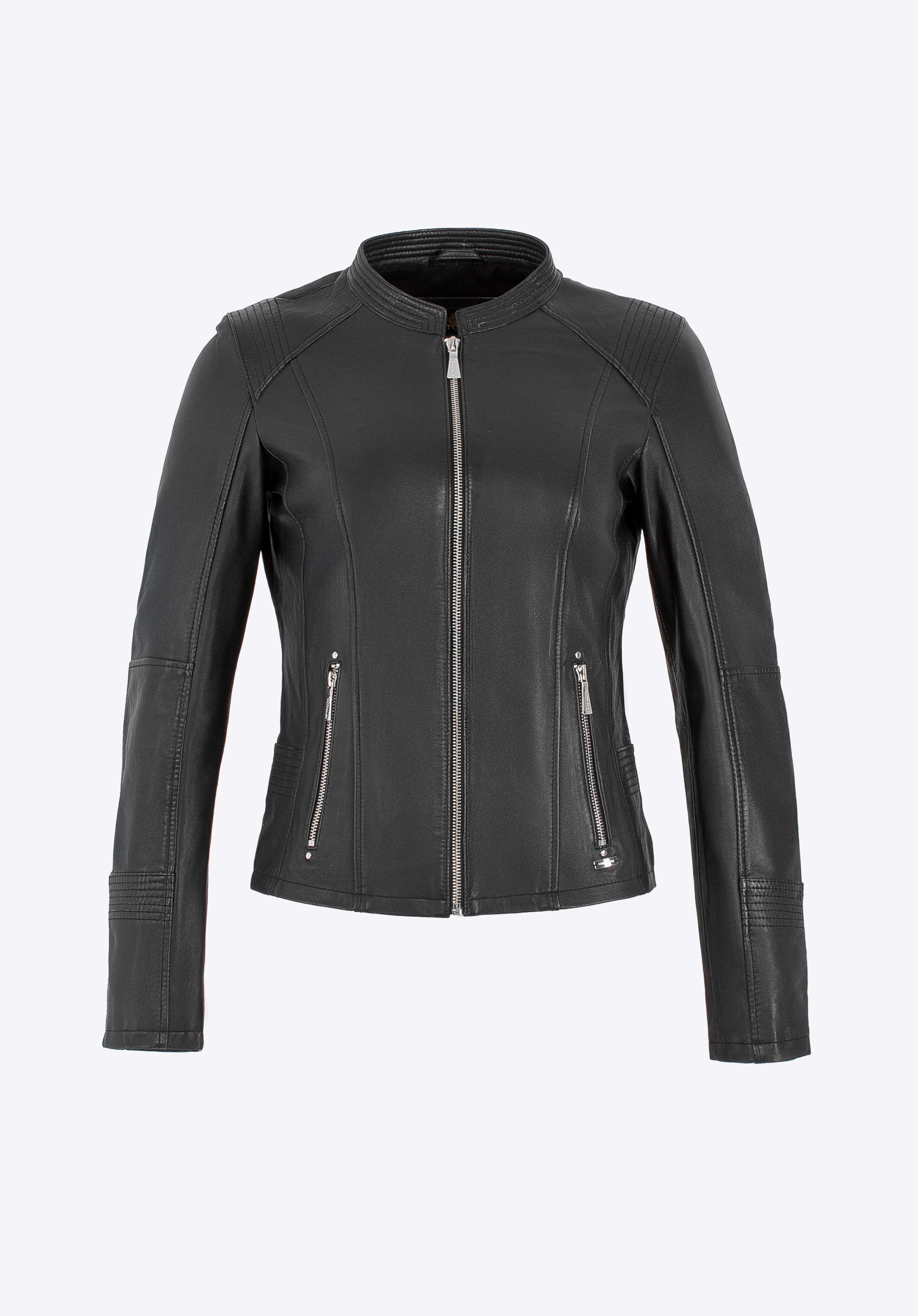 - Composition: Outer material: 100% lambskin; lining: 100% cotton; sleeves: 100% polyester.