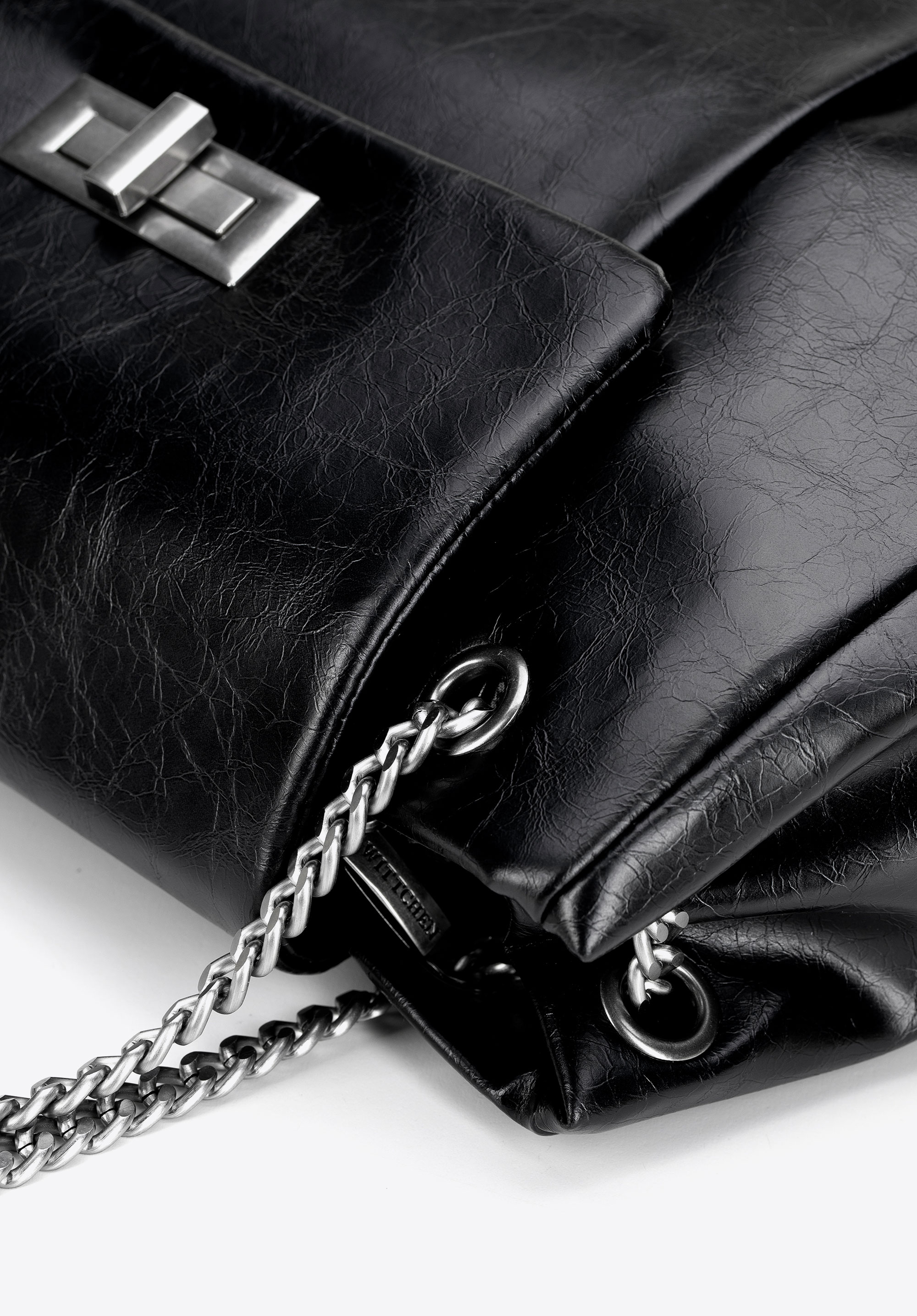 Discover this crossbody bag, which combines elegant design with a practical interior layout, perfect for everyday use. Made from faux leather, it boasts meticulous finish and subtle charm. A stylish clasp on the flap, paired with the front brand logo, gives the handbag a refined, premium appeal. The adjustable chain strap allows you to wear it halfway or long, adapting to your needs and style.