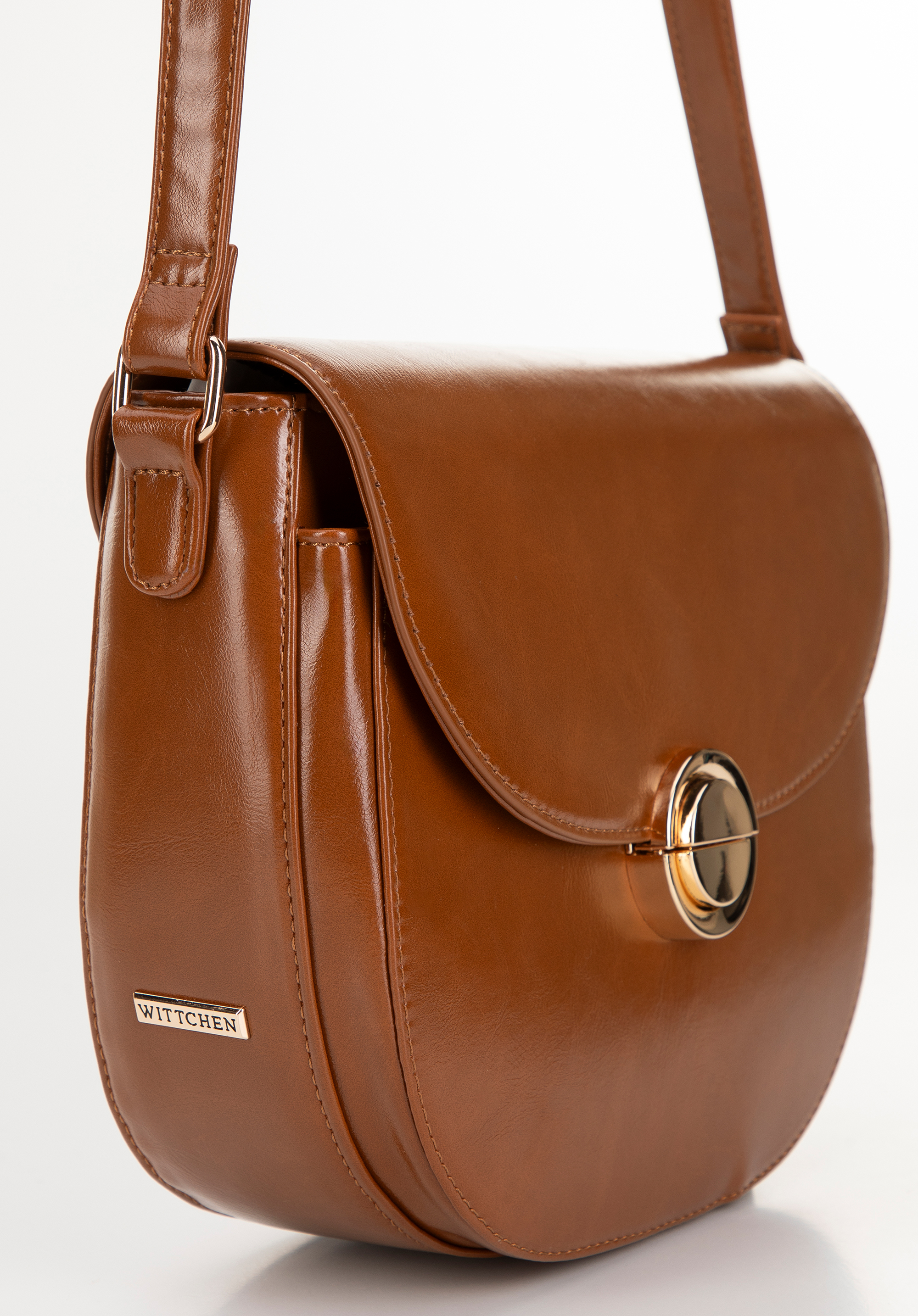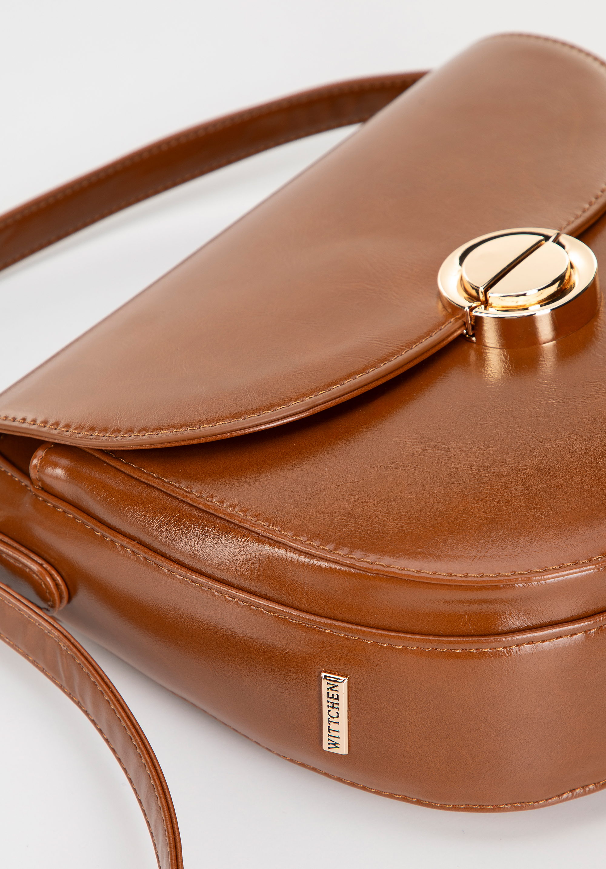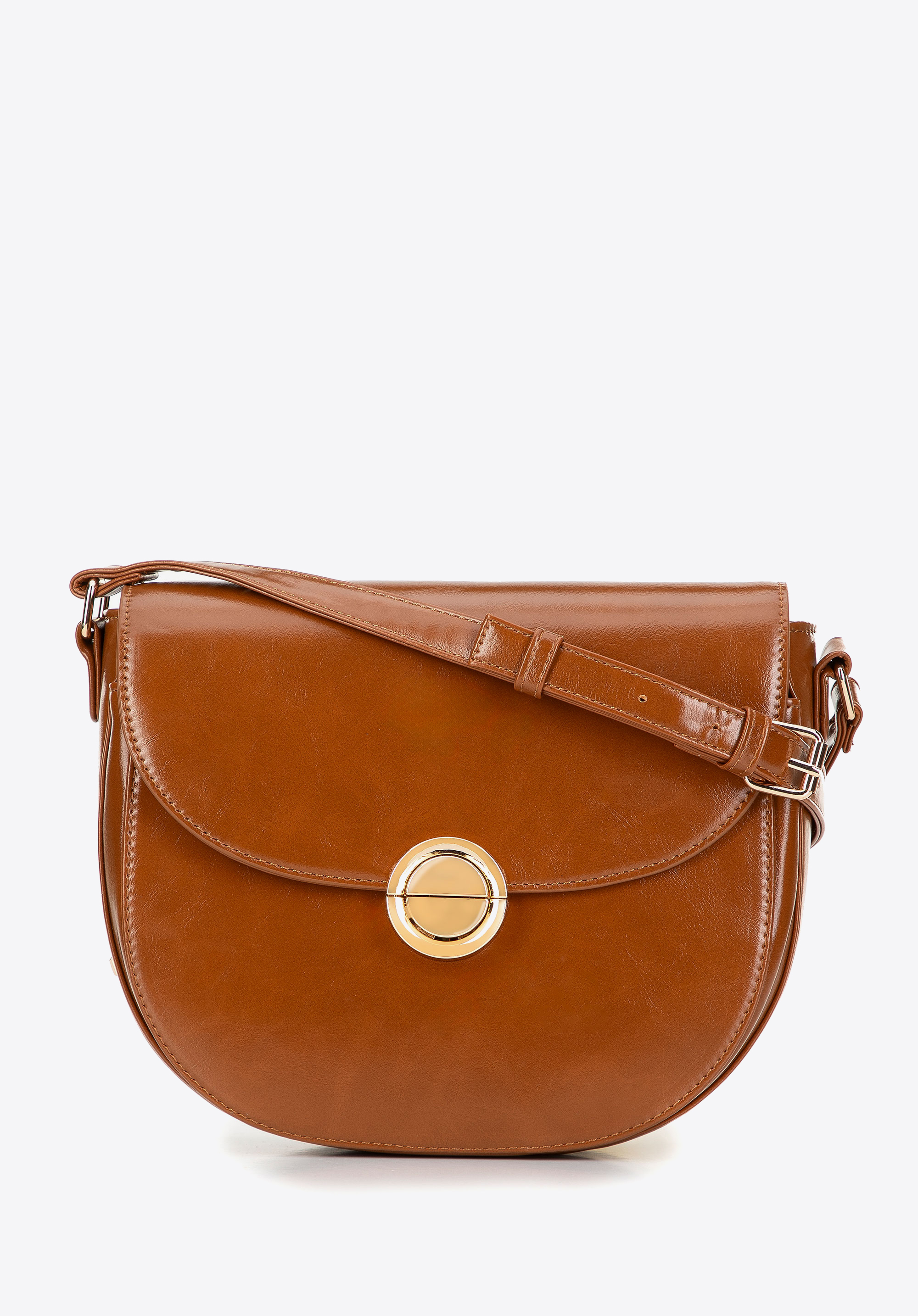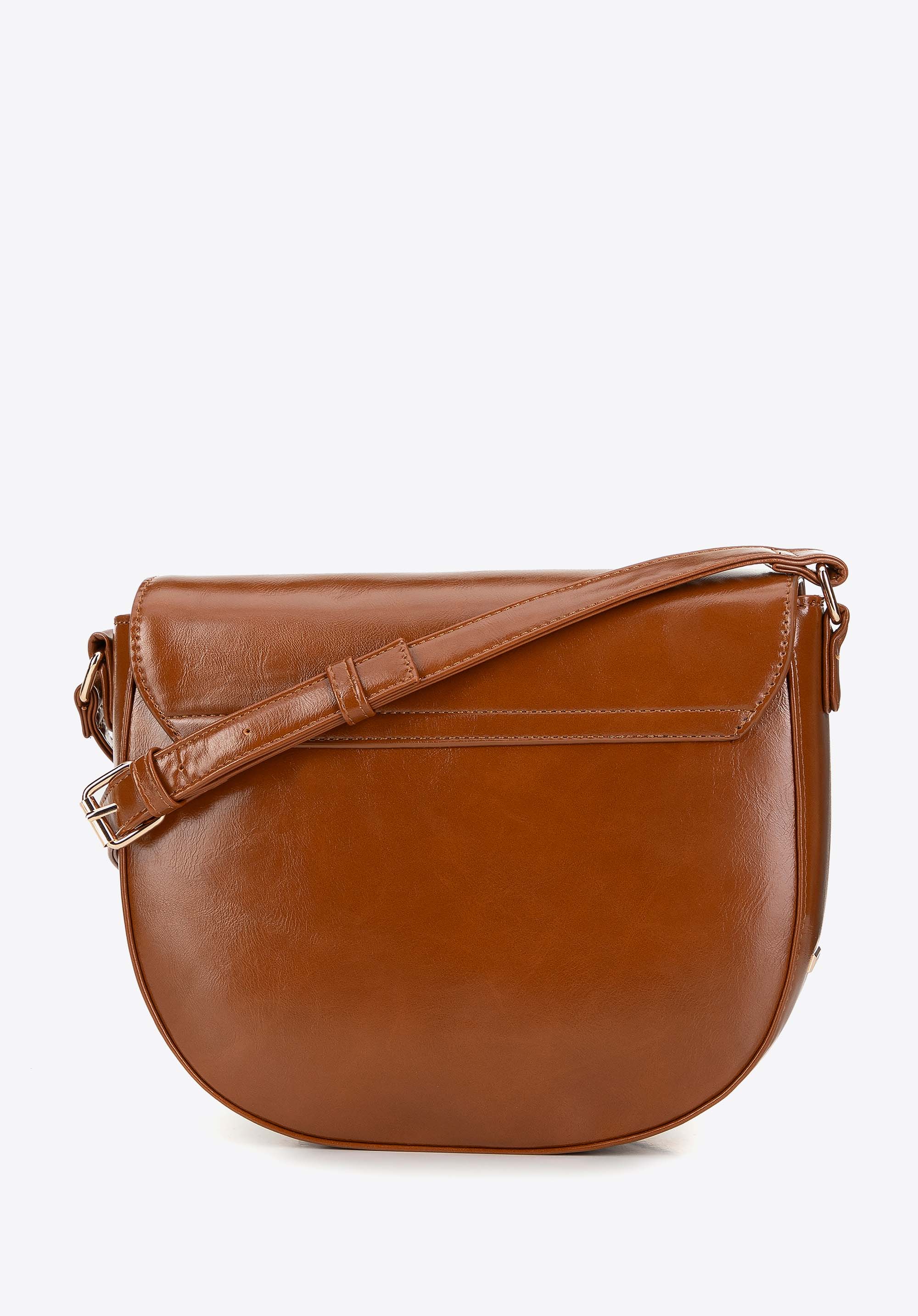 This women's saddle bag made of faux leather is a must-have in every fashionable wardrobe. Its round shape and rigid style combine style with comfort, creating the perfect accessory for everyday use and special occasions.