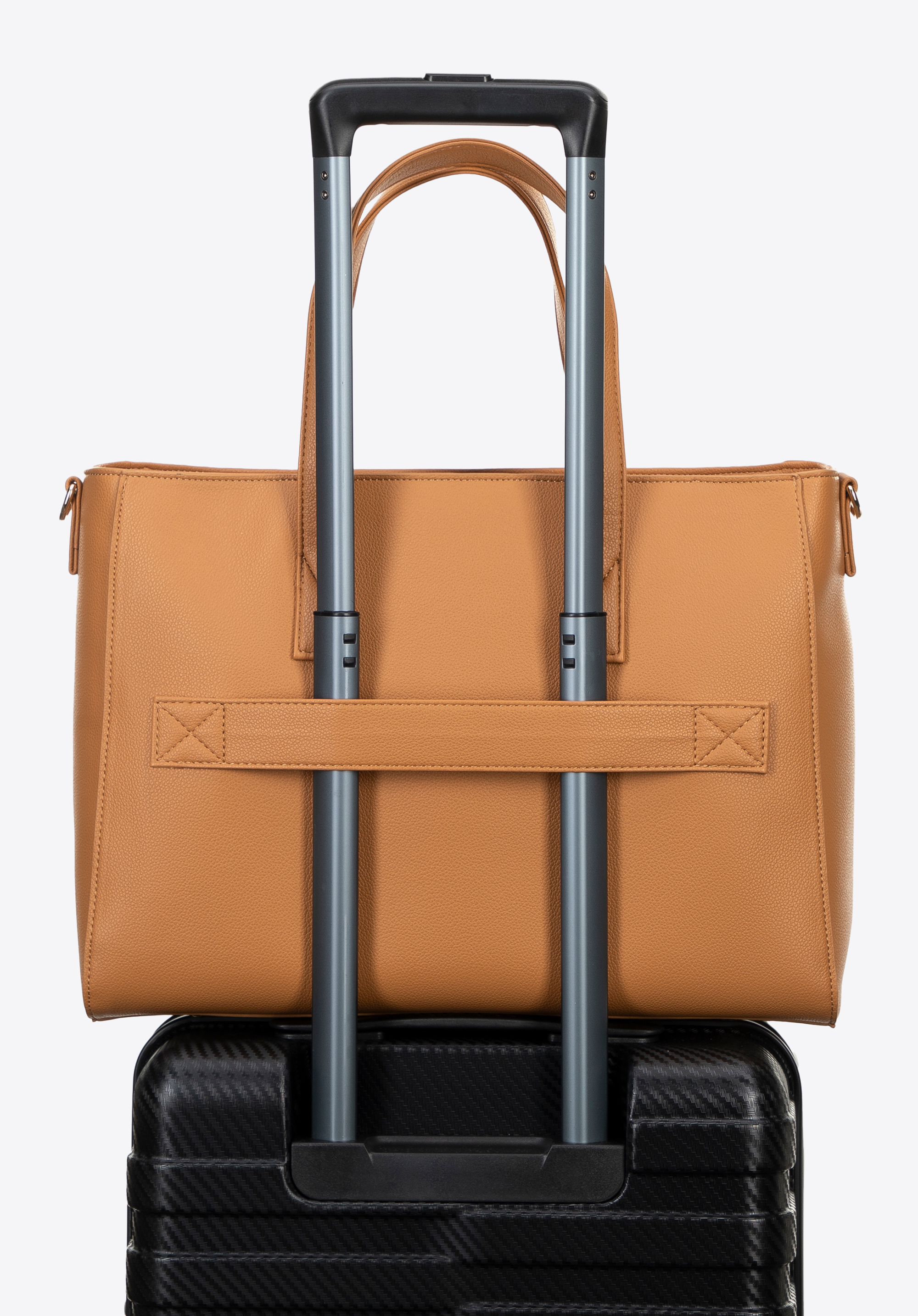 - Luggage strap on the back: Easily attaches to your suitcase’s telescopic handle.