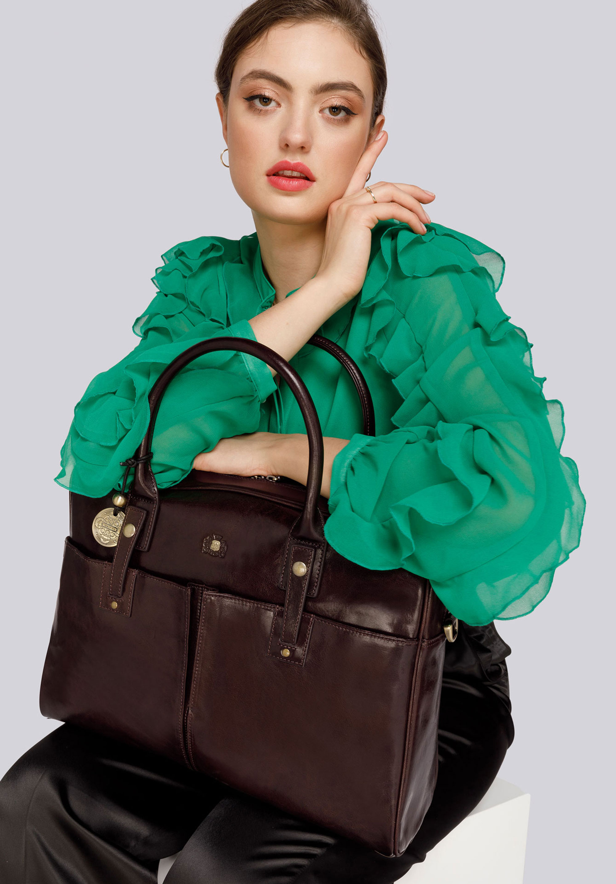 This exceptionally elegant yet spacious and functional handbag is crafted from natural leather. A refined design that can easily replace a briefcase, it is a perfect choice for stylish businesswomen.