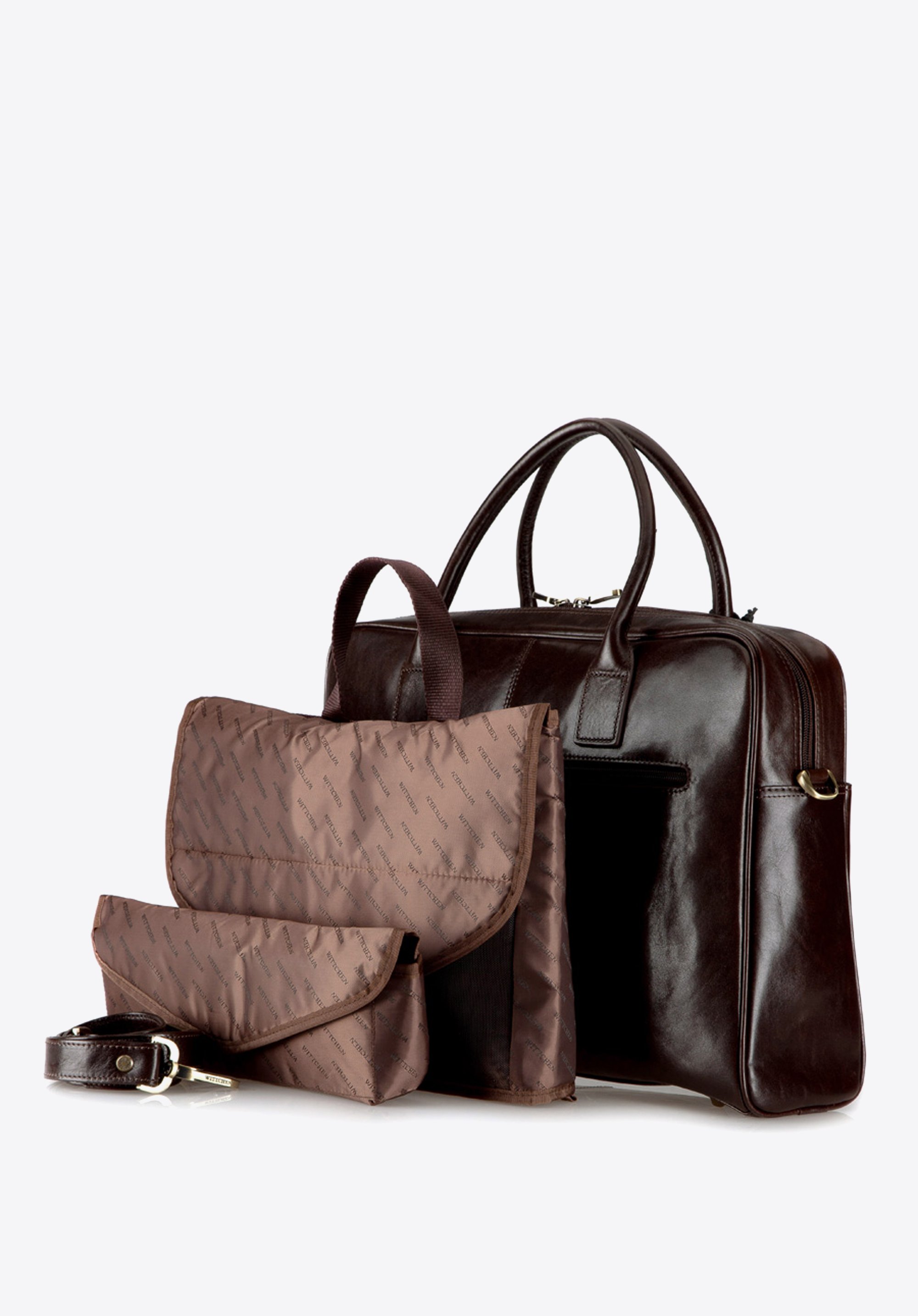 includes an additional laptop sleeve (maximum dimensions: 32 x 24 x 5 cm) and a cosmetic pouch (26 x 11 x 4 cm).
