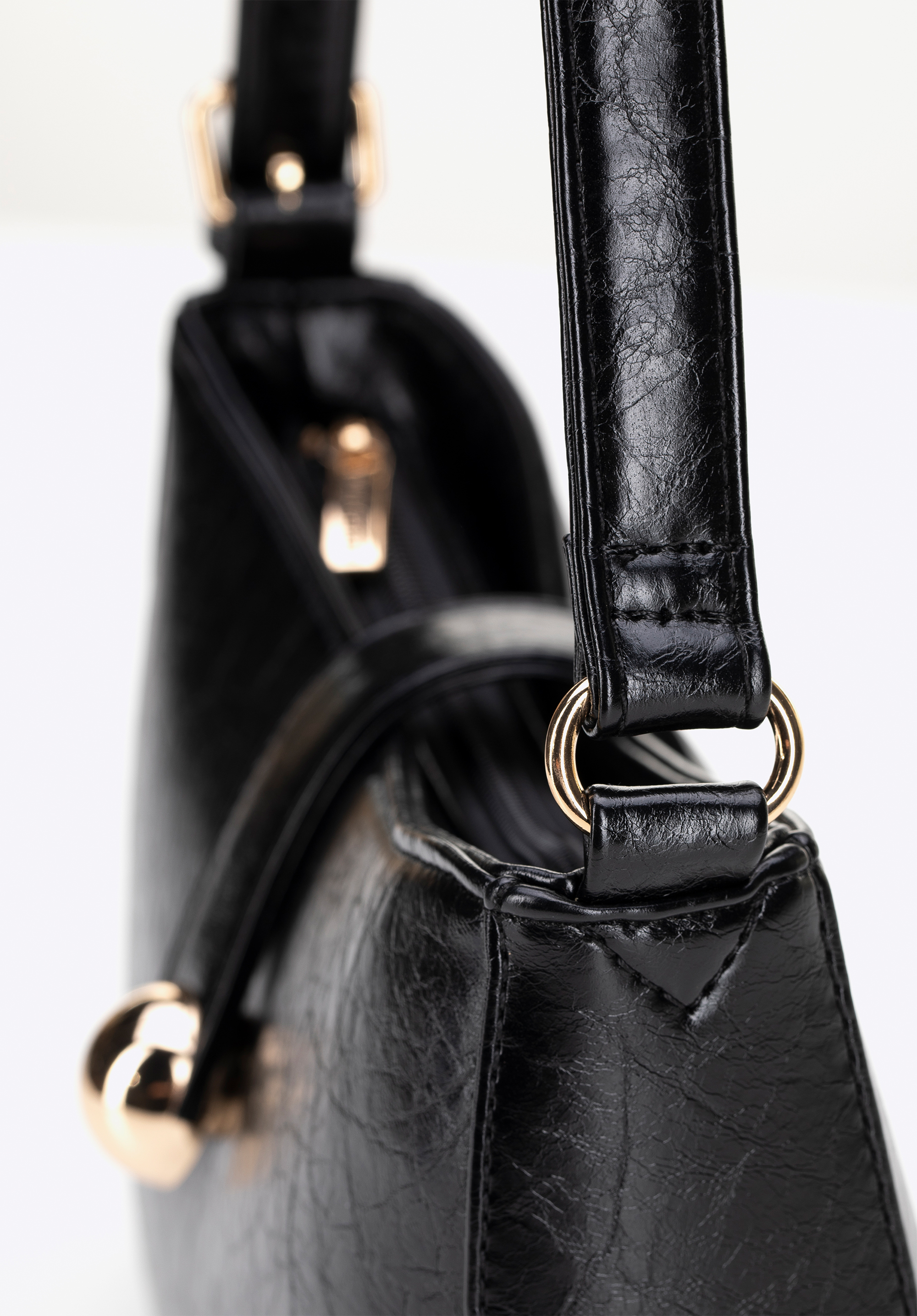 - Composition: 100% faux leather; lining: 100% polyester.