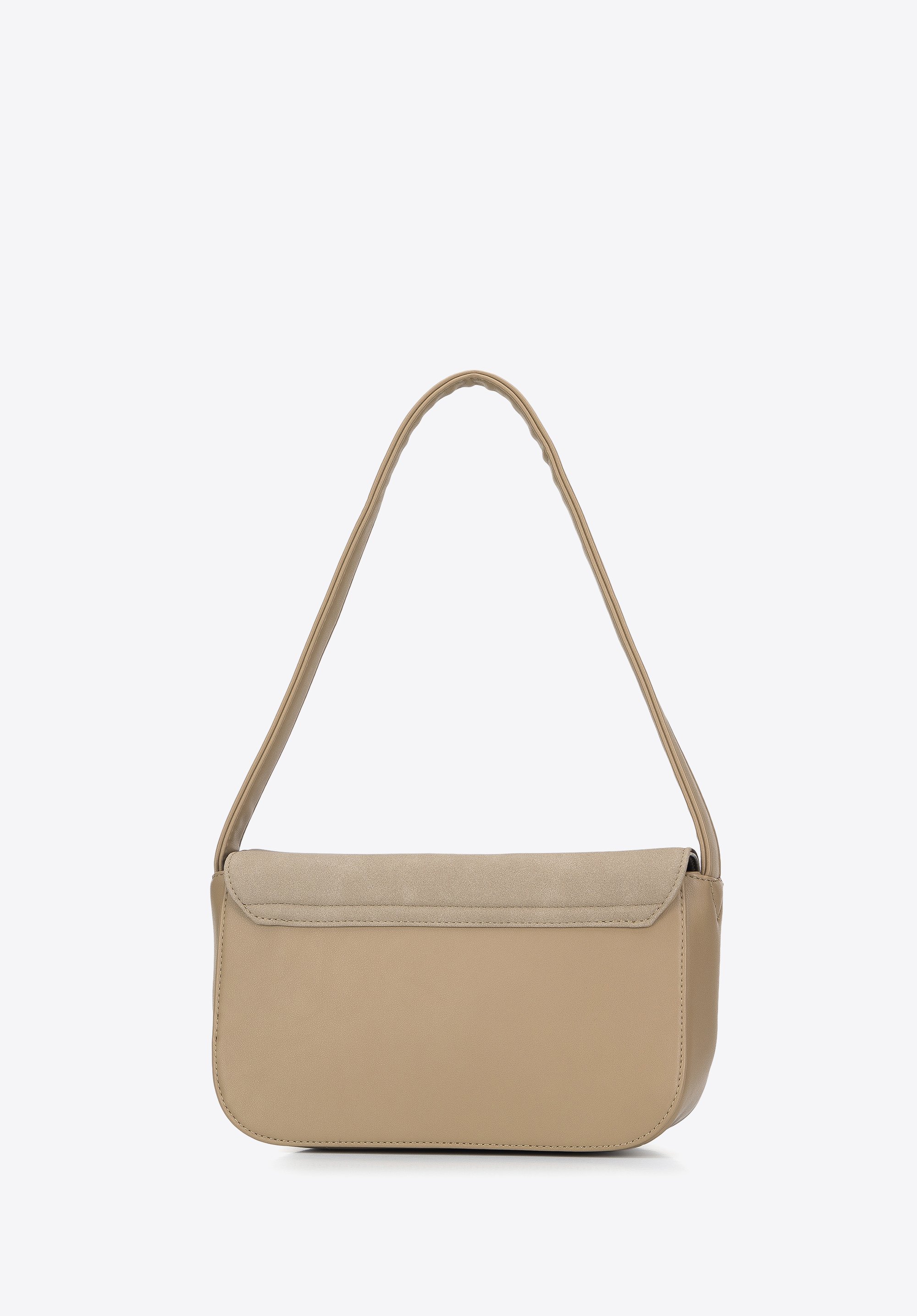 This sophisticated handbag is great for everyday stylish outfitting. This flap bag is crafted from two types of faux leather: