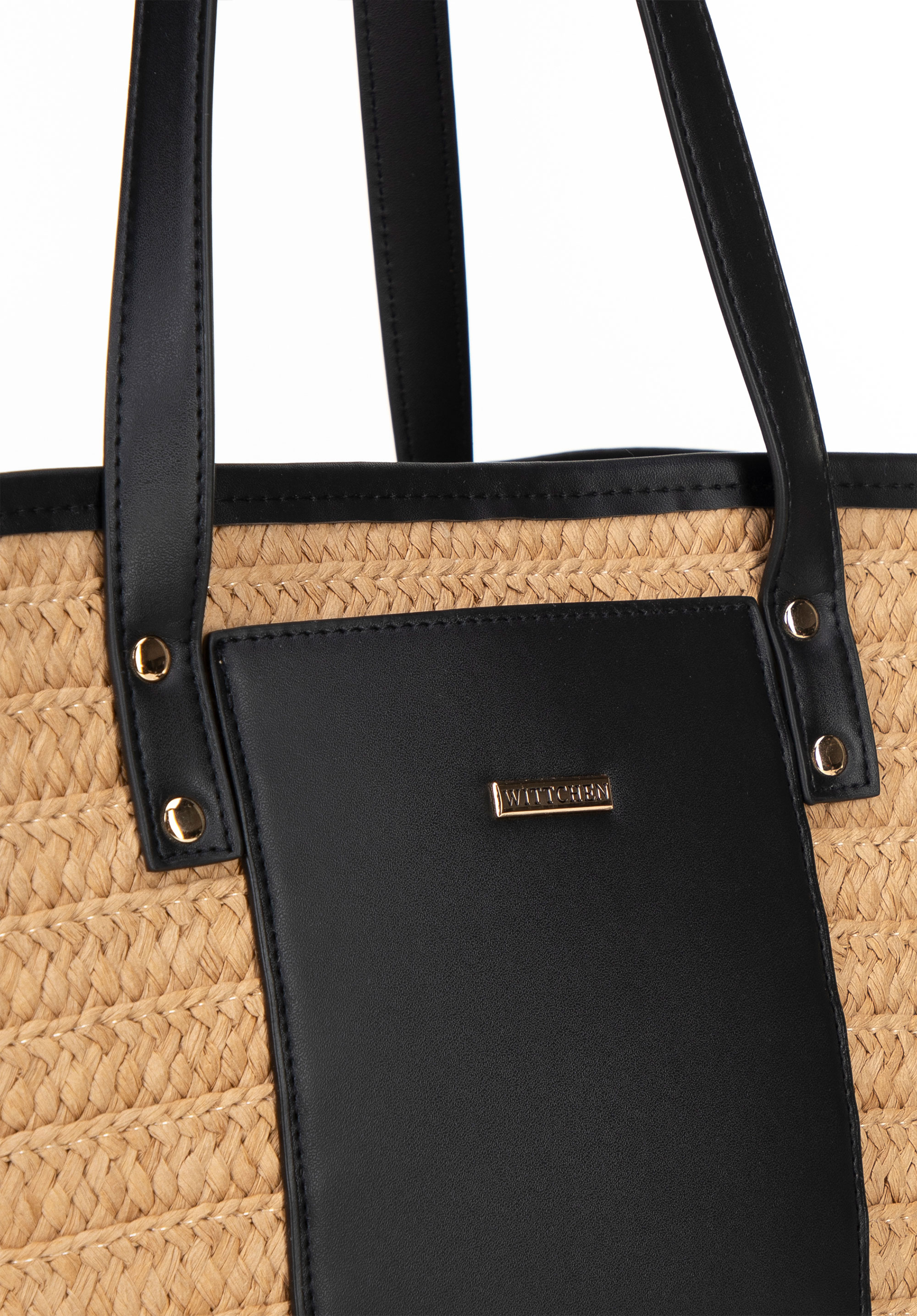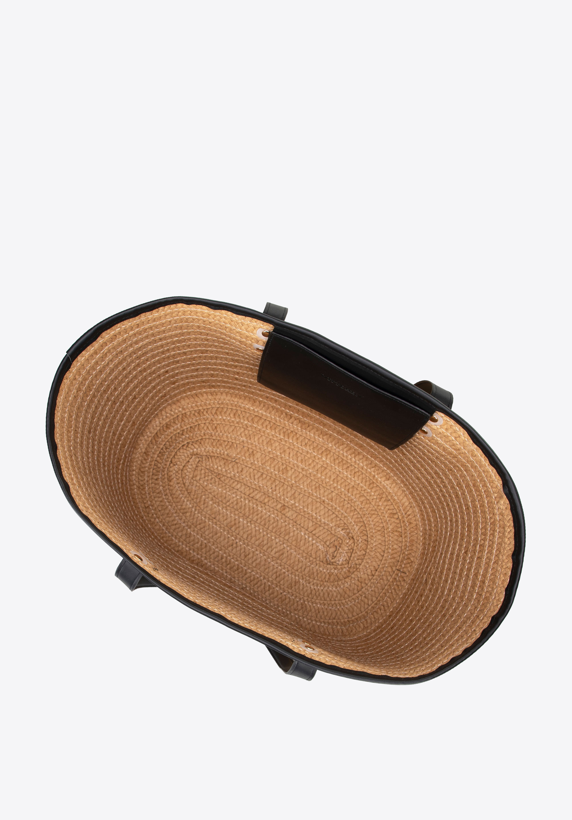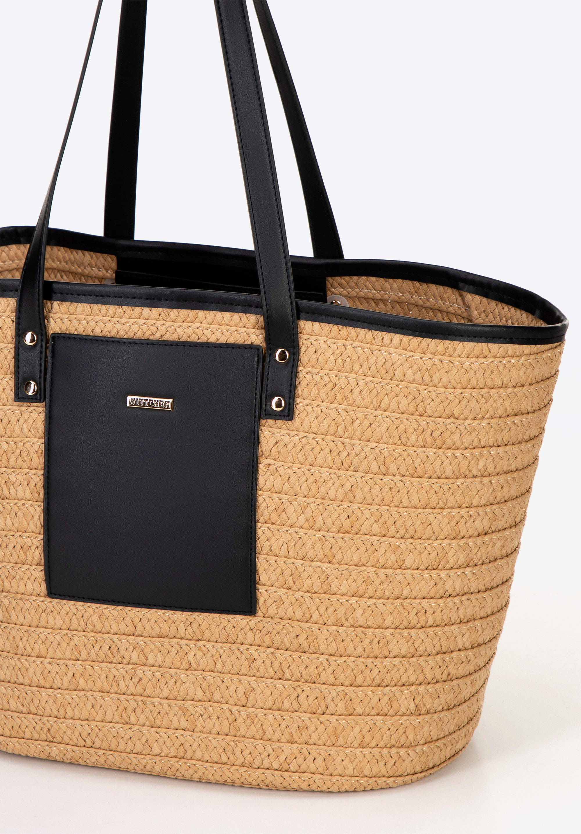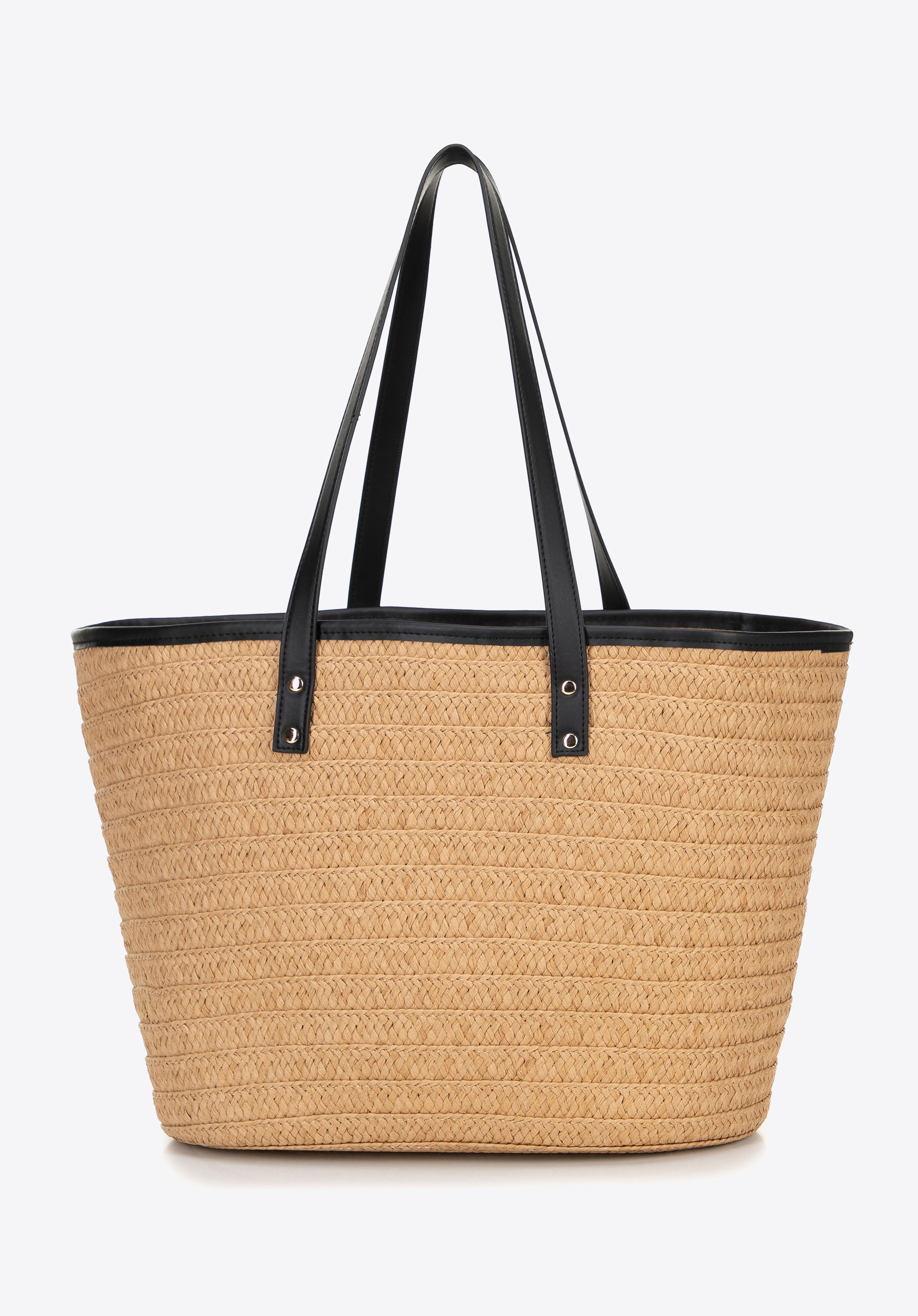 - Composition: 100% paper straw; lining: 100% polyester; handles and inserts: faux leather.