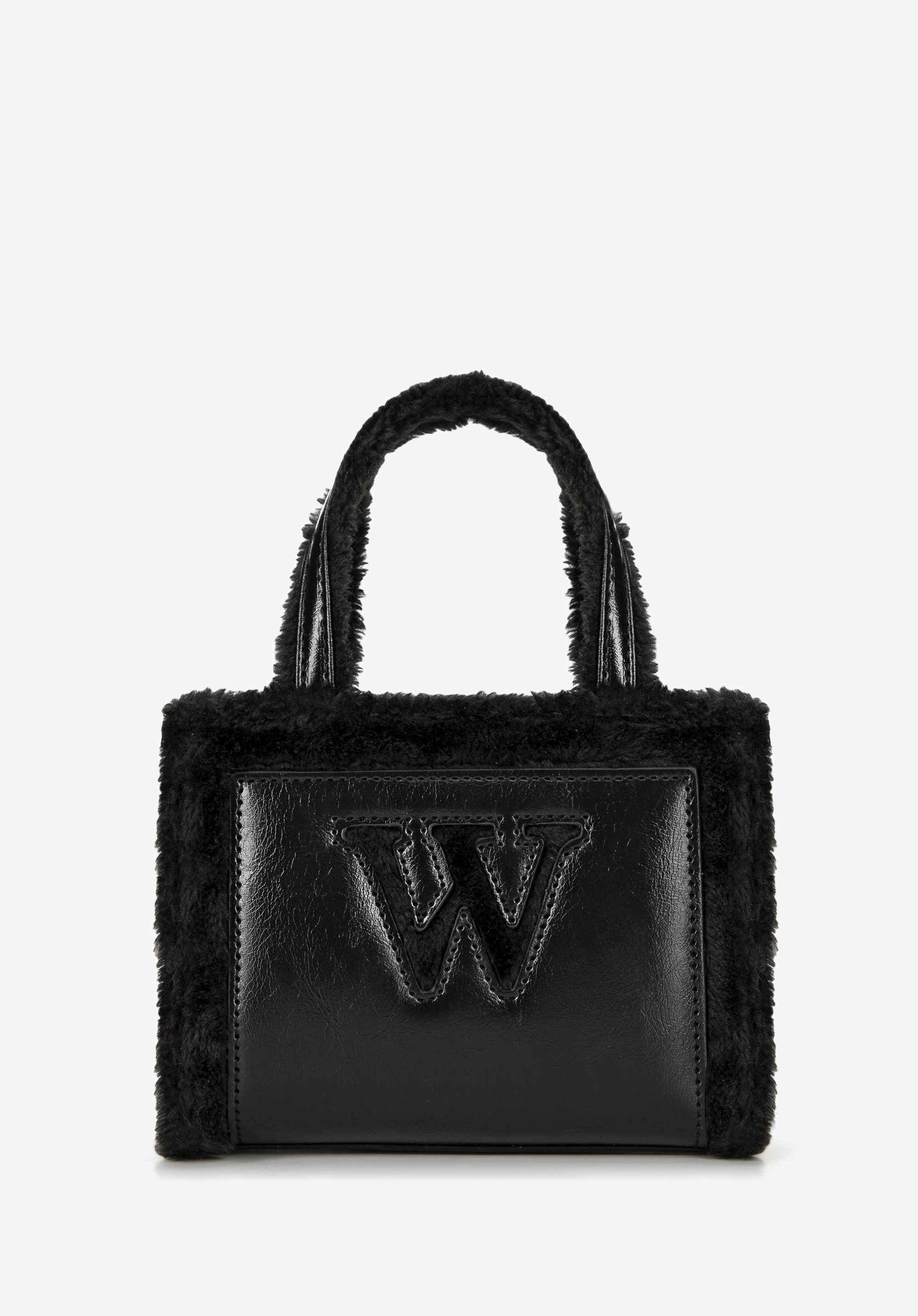 Introducing our charming women’s tote bag, a perfect blend of elegance and functionality. Made from high-quality faux leather, this mini handbag boasts a unique character thanks to the careful faux fur trimming along the edges and handles. The front of the tote bag is adorned with an elegant fur 'W' letter and a subtle designer logo on the side, emphasising its distinctive style.