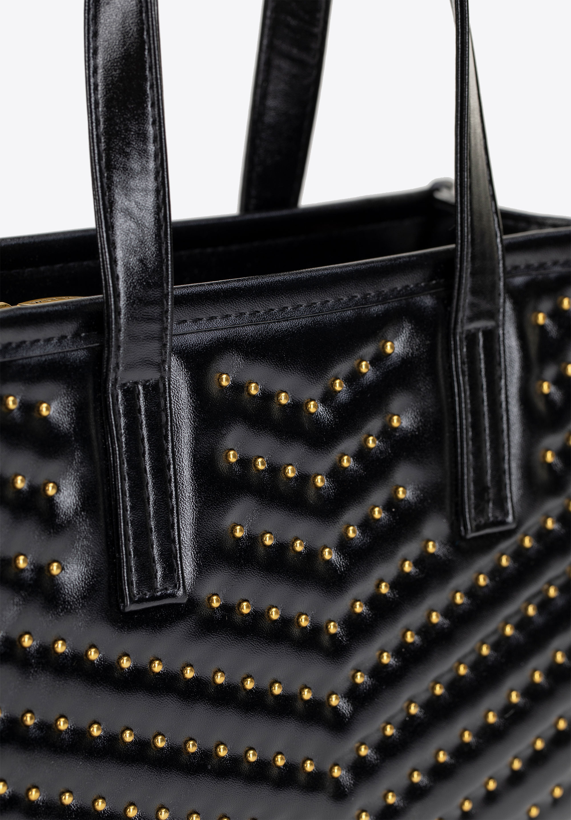 - Stylish accents: Classic tote shape with decorative studs and subtle front logo draws attention and adds a contemporary character.