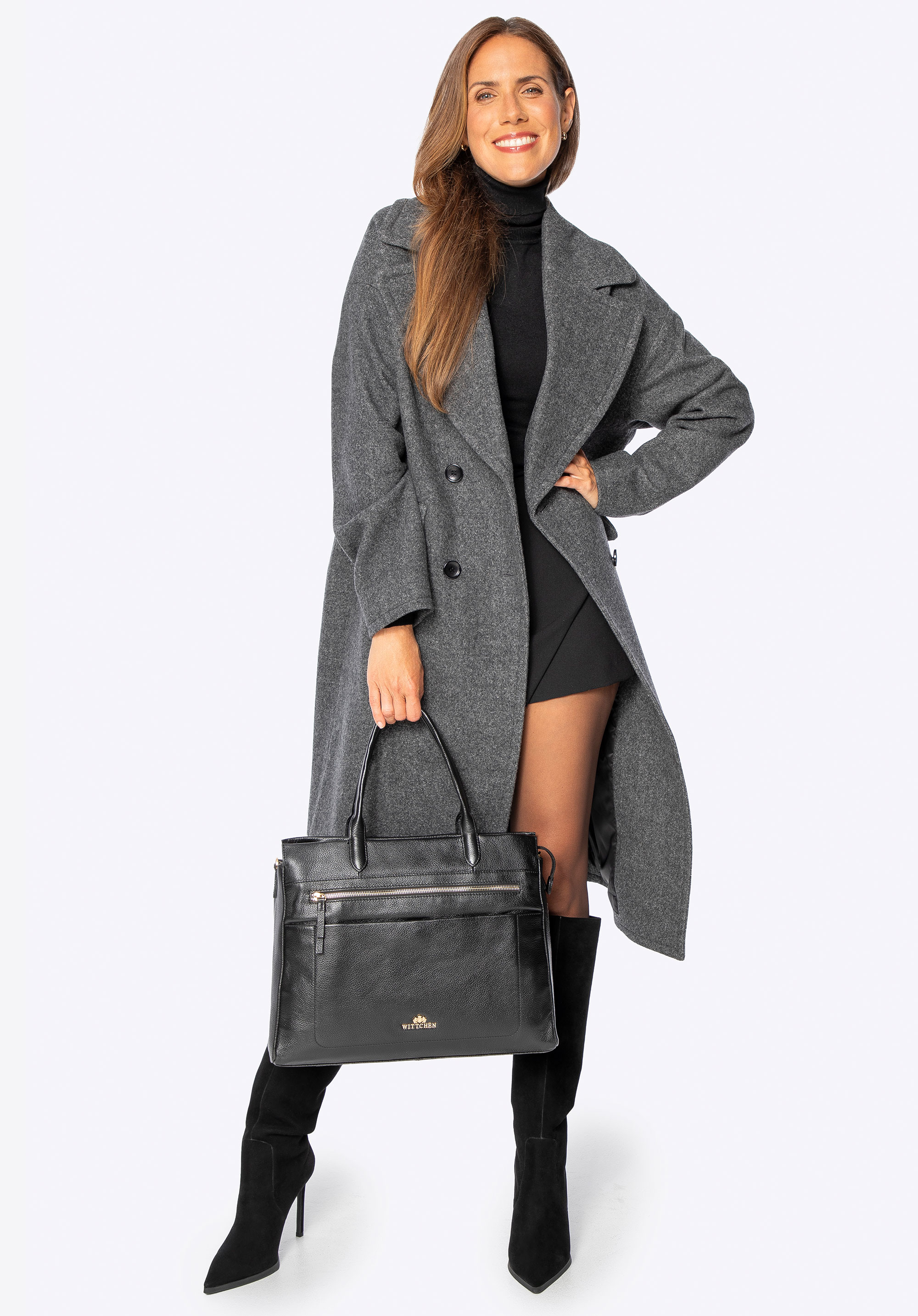 Our advice: Pair it with long boots or heels, a simple turtleneck, and a large shopper bag. The oversized cut works perfectly with layered outfits – jumpers, cardigans, and blazers won’t restrict movement.