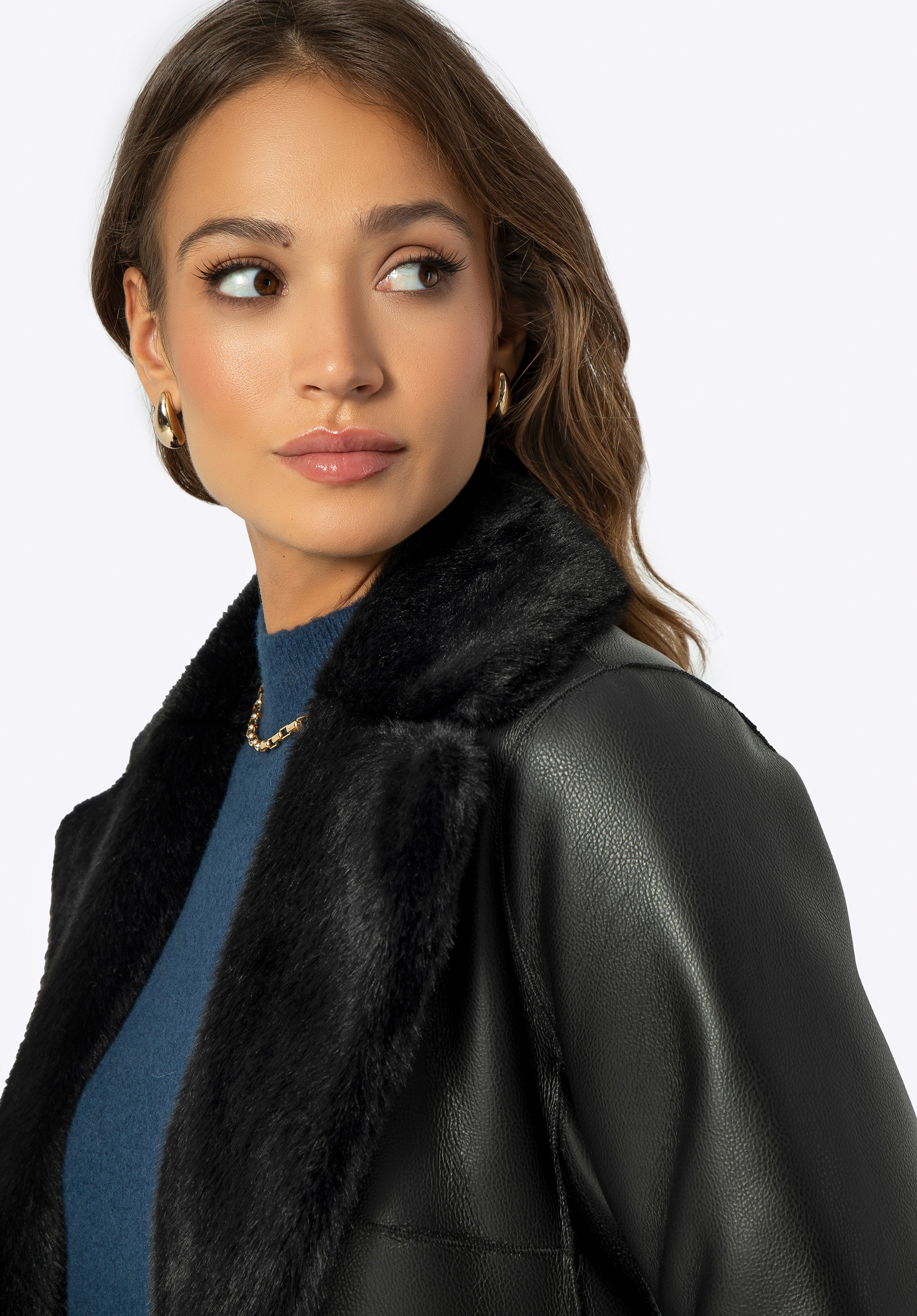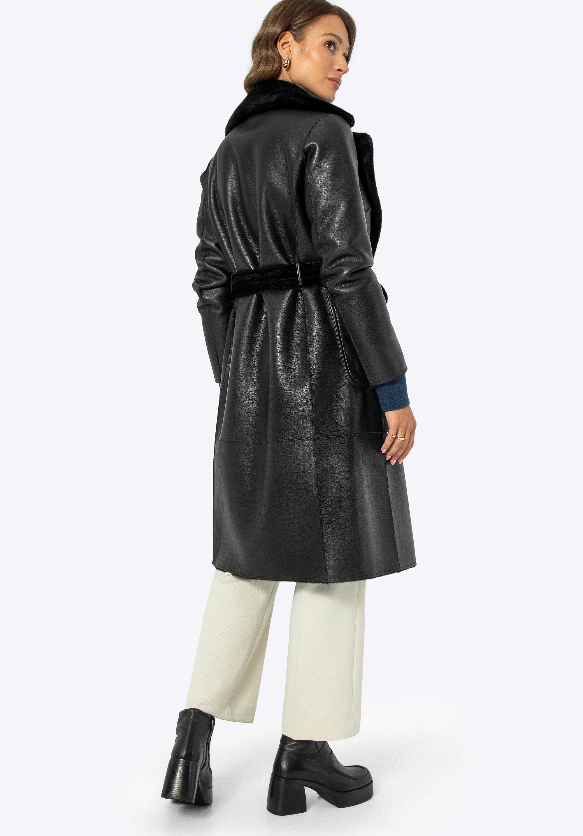 - Functionality: Reversible coat: luxurious faux fur on one side, elegant faux leather on the other.
