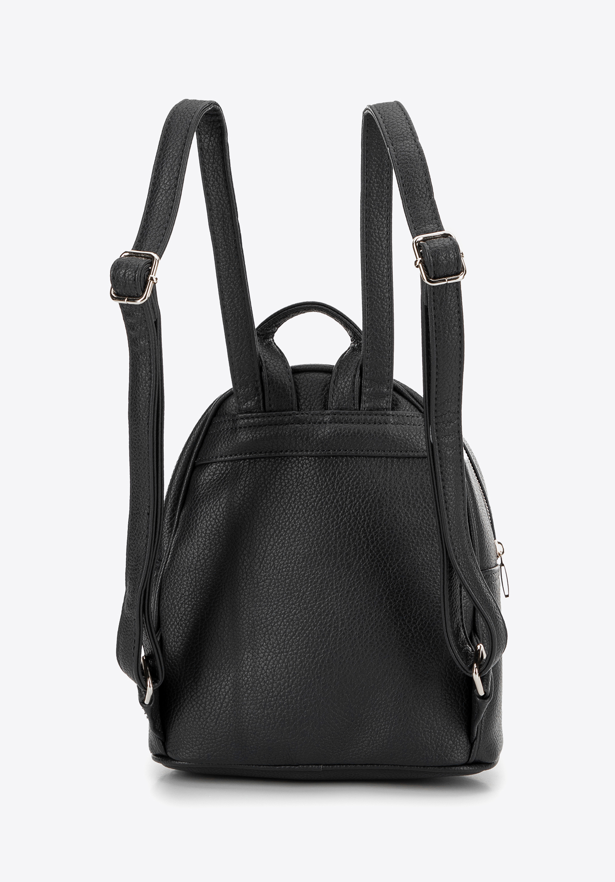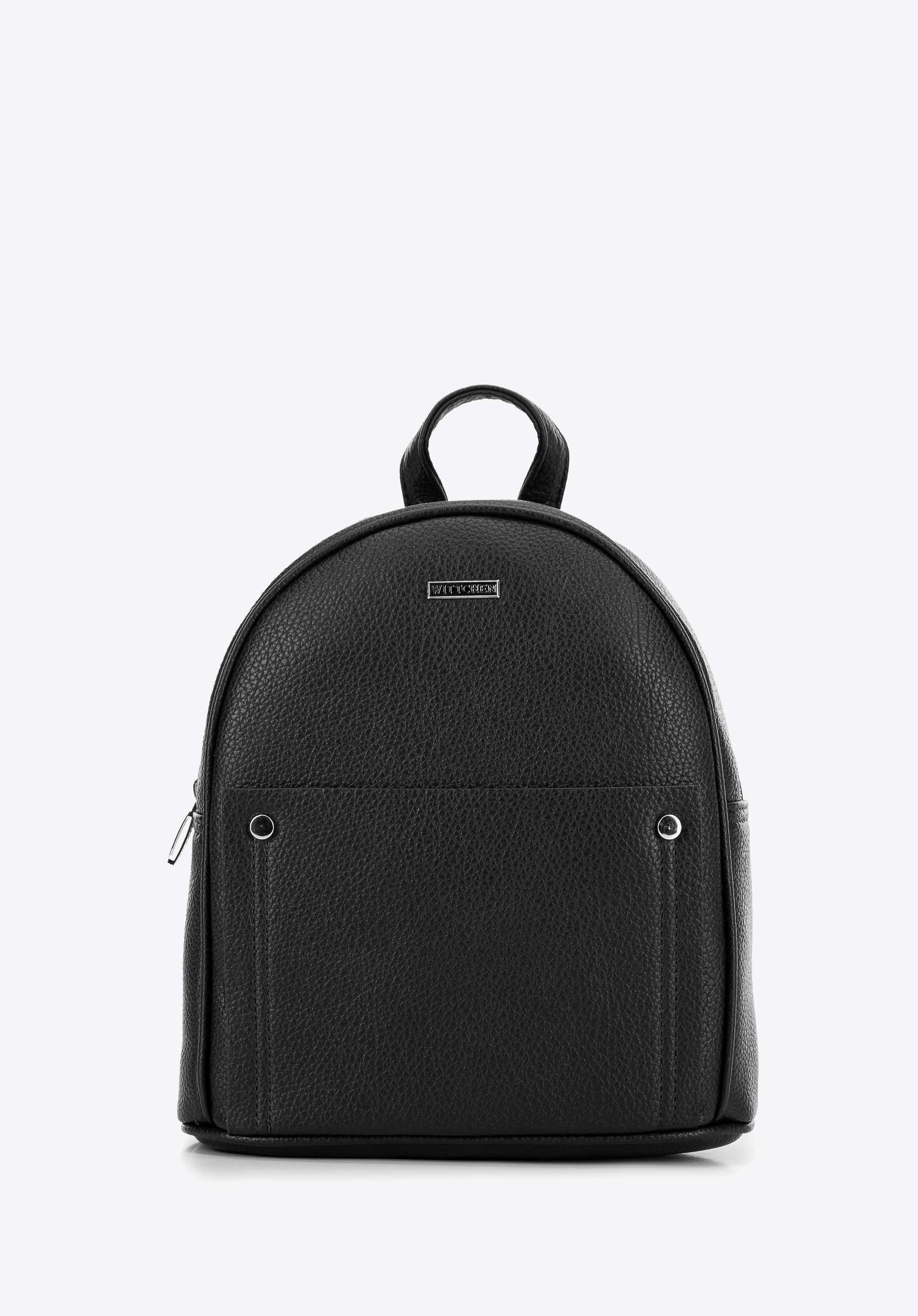 Our women's backpack made of faux leather is the epitome of style and functionality, attracting attention and meeting the expectations of modern women. The subtle logo on the front adds a touch of style, highlighting its unique character. The front of the backpack features an open pocket adorned with stylish studs, enhancing its functionality while giving it a bold and modern look.