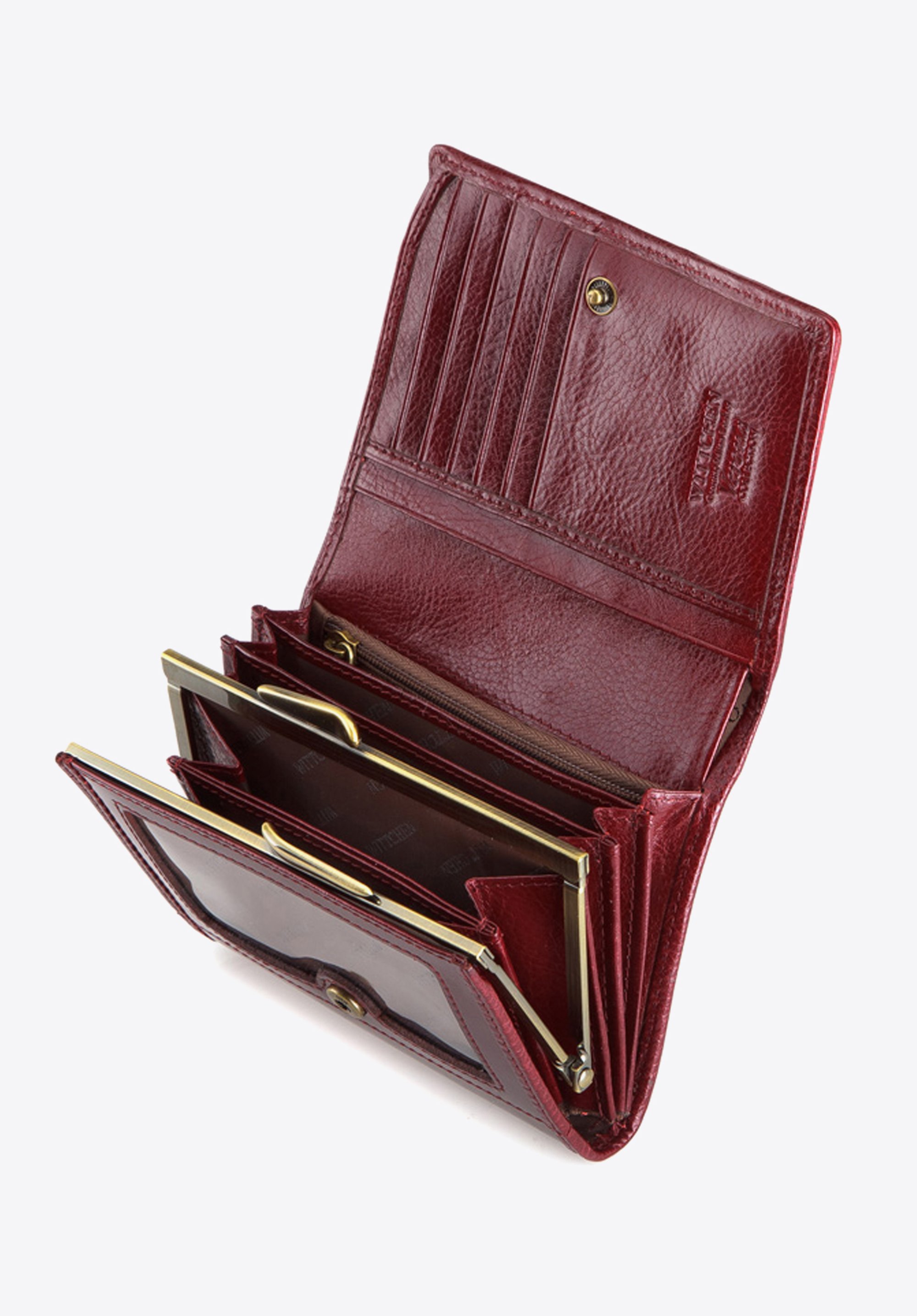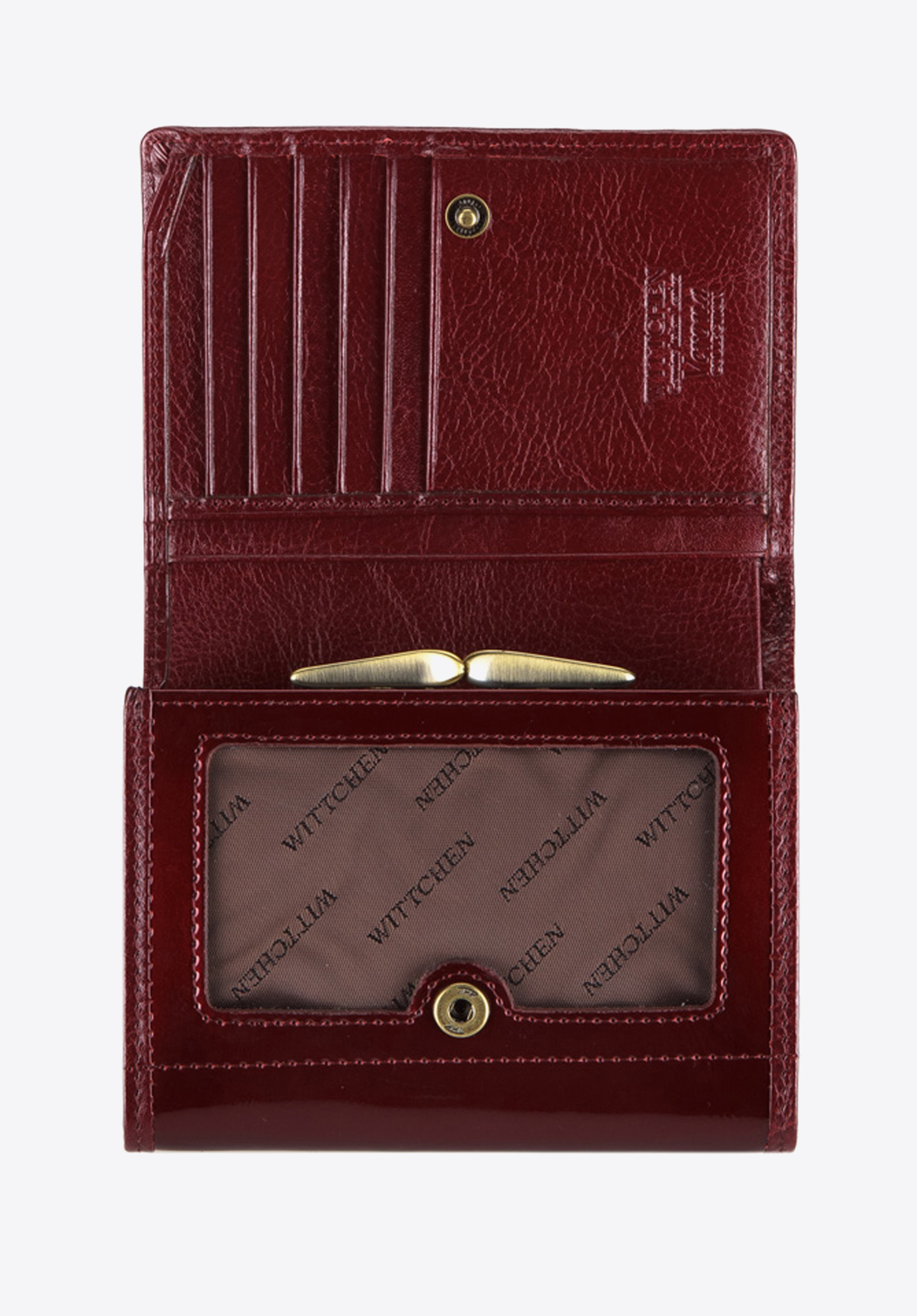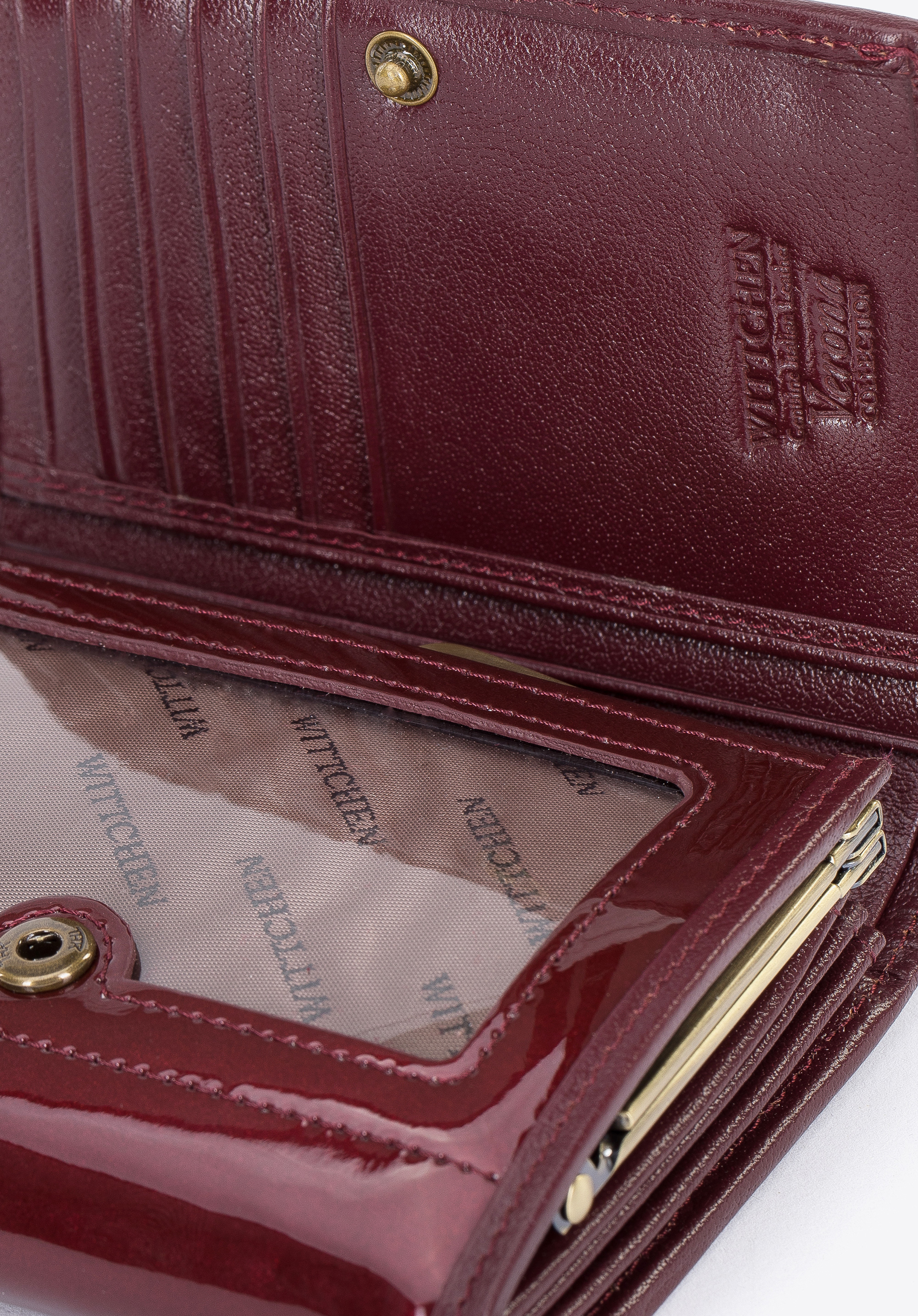 Meticulously handmade and attractively finished, a women’s small purse from theVerona collection. The exterior is handmade from attractive patent leather, while the interior and trim are handmade from classic grain leather. Carries a metal embellishment - the WITTCHEN coat of arms in the colour of old gold. Supplied in exclusive packaging which carries the WITTCHEN logo. This elegantly finished purse with a stylish design boasts many pockets and credit card slots.
