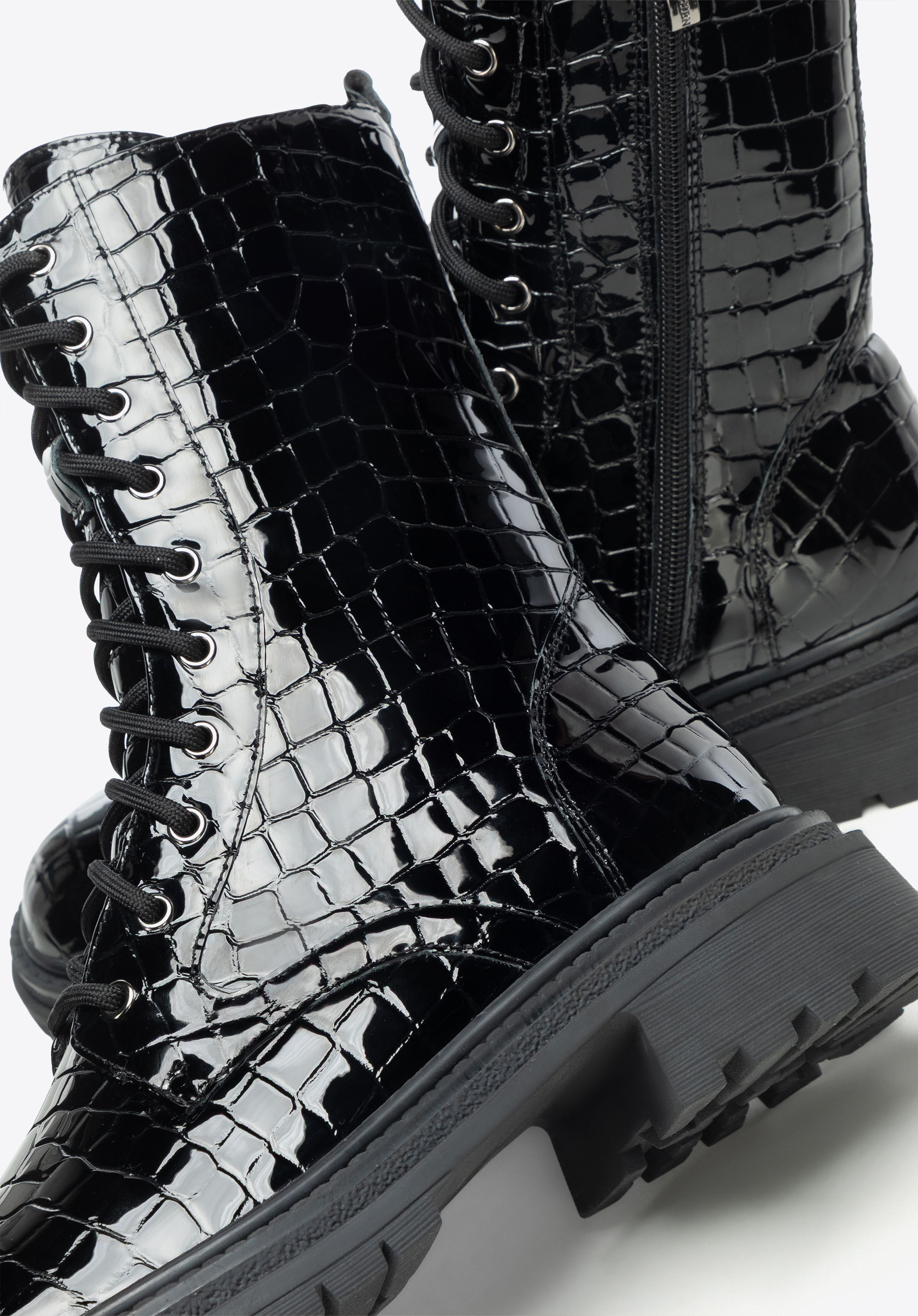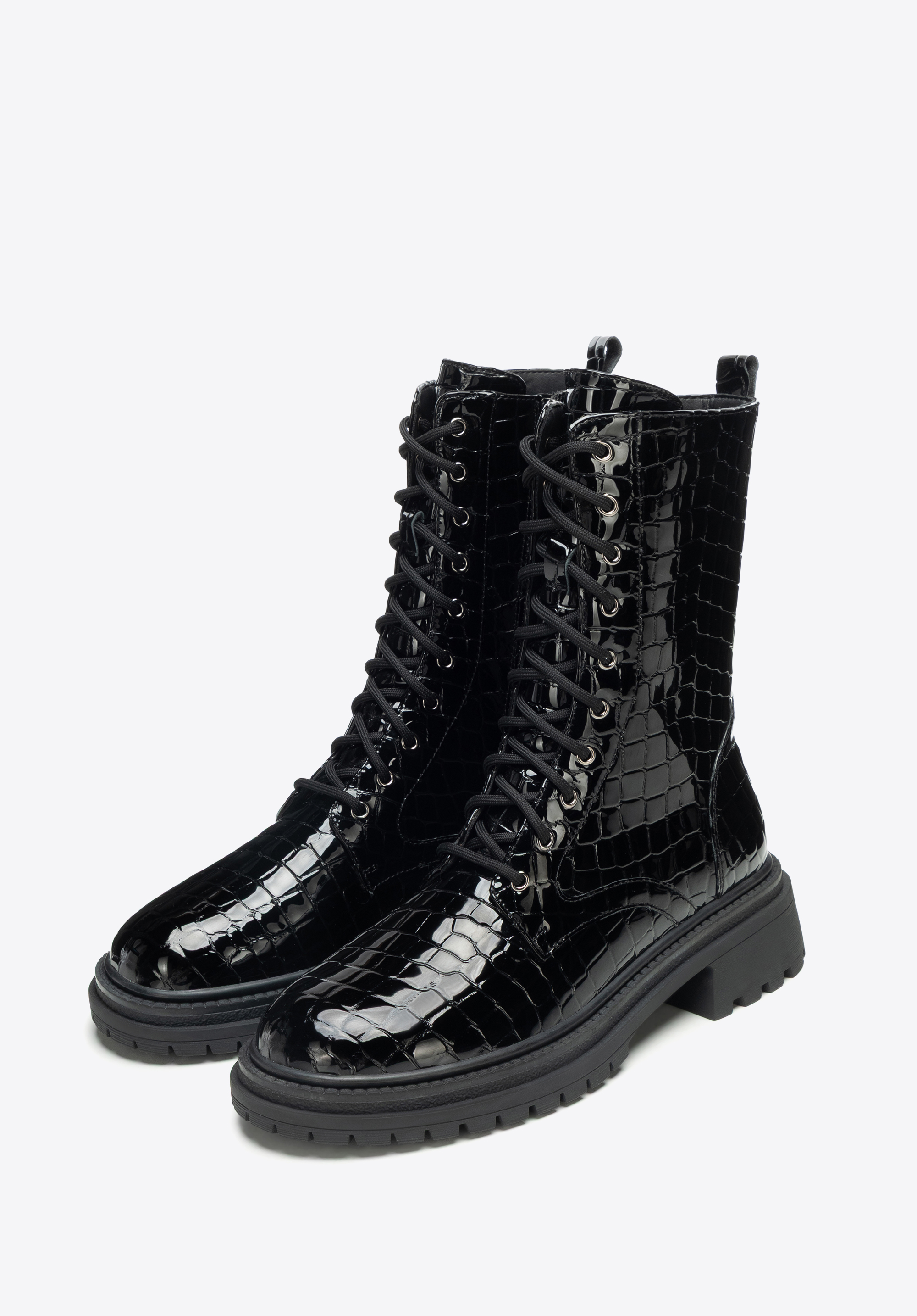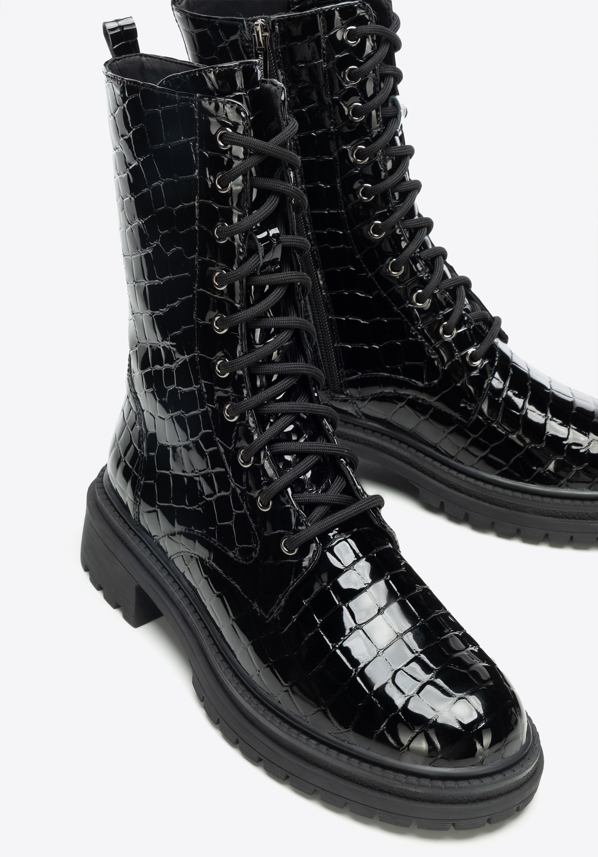 Women’s croco-effect combat boots – bold style and lasting comfort