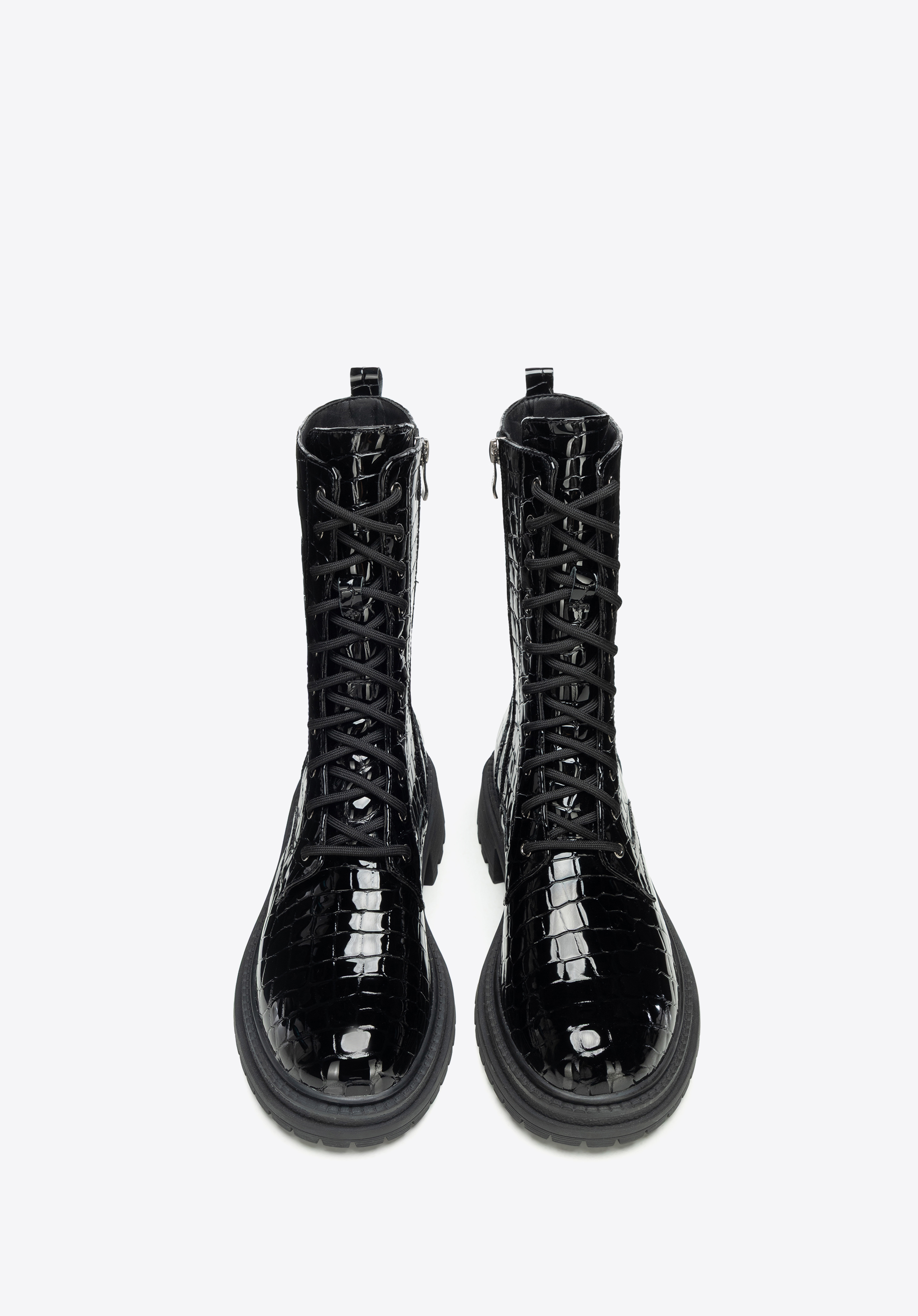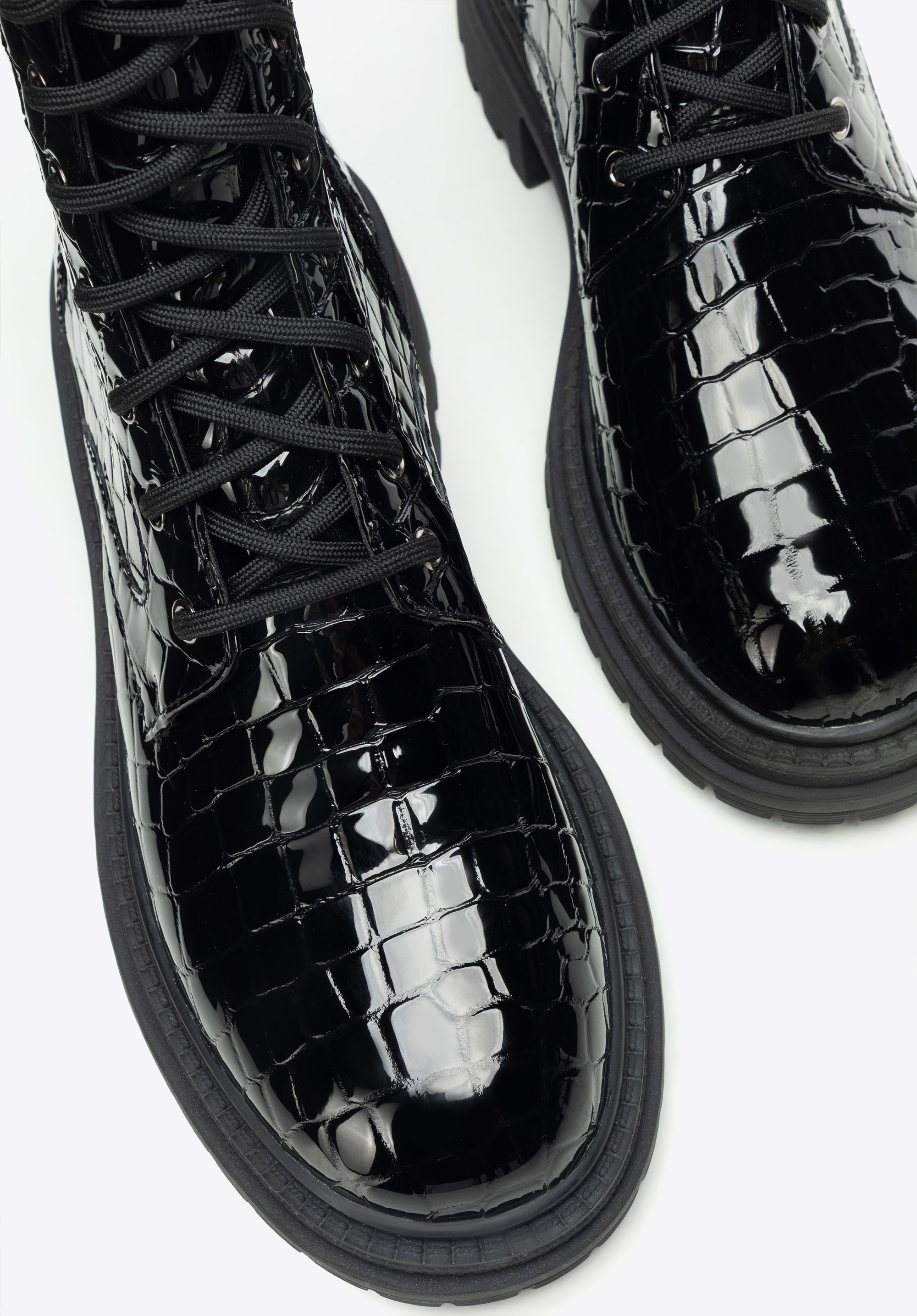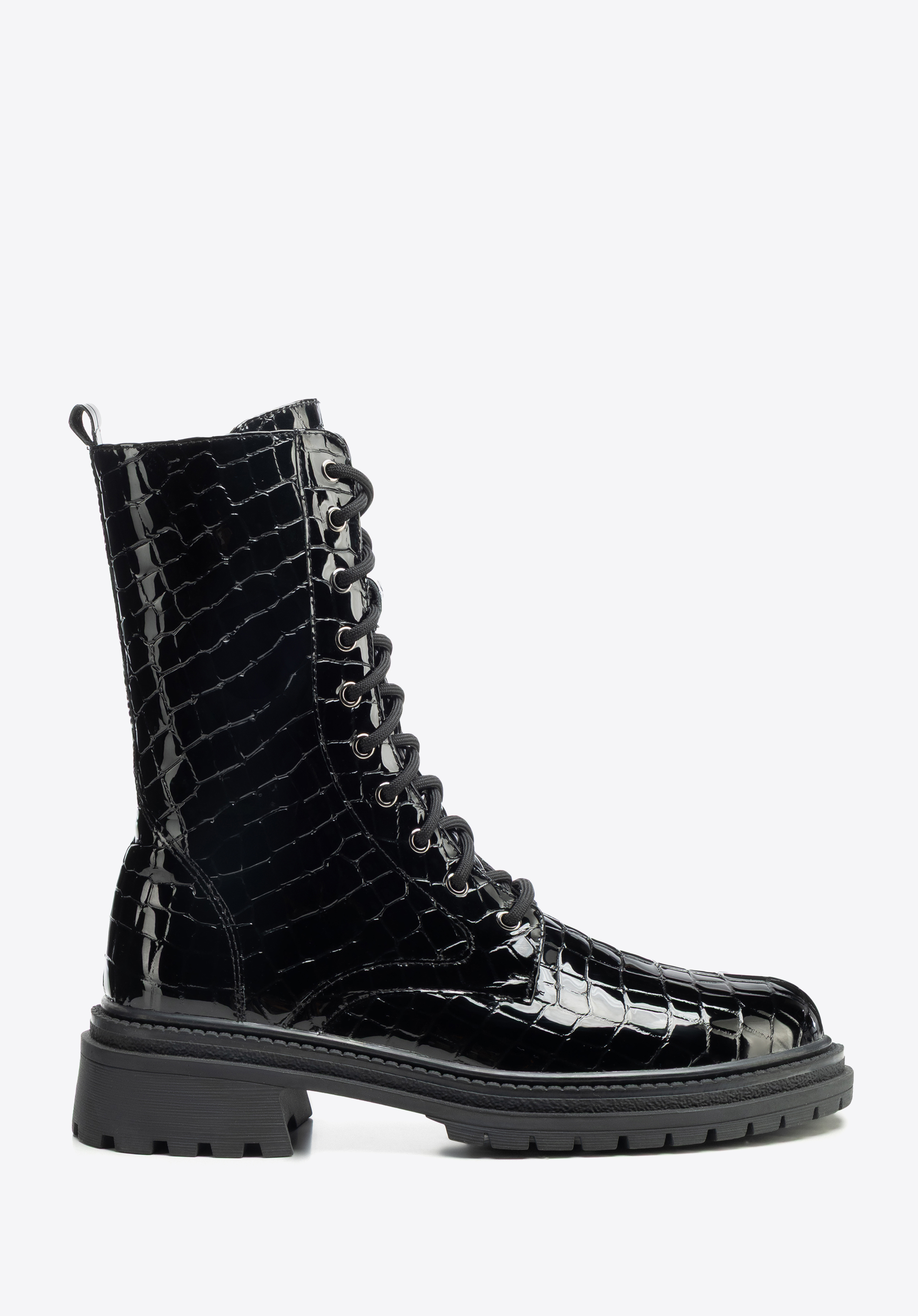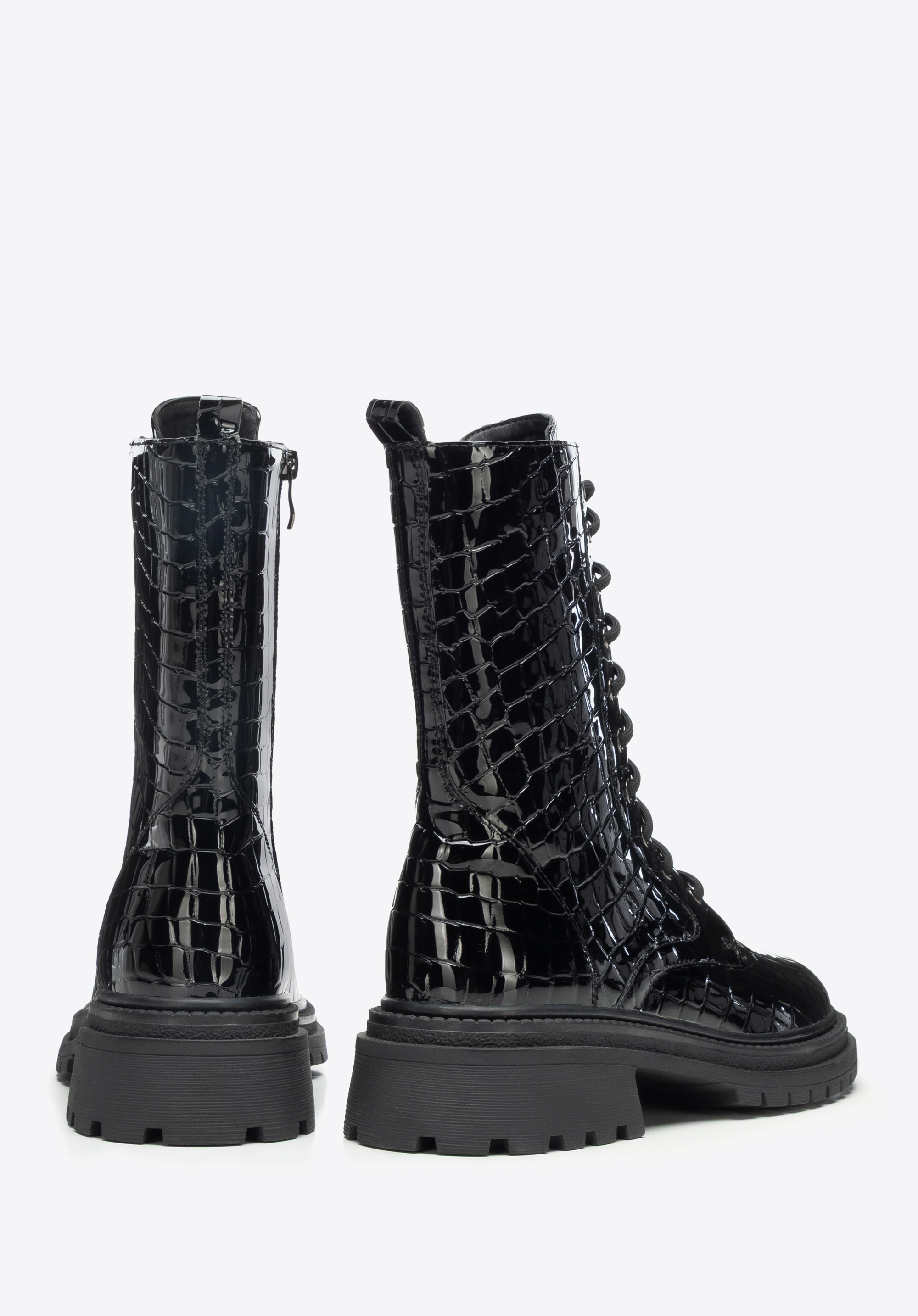 Women’s croco-effect combat boots – bold style and lasting comfort