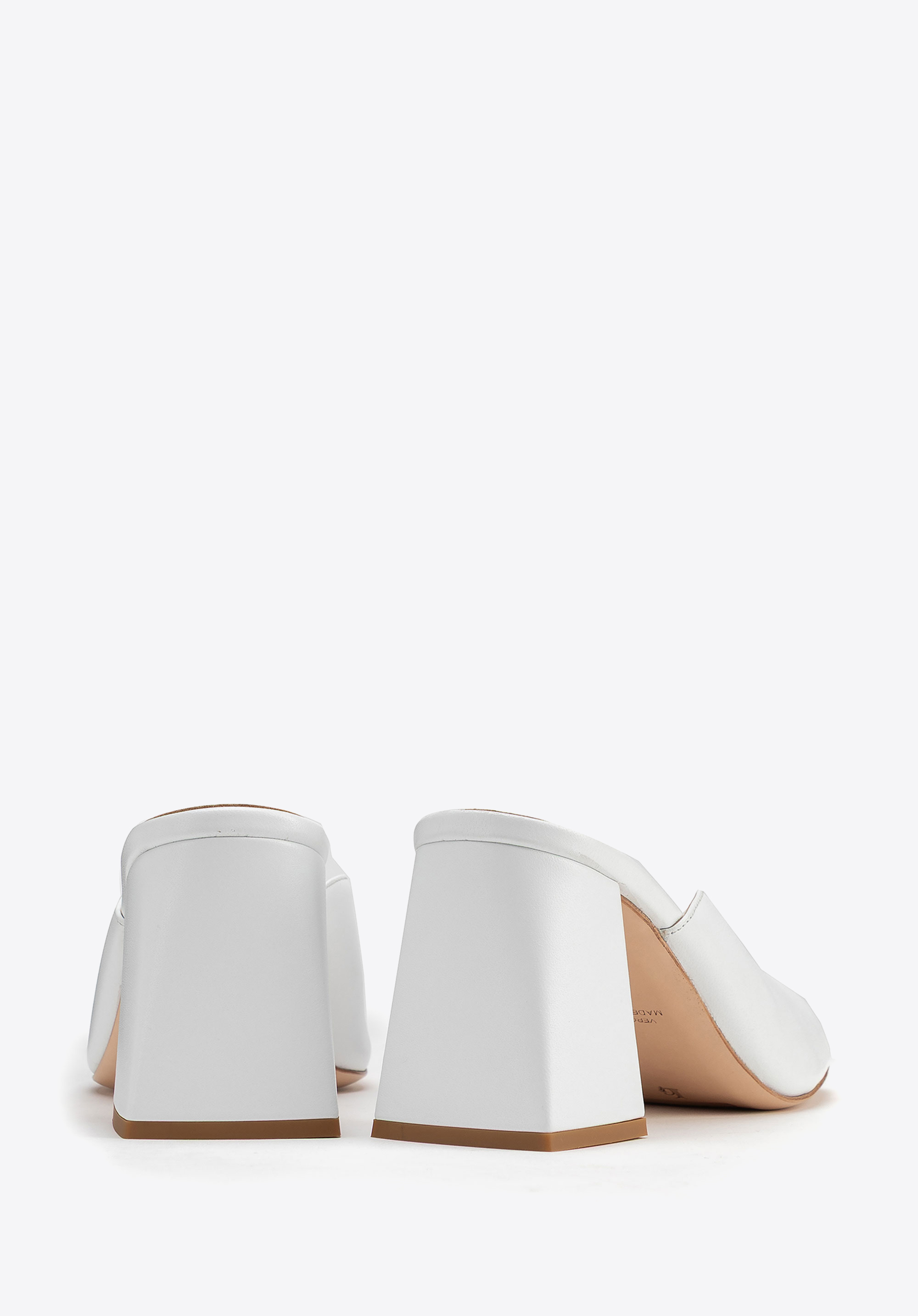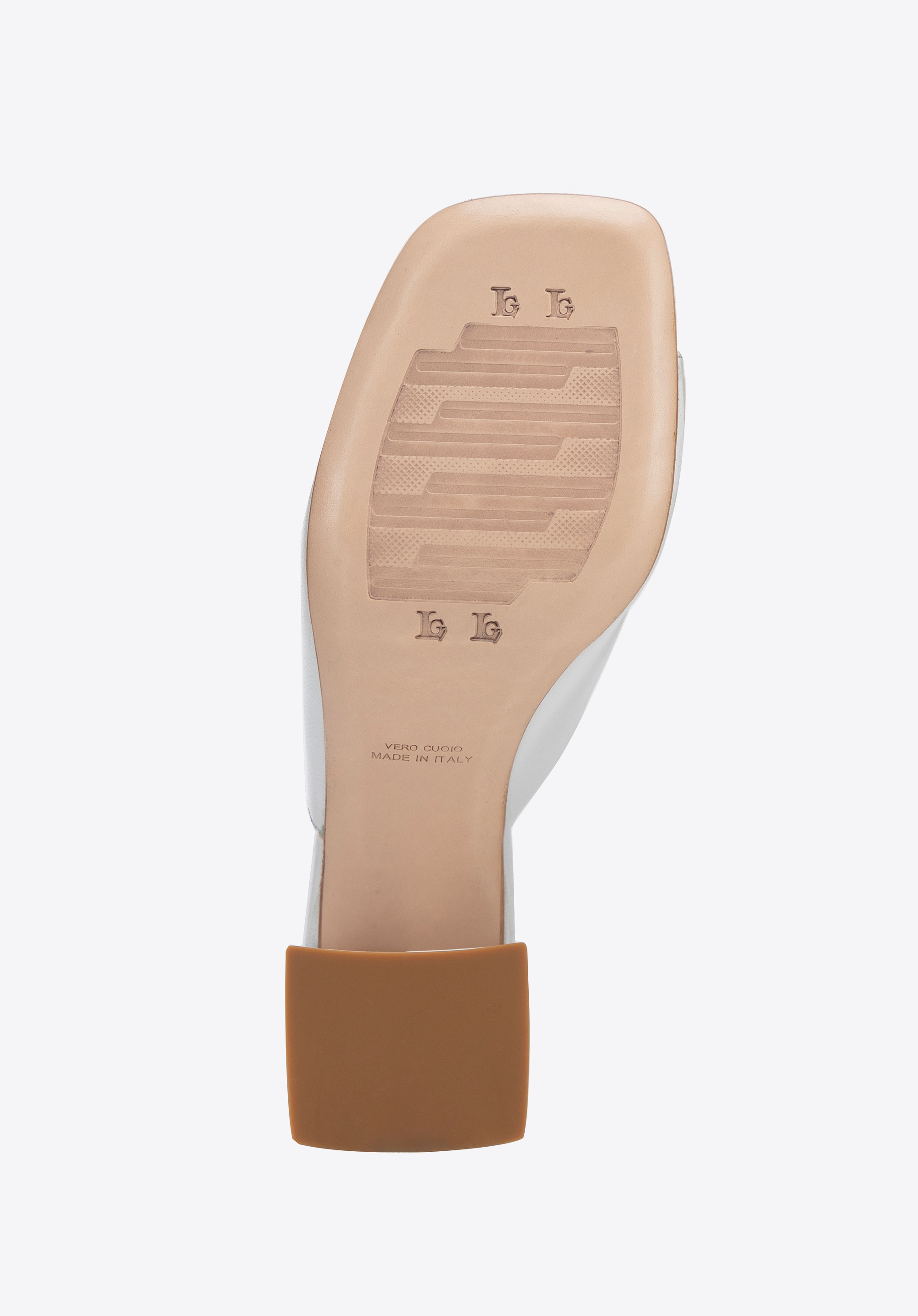 These exceptional flared heel sandals are the essence of elegance and comfort, inspired by classic Italian style. Made entirely from leather, they boast minimalist form and flawless finish. The open-toe design subtly exposes the foot, adding lightweight feel and feminine grace. The soft leather gently shapes to the foot, ensuring exceptional comfort, while the stable heel gracefully adds a touch of elegant height. Made in Italy, they guarantee the highest quality craftsmanship and timeless design.