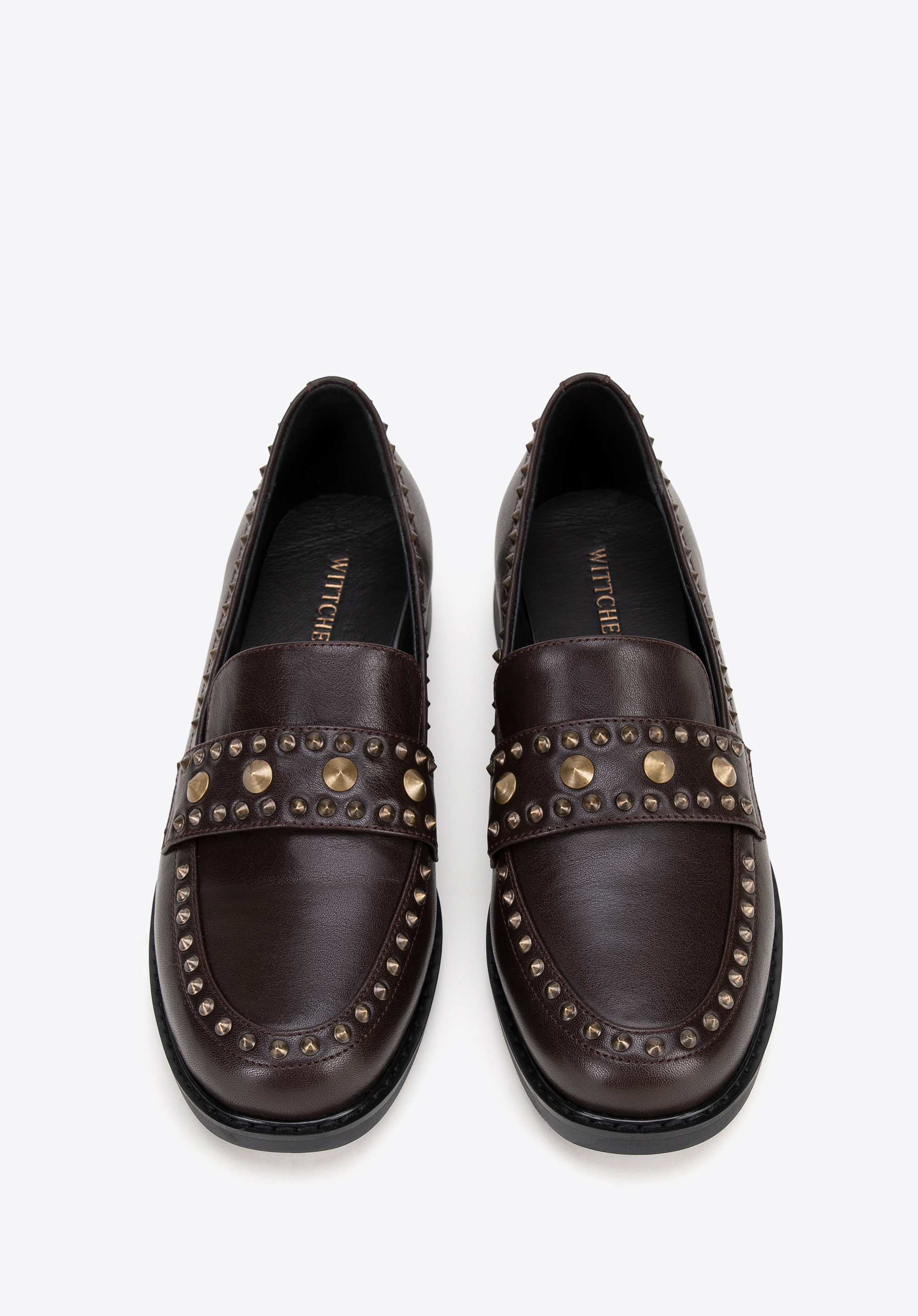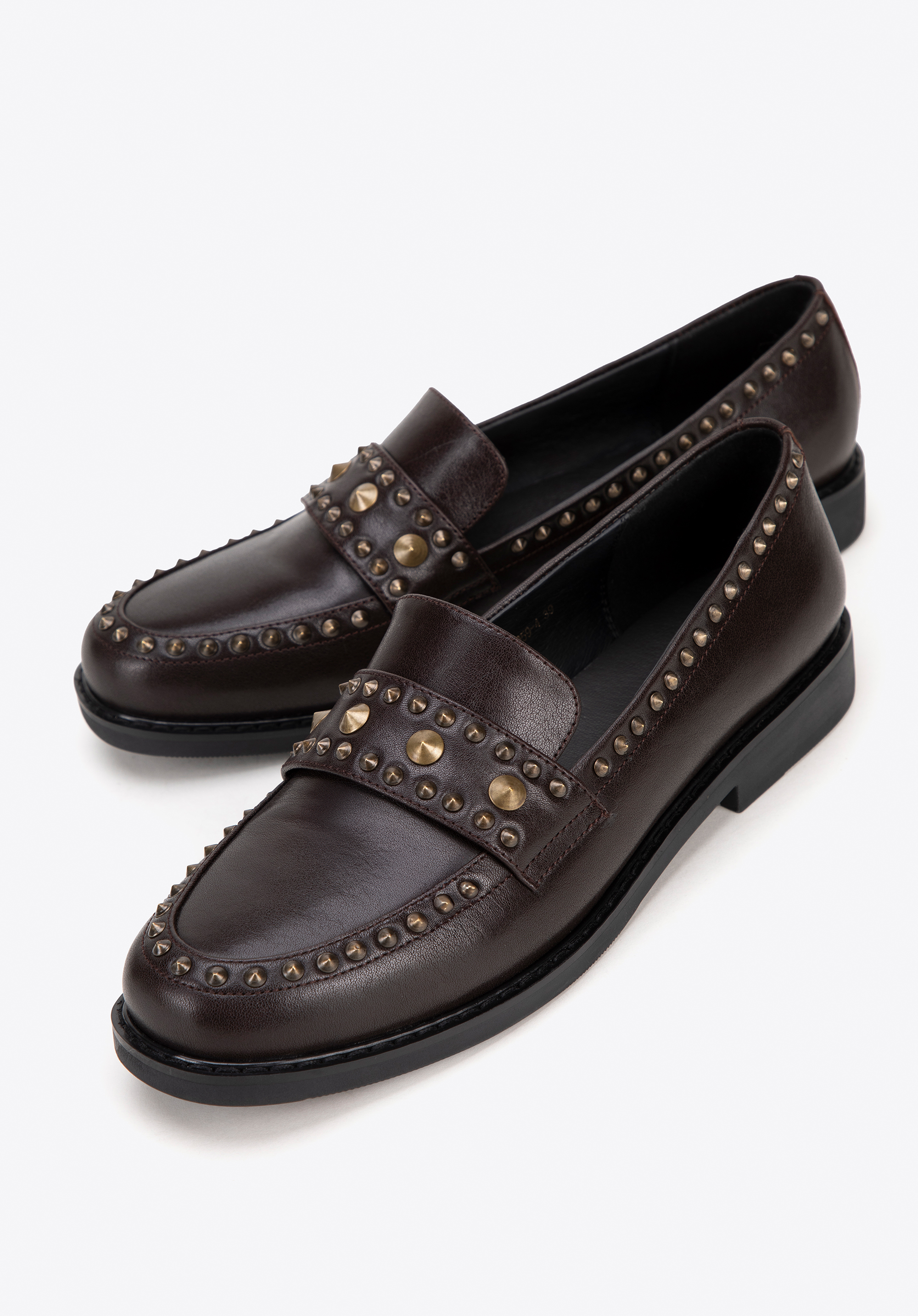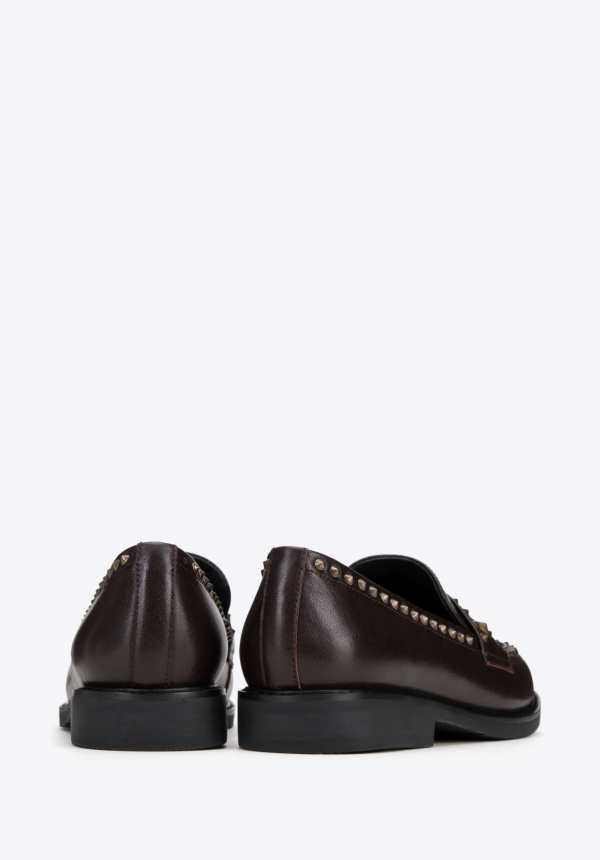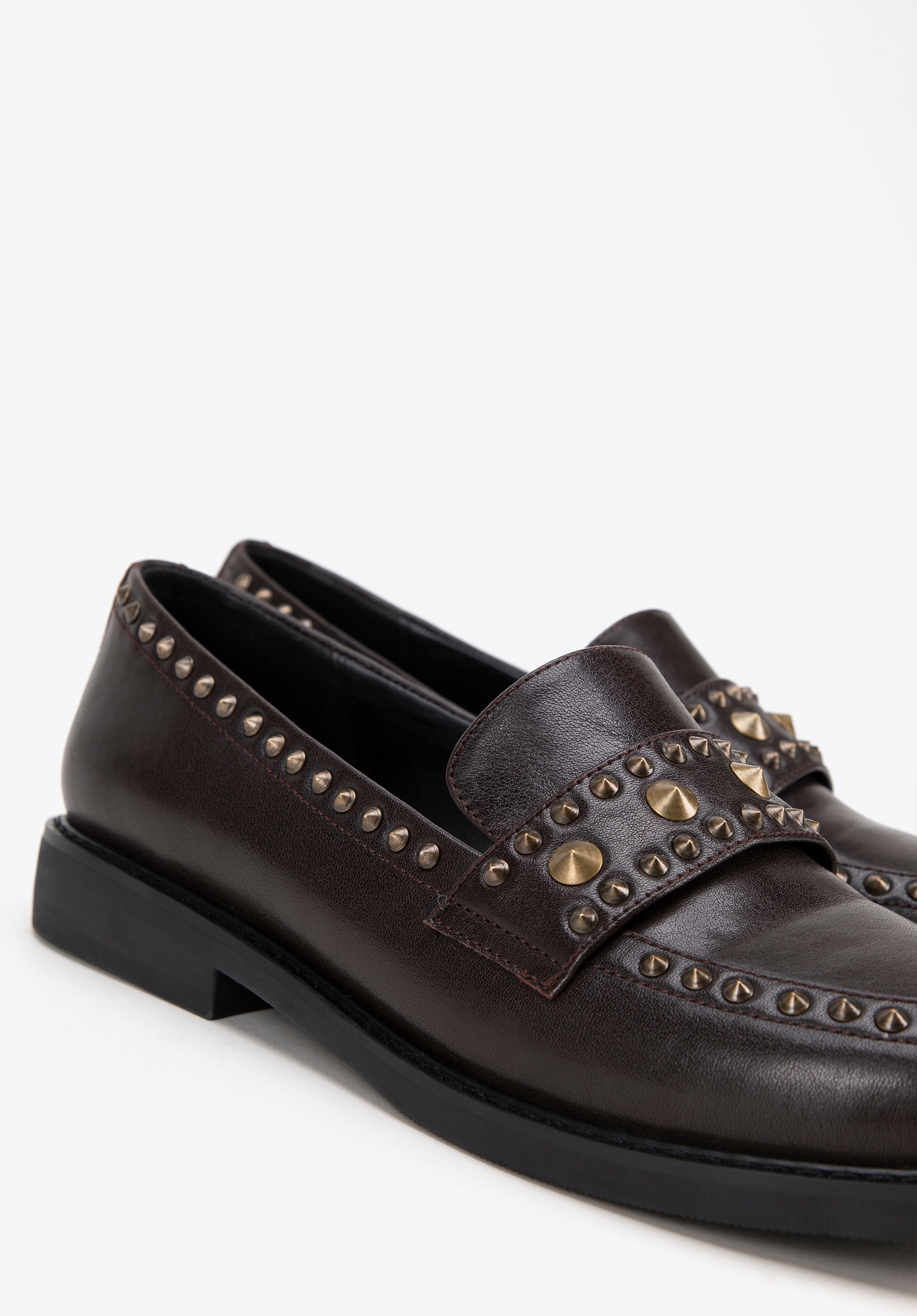 Loafers that blend a timeless design with a touch of rock style, making them unique and sophisticated. Made from high-quality natural leather, they offer everyday comfort while also being a refined wardrobe piece. The slip-on design ensures easy wear and all-day comfort. What makes this pair unique? Decorative metal studs add an edgy detail, giving the shoes a modern twist to their classic style.
