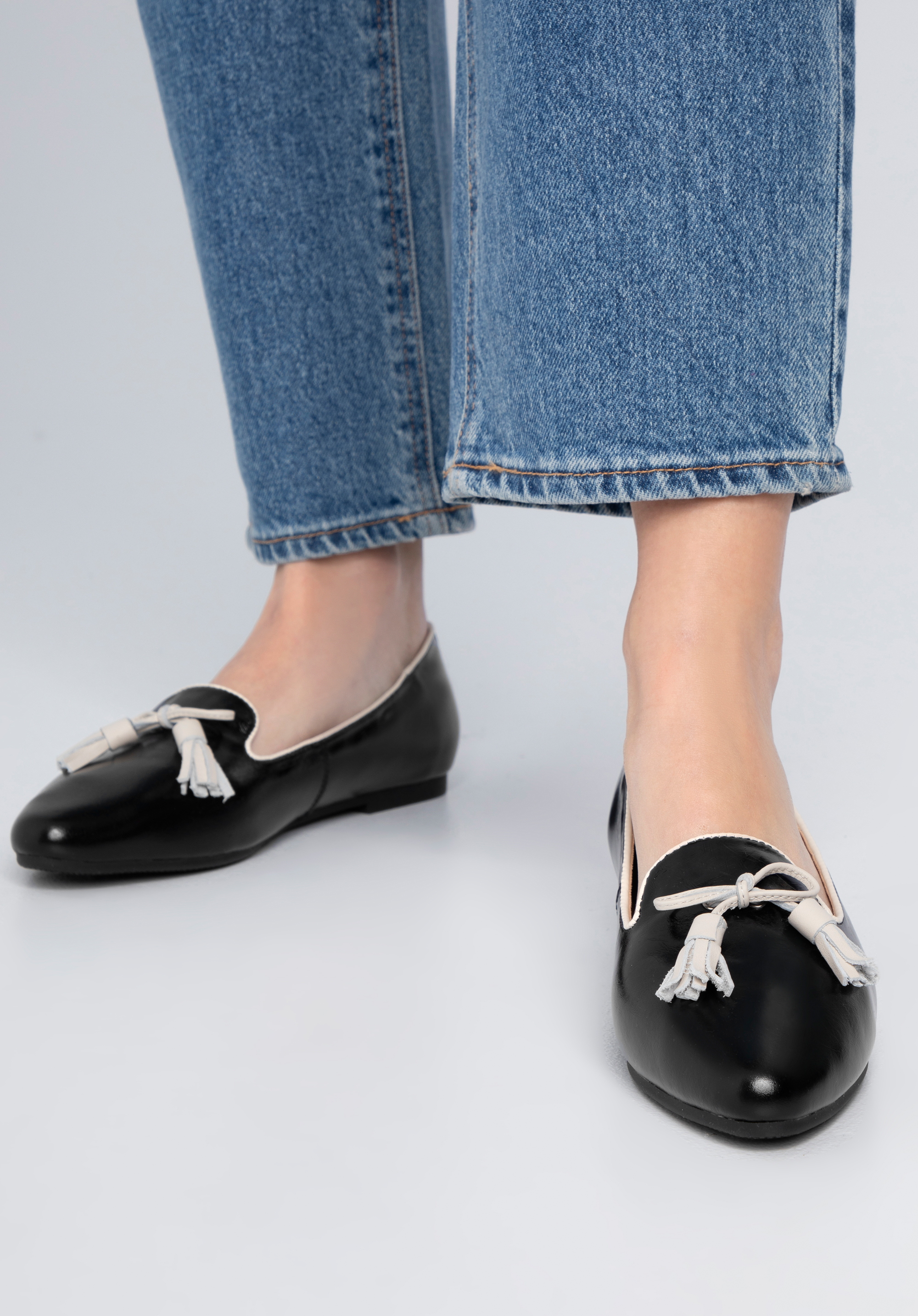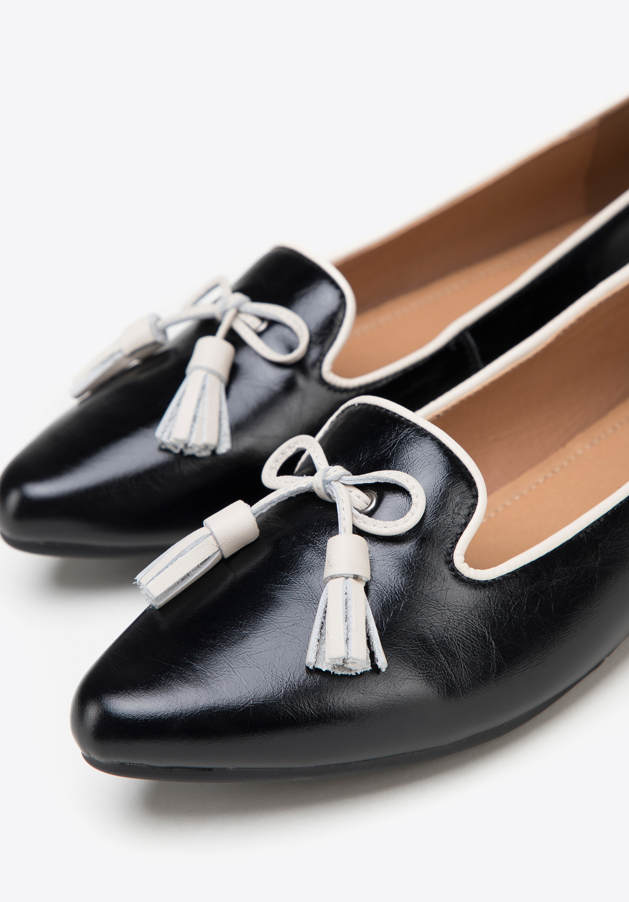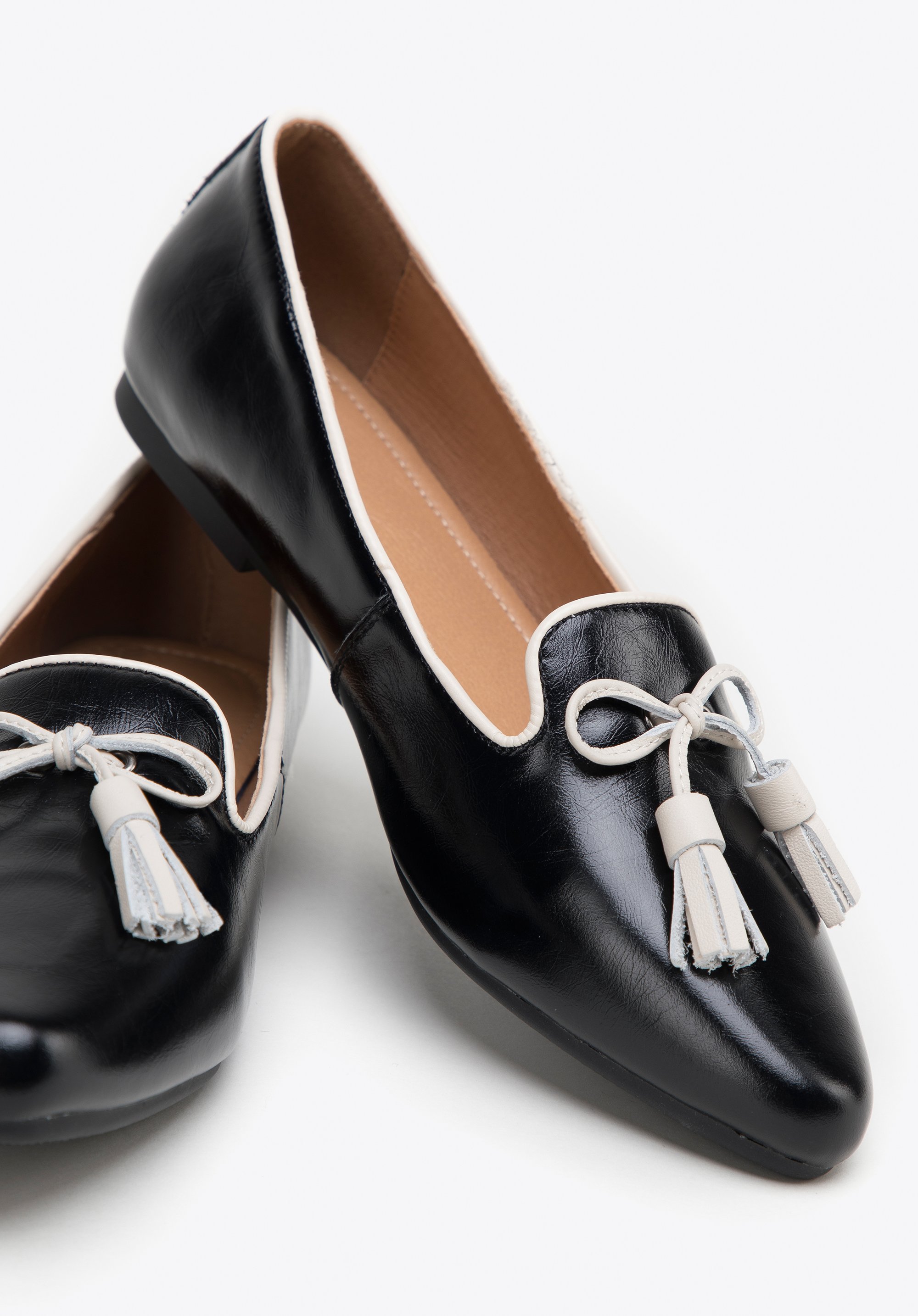 These shoes are a great choice for all enthusiasts of classic style with a unique twist. Boasting pointe toe design, these leather loafers are perfect for making a statement. Incredibly comfortable, you can wear them from morning to evening. With decorative bow and tassel detail and a low heel, they offer the utmost comfort and customisable fit. This pair will team nicely with an elegant office outfits as well as with casual ones. They complement feminine dresses, such as a shirtdress. These women's leather loafers are a must-have classic yet bold staple which will bring the finishing touch to any outfit.