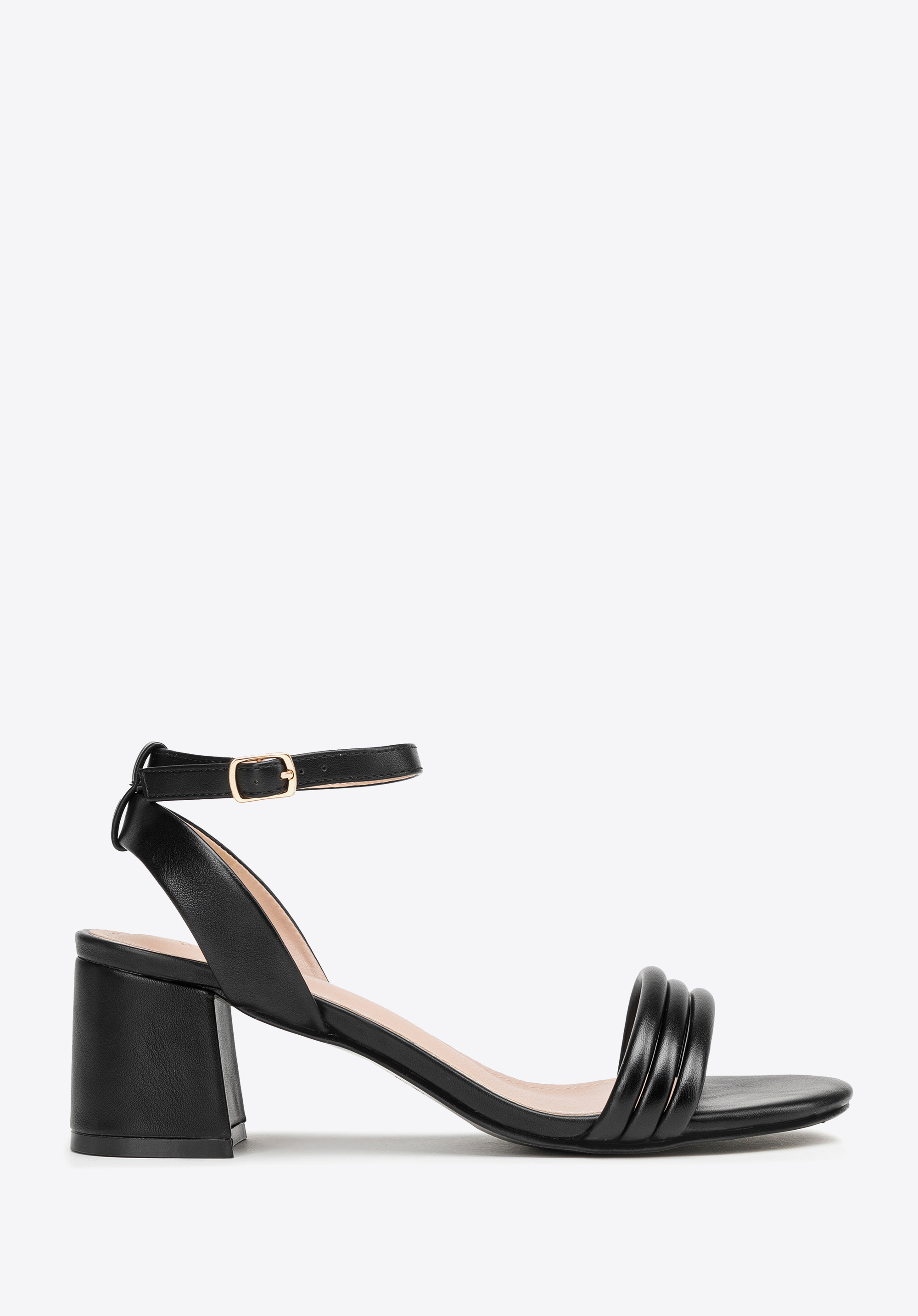 comfortable block heeled sandals are fully covered in faux leather from the elegant
