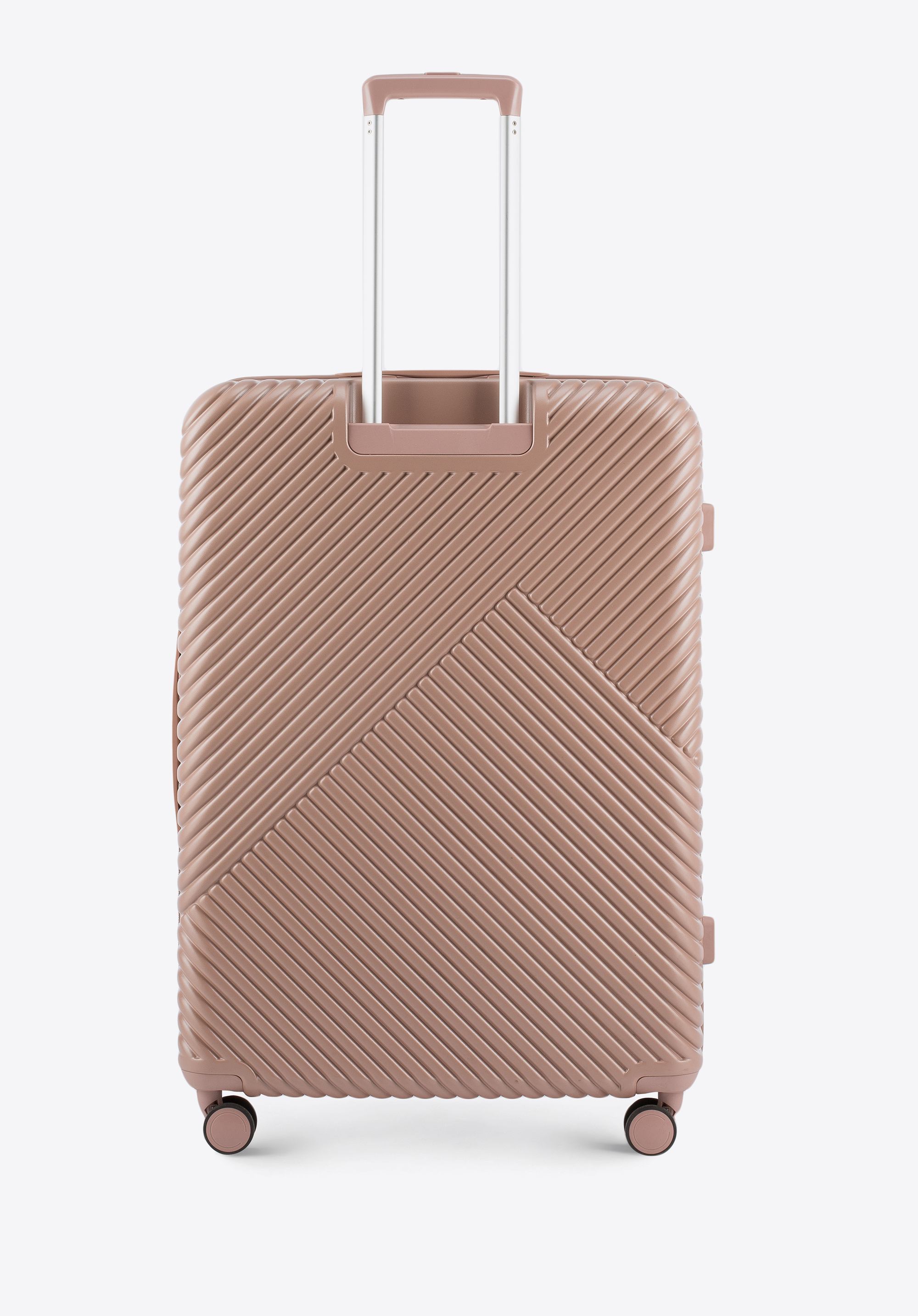 An elegant set designed to make every journey both comfortable and stylish. The large suitcase paired with a matching cosmetic case from the GL Style collection is crafted from durable polycarbonate with a matte finish, combining lightness with excellent resistance to impact. Geometric embossing and glossy rose gold-tone hardware lend the set a modern character, creating a chic, fashionable duo ideal for longer trips.