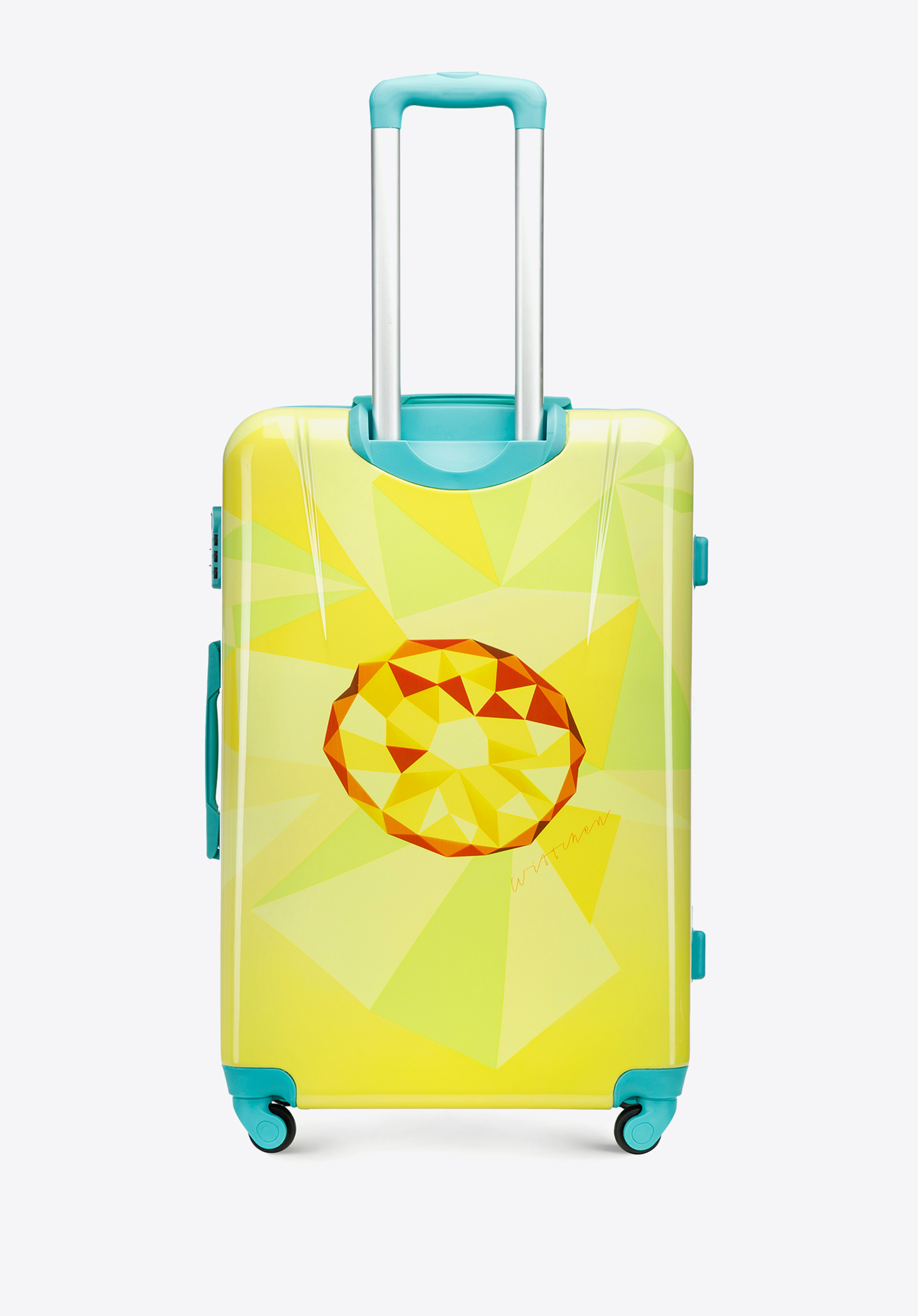 This suitcase turns head in a crowd. Made from hard-wearing ABS material with polycarbonate coating, this piece of luggage boasts unique nature-inspired design. Perfect for all enthiusiats of adventures. It features four wheels for smooth rolling, a telescopic wheel handle and a flexible handle for easy lifting. What is more, it is fitted with a combination lock for secure travel. Available in different hues, this suitacse stands out in the baggage carousel, making it easy for fast exits out the airport.