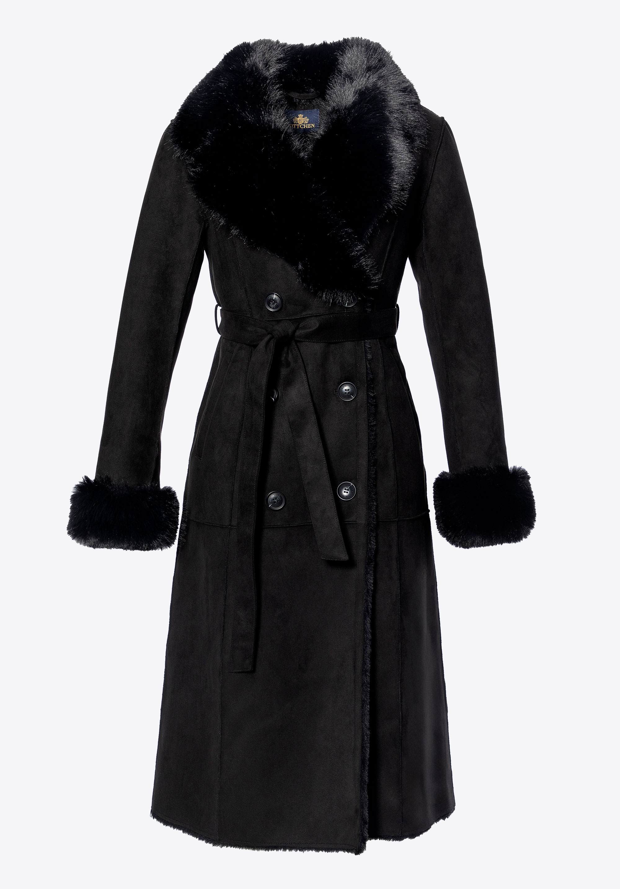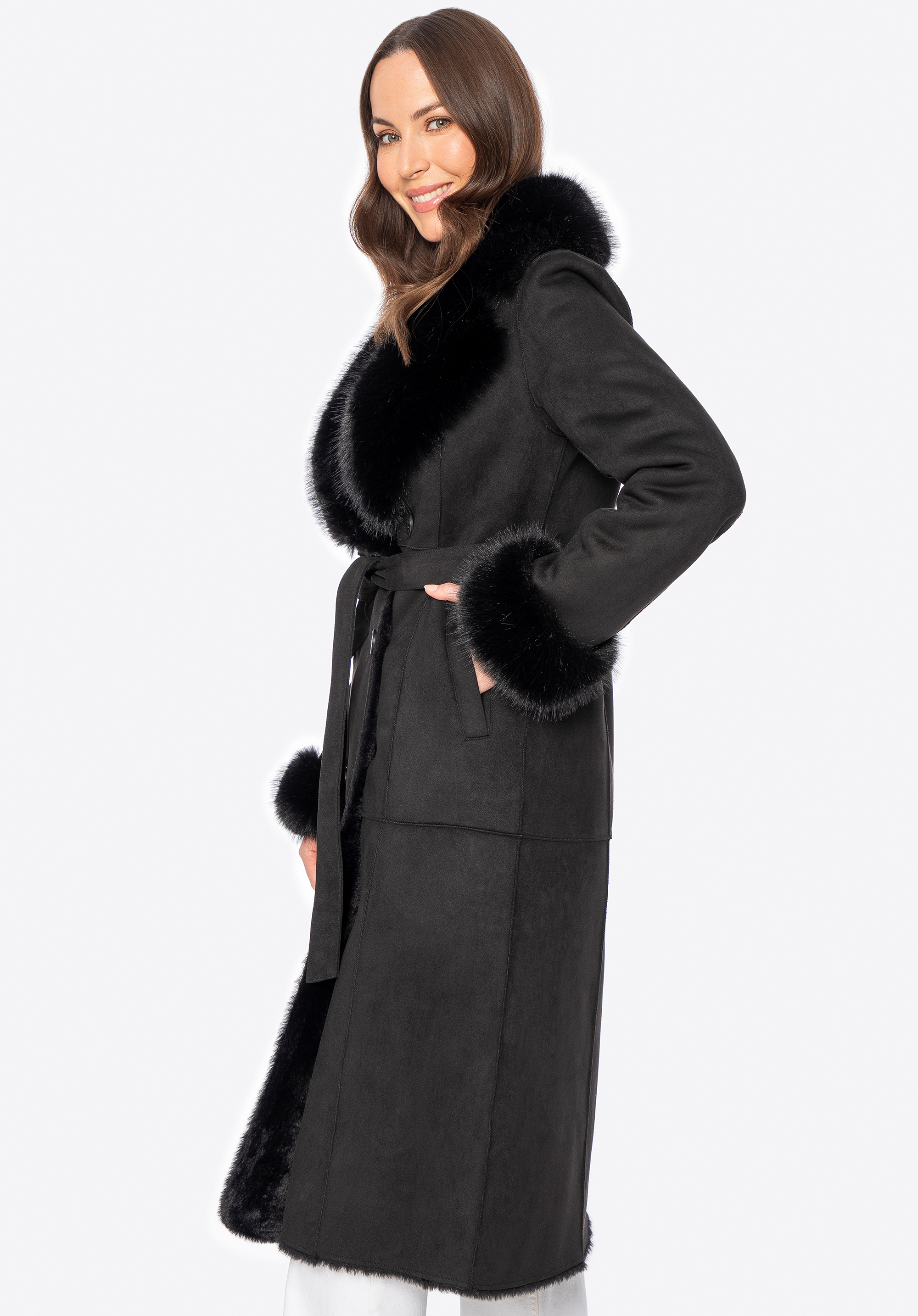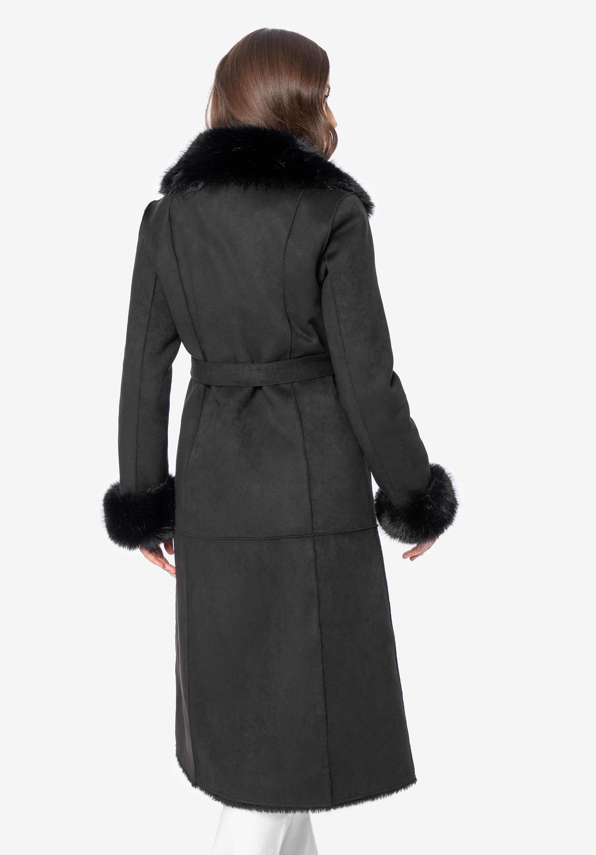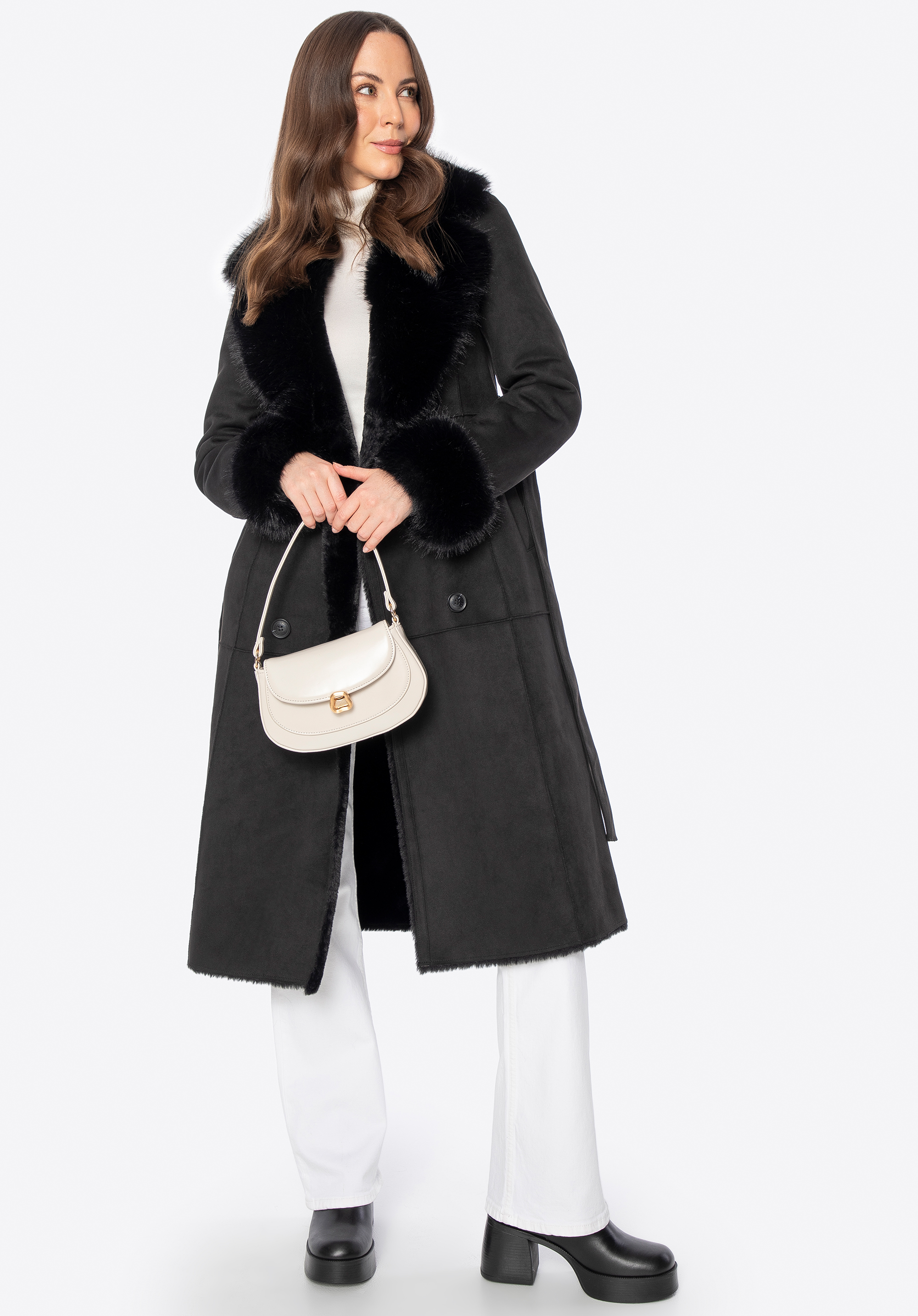 Double-breasted women's coat with a faux fur collarColour: black