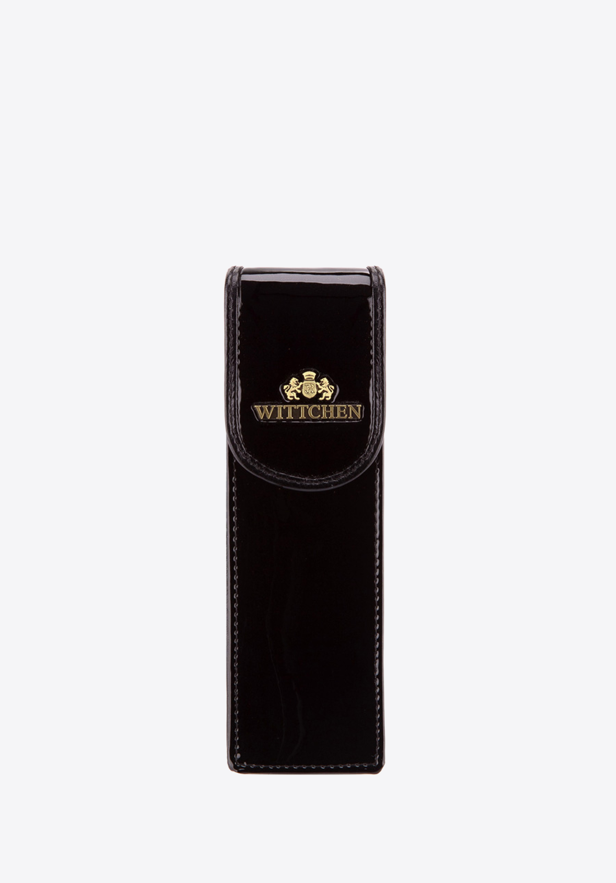 Pen case from the Verona collection. Handmade from patent leather, meticulously crafted and exquisitely finished. The interior and trim are handmade from grain leather. Carries a metal embellishment - the WITTCHEN coat of arms in the colour of old gold. Protects your writing pens in style, while its small size makes it practical and comfortable to use. A perfect accessory for business meetings and everyday use. Supplied in exclusive packaging which carries the WITTCHEN logo.