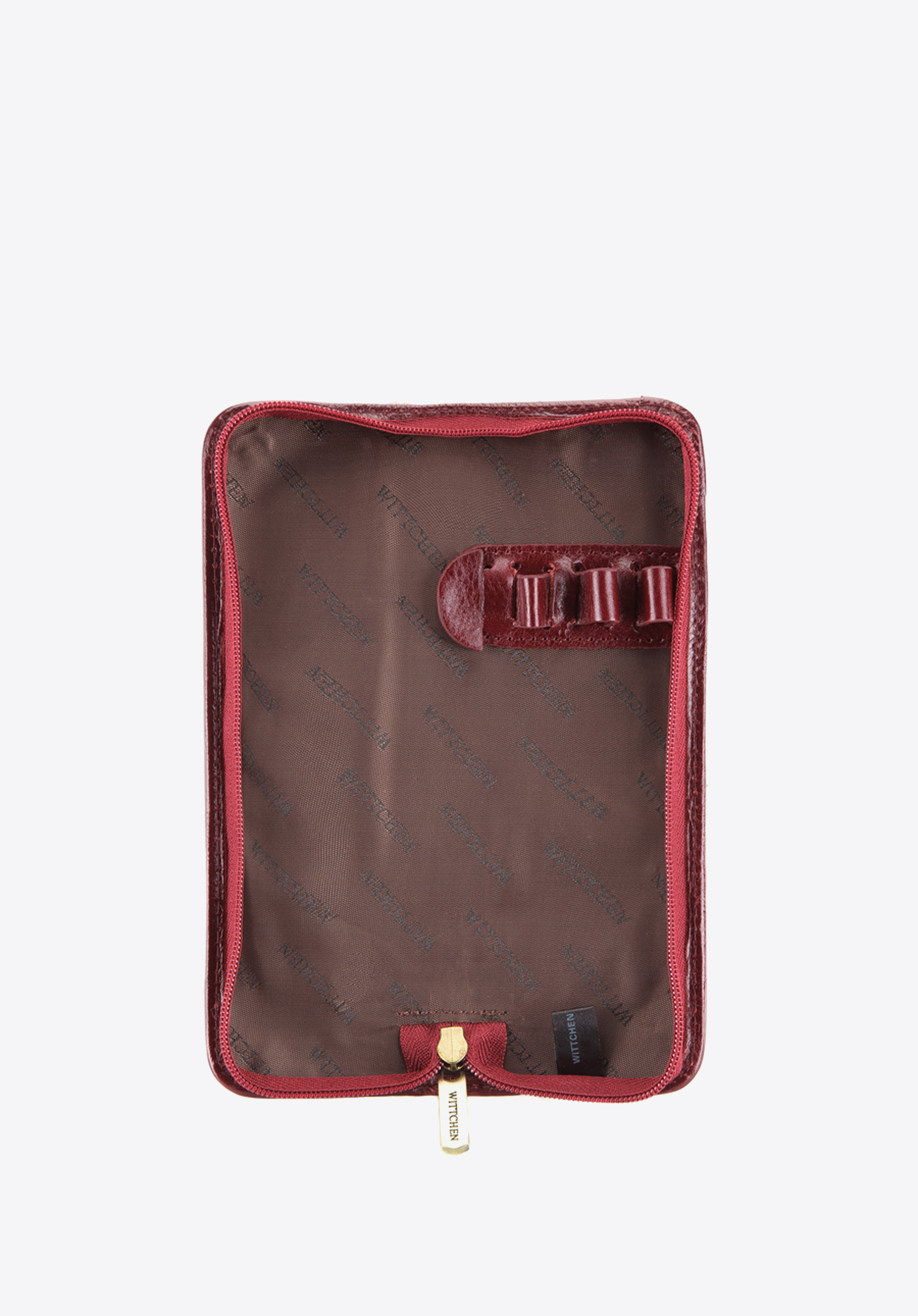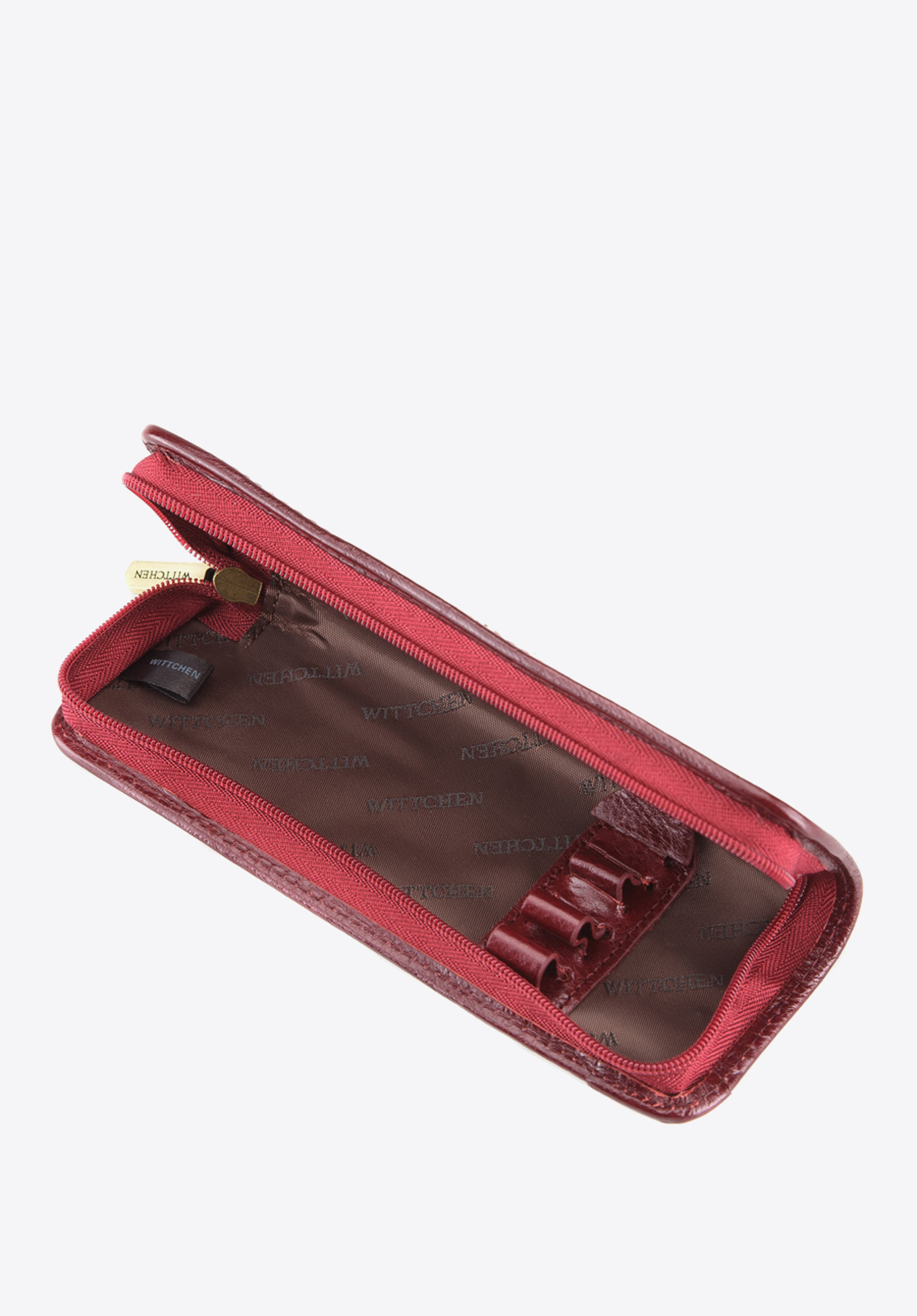 Meticulously handmade and attractively finished, a patent leather pen case from the Verona collection. The interior and trim are handmade from grain leather. Carries a metal embellishment - the WITTCHEN coat of arms in the colour of old gold. The case keeps your stationary safe and thanks to its small size the case is very practical and comfortable in use. Ideal for the business meetings and for everyday use. Supplied in exclusive packaging which carries the WITTCHEN logo.