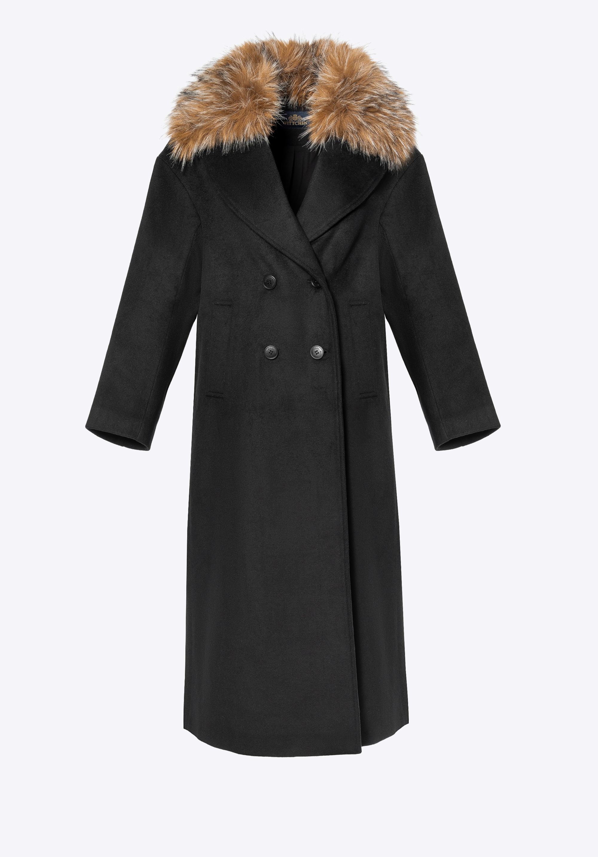 Winter chic – double-breasted women’s coat with detachable faux fur