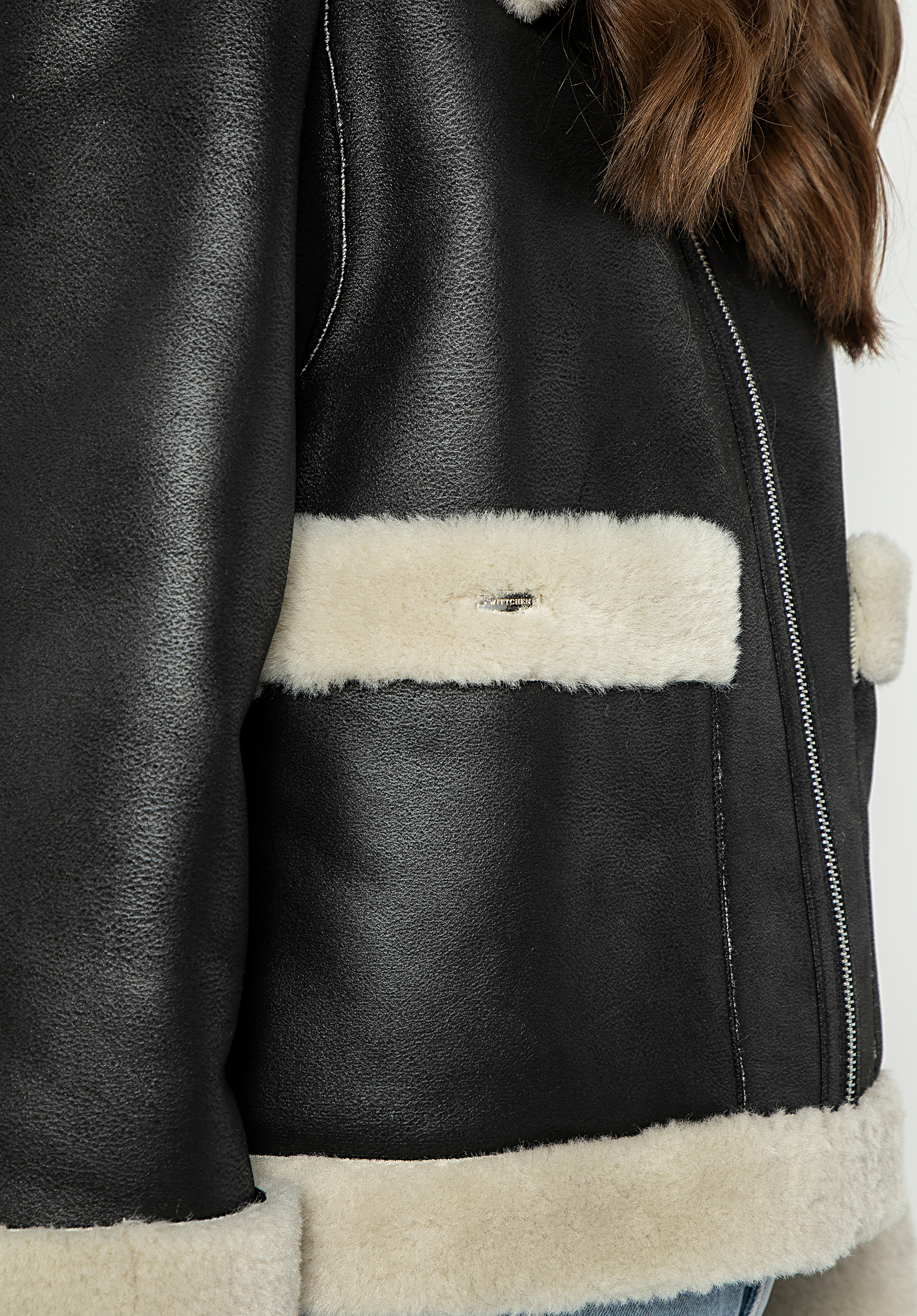 - Material: Soft and delicate faux fur on the lining, collar, pockets, and bottom of the jacket.