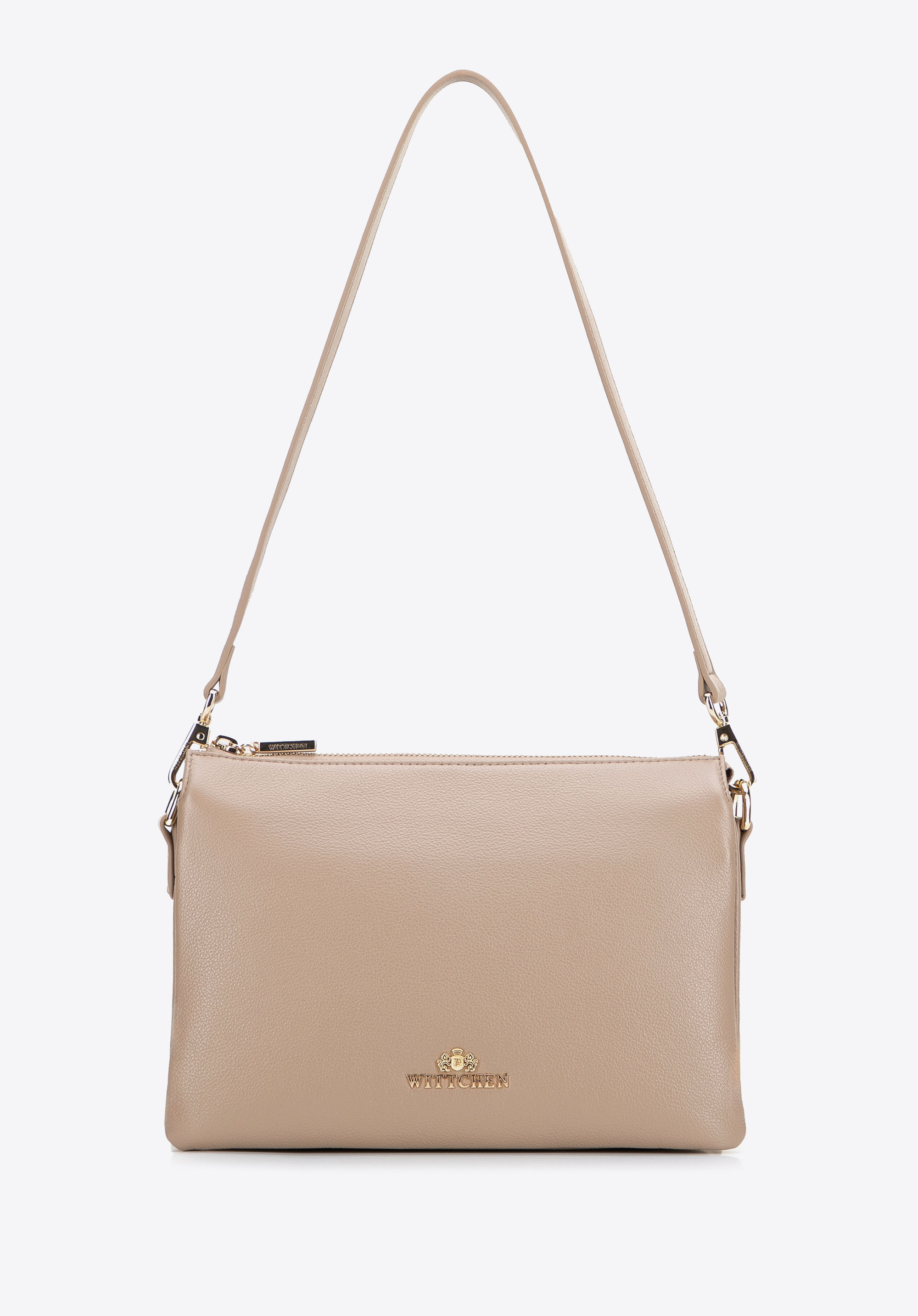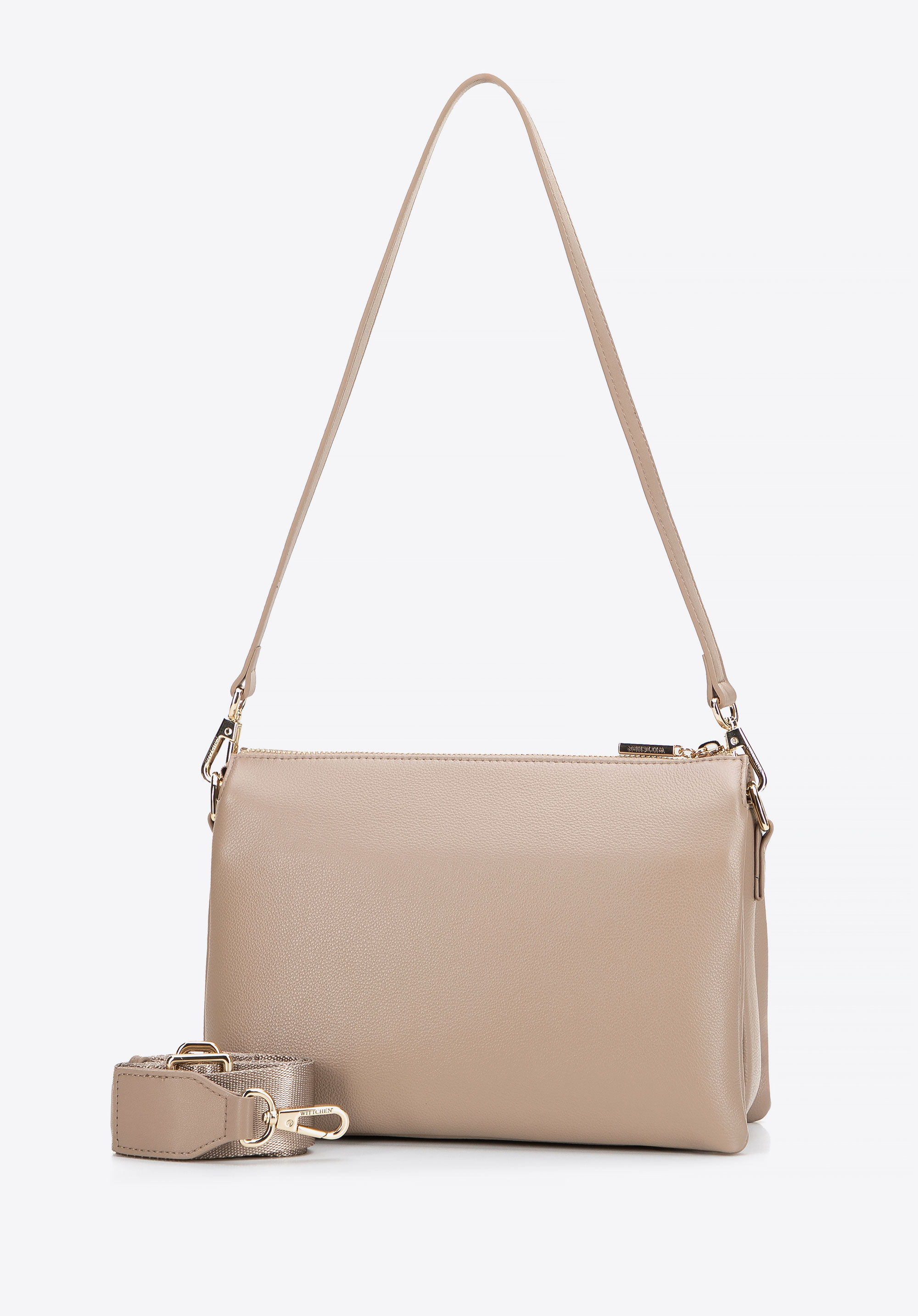 This crossbody bag is an elegant and highly practical accessory, perfect for everyday use. The body made of natural leather emphasises the luxurious character of the handbag and guarantees durability for years. Complementary microfibre elements – such as the strap attachment, detachable handle, and interior finish – add lightweight, provide comfort when wearing, and increase resistance to daily wear. The triple-compartment design ensures excellent space for all your essentials.