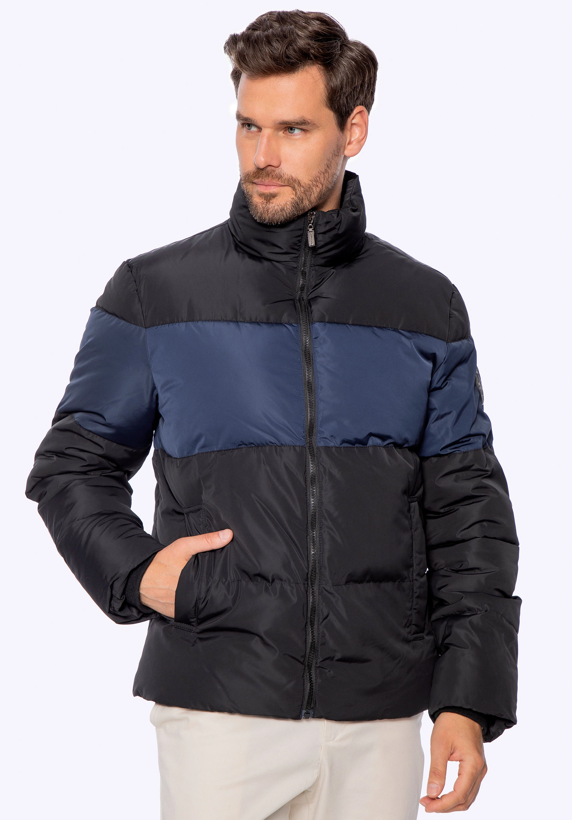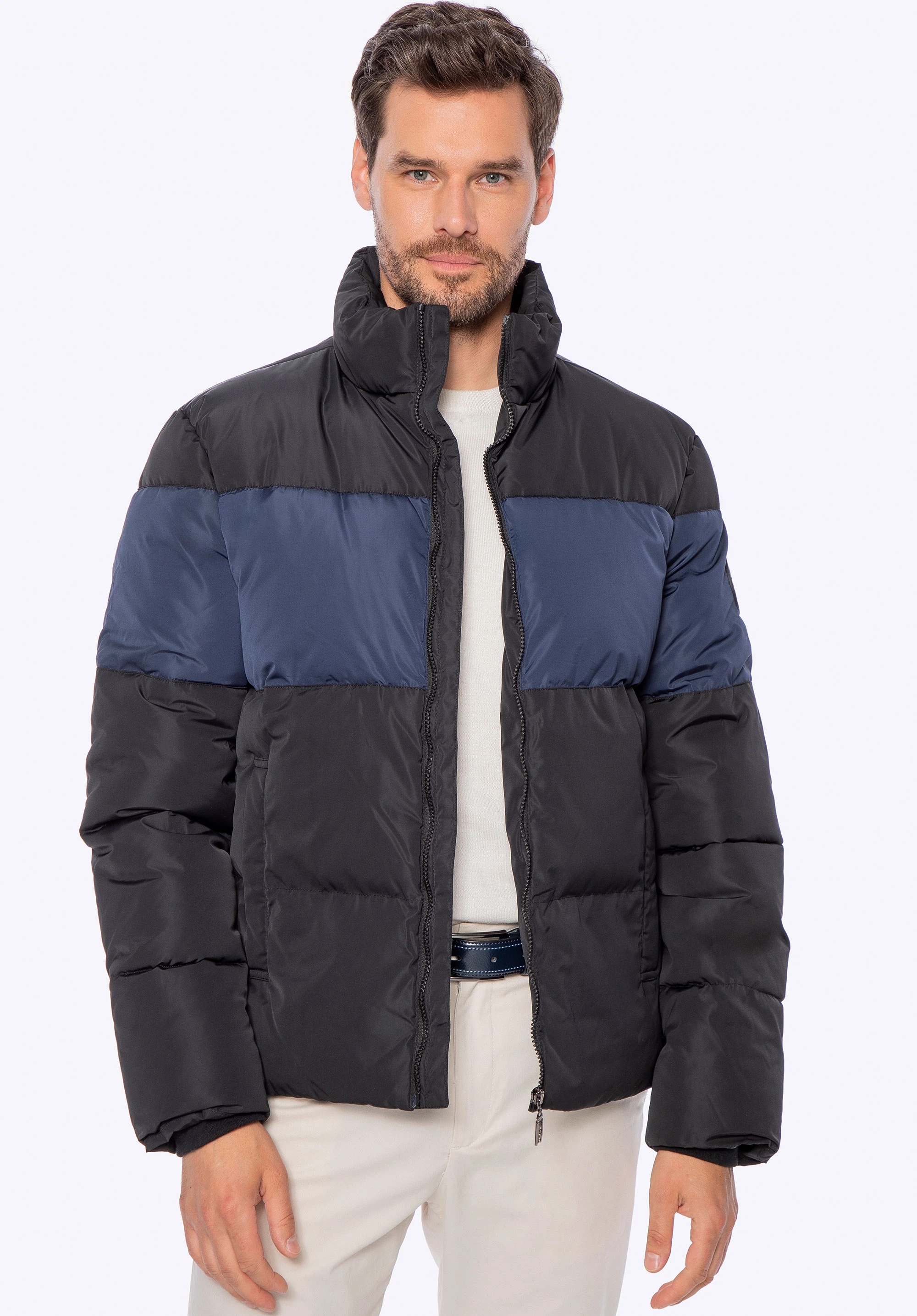 Rev up your outerwear inventory with this timeless padded jacket. It is the perfect choice if you want to bundle up without sacrificing on style, and it looks great when teamed up with chinos and Chelsea boots or with denim and trainers. Made from lightweightpolyester fabric, this simple men's jacketboasts panel quiltingdesign and will keep out the winter chill while you're out and about.